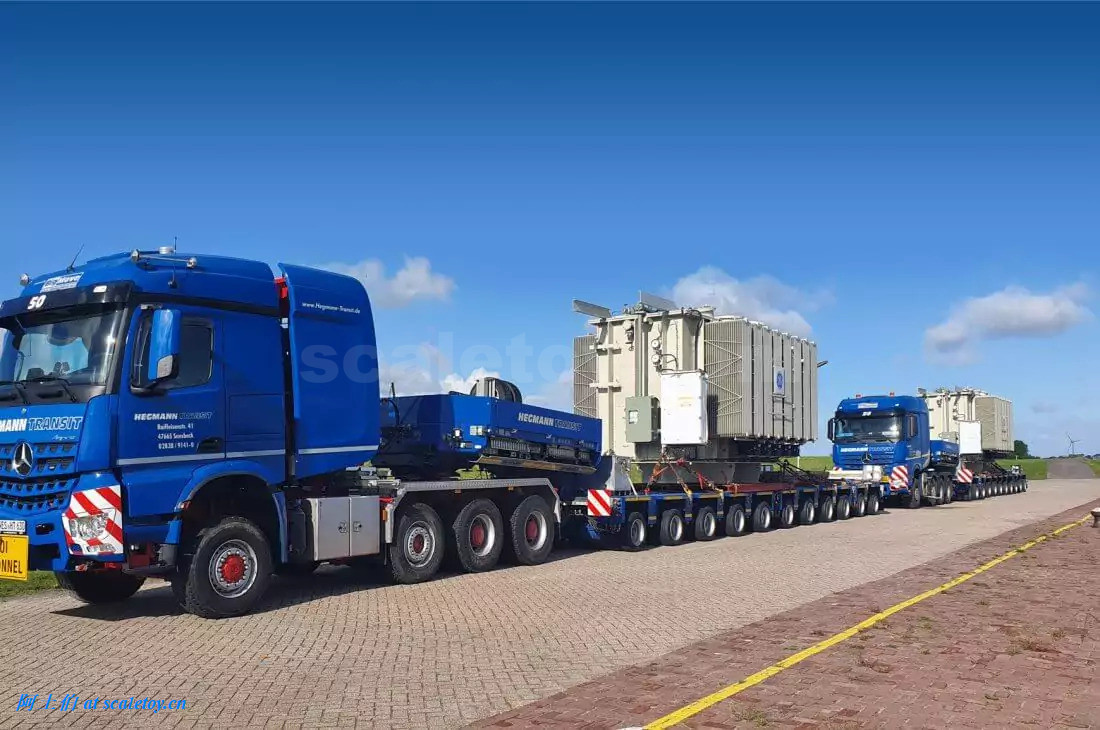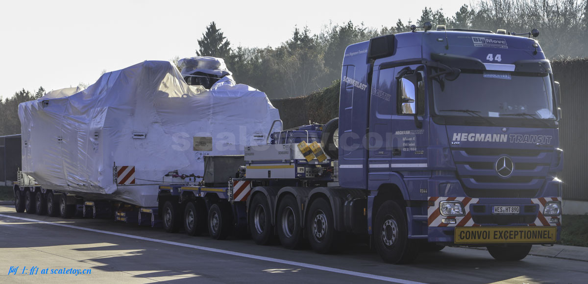 [WSI] MERCEDES-BENZ AROCS MP4 2.300MM STREAM SPACE 8X6 with 12X SCHEUERLE INTERCOMBI + CABLE REEL – HEGMANN TRANSIT 奔驰拖头挂SHEUERLE模块 运输线缆轴 德国HEGMANN TRANSIT公司涂装