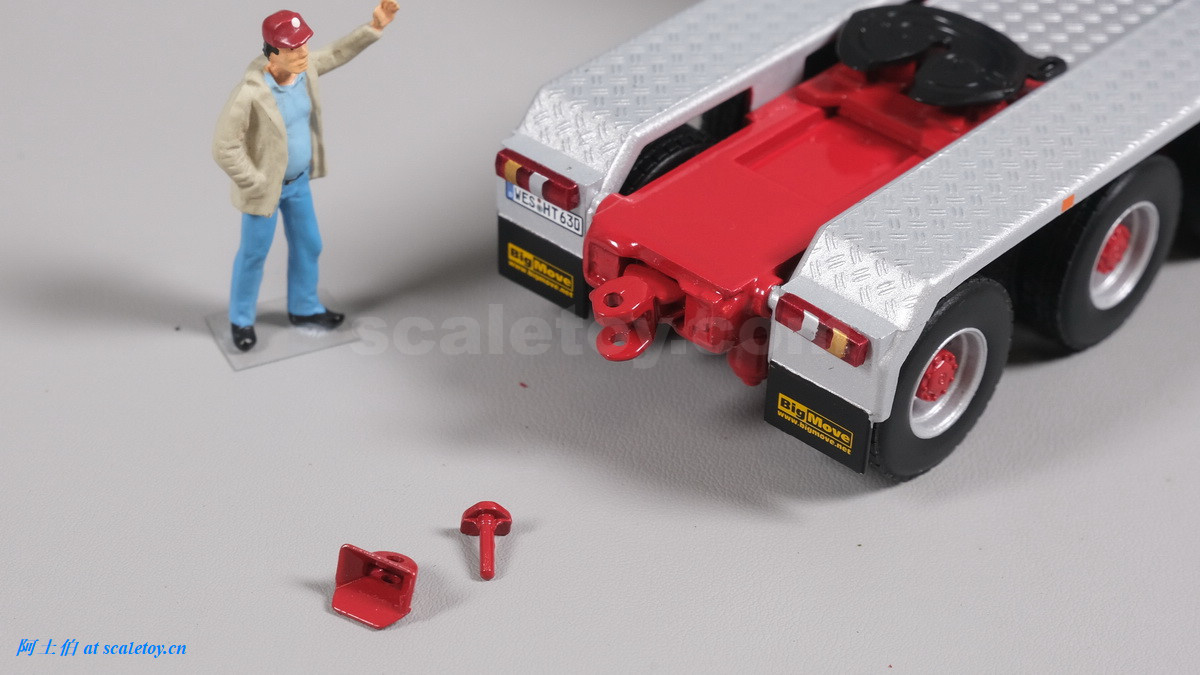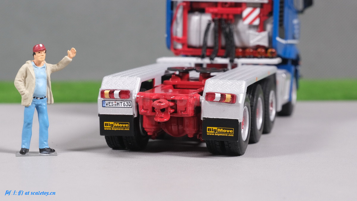 尾部,尾灯分了那么多条颜色?挡泥板是big move的图案。尾部也装了牵引杆连接口。