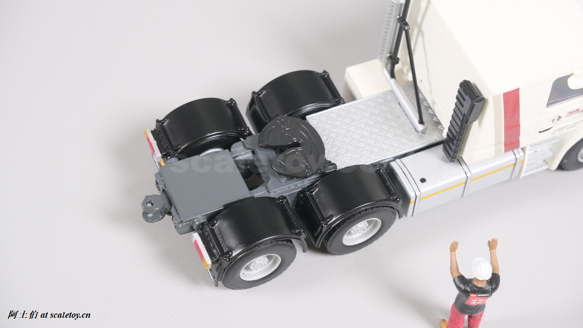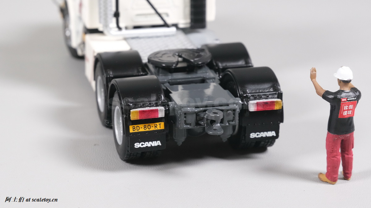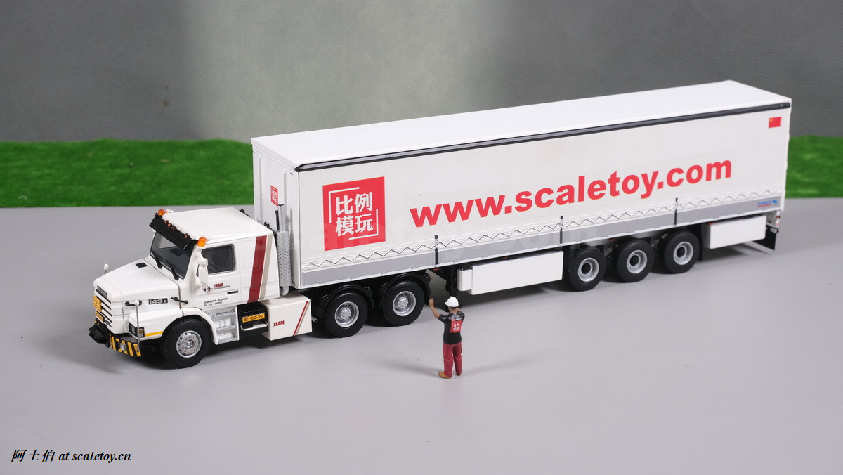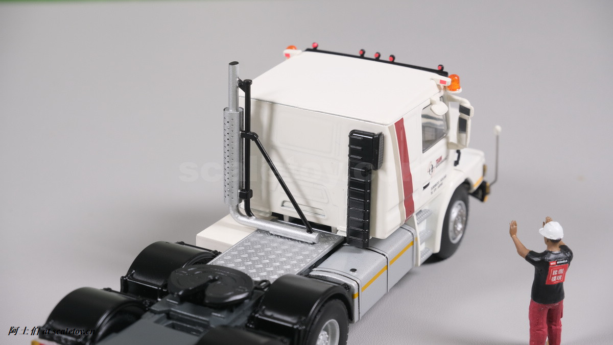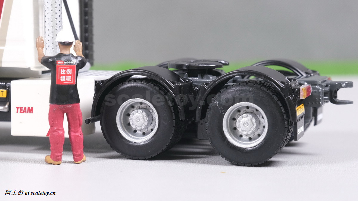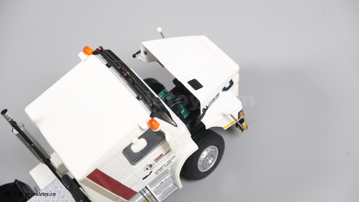 今天介绍的模型就是TEAM HEAVY LIFT涂装的一台斯堪尼亚鱼雷拖头143E 420 6X4。模型为WSI生产,编号01-3580,比例1/50。考虑到车辆年代,应该是复古怀旧模型: