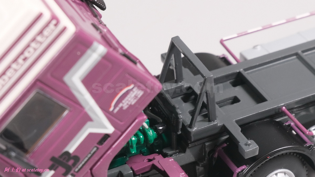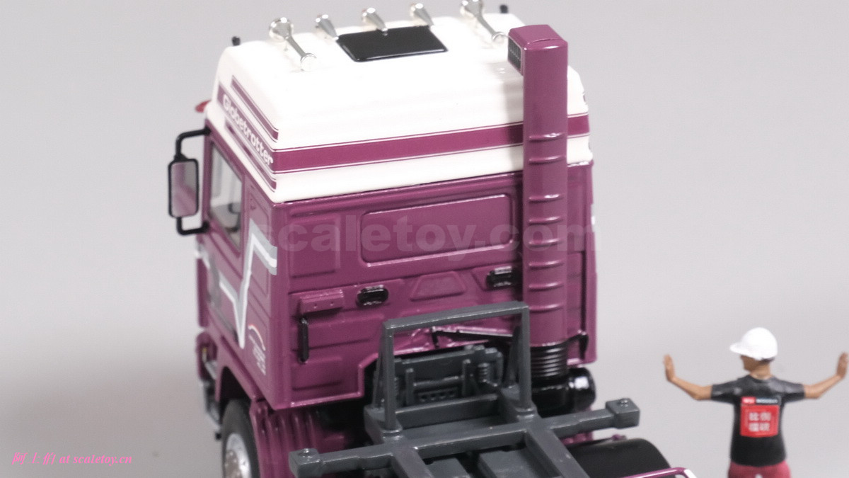驾驶室背后,气管顶部这个方形结构和格栅口比较有特色