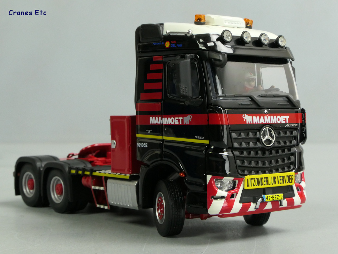 这款是奔驰 Arocs 6×4 拖头,挂七轴NOOTEBOOM挂车,配备随车吊,用于DEMAG AC650 和 AC700的附件运输。涂装是荷兰巨头MAMMOET。