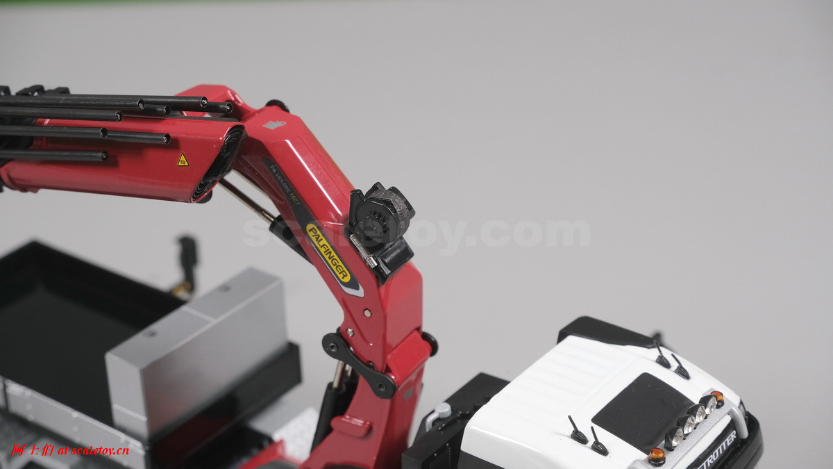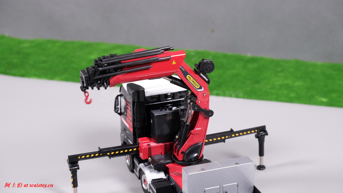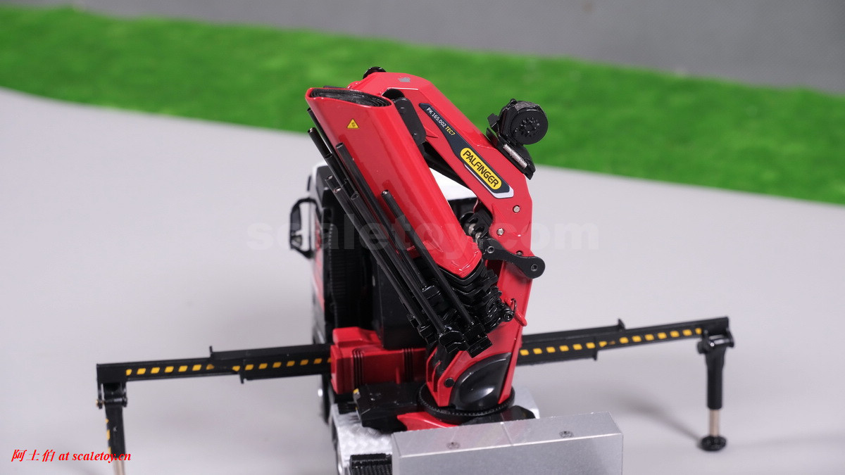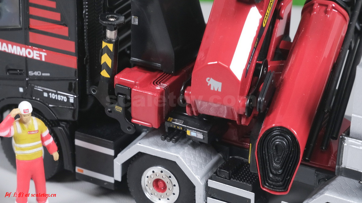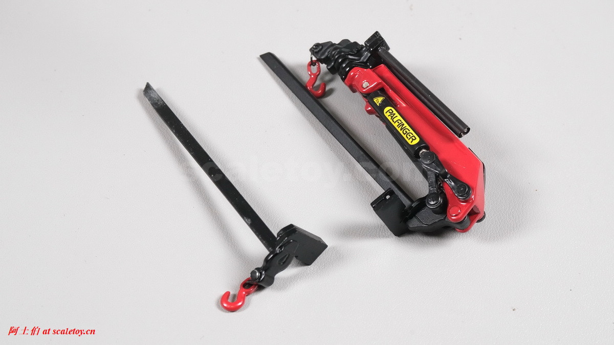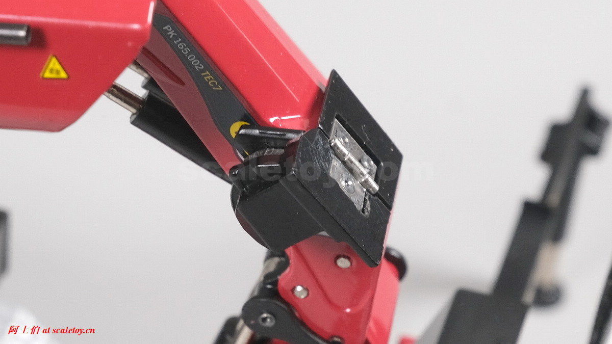 随车吊的打开,液压非常的紧,也是后续保持姿态的需要吧,但大家小心用力,别压到细节损坏。