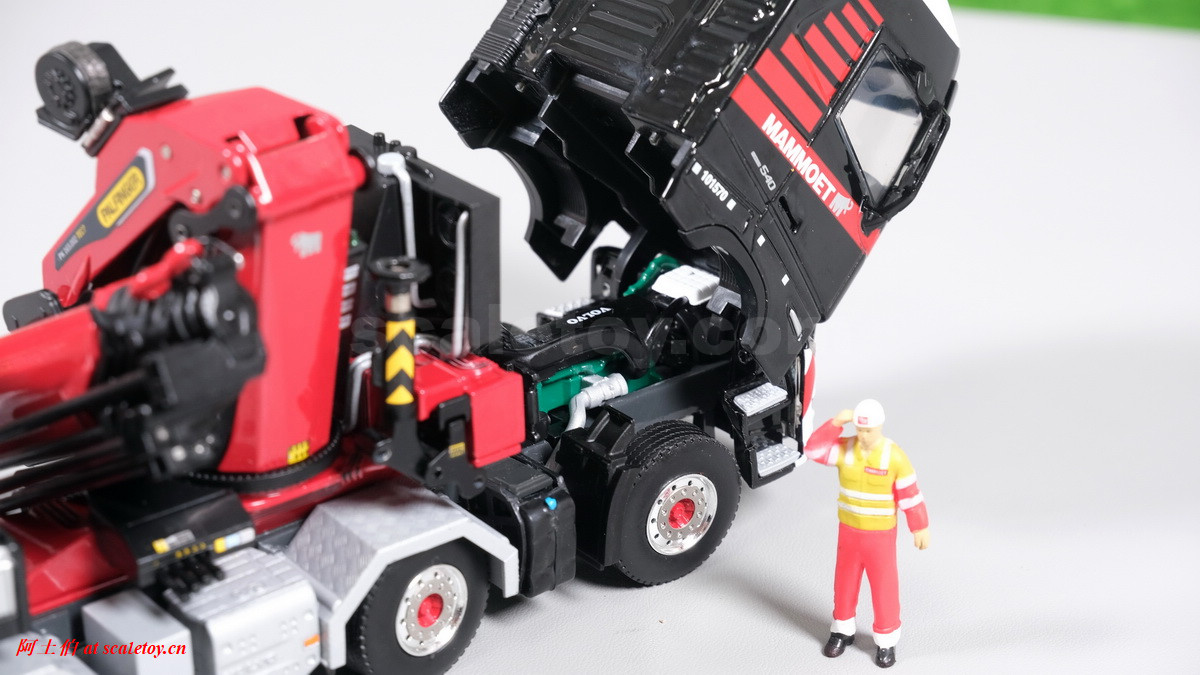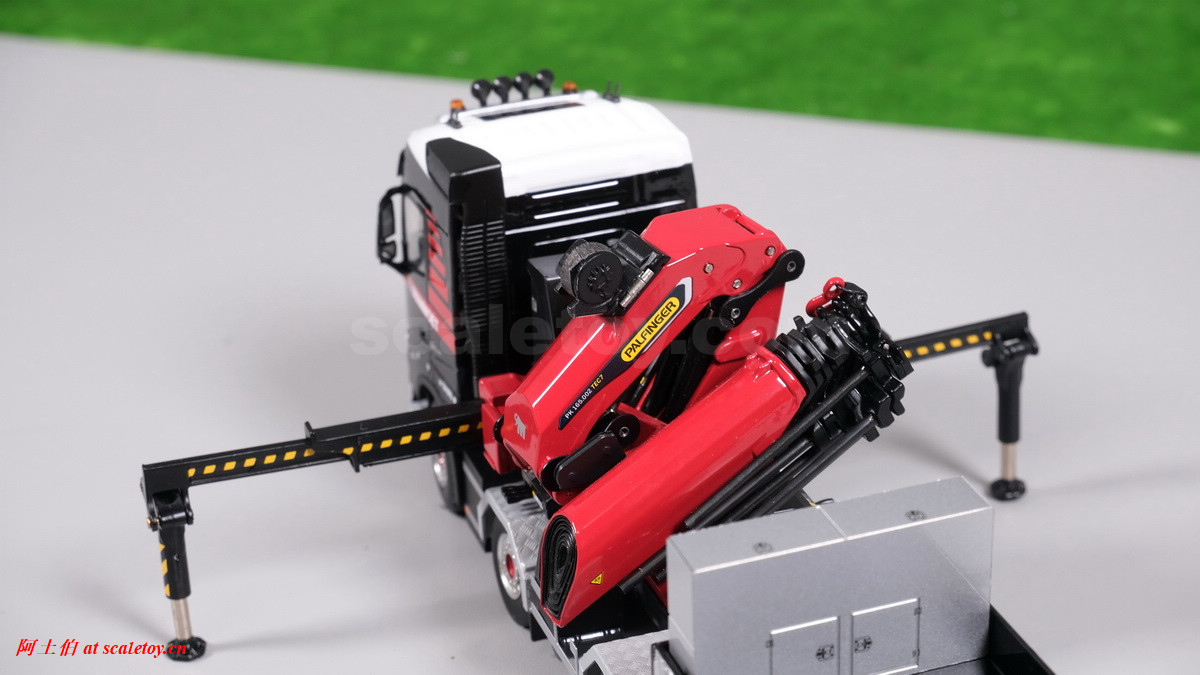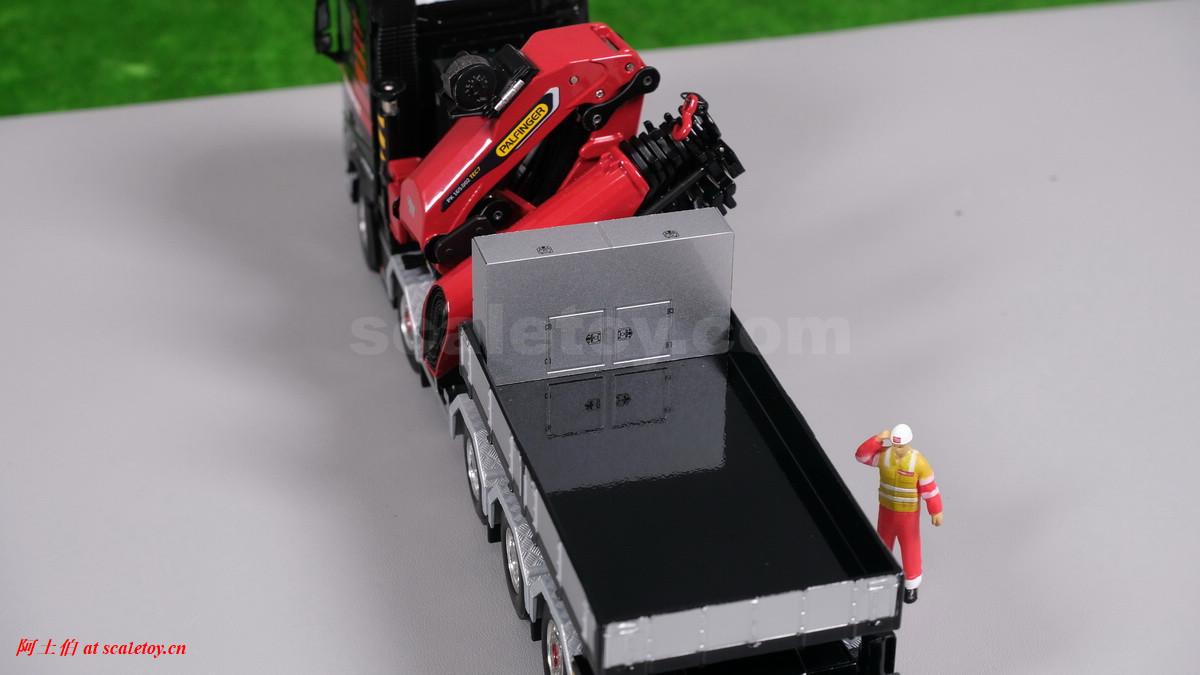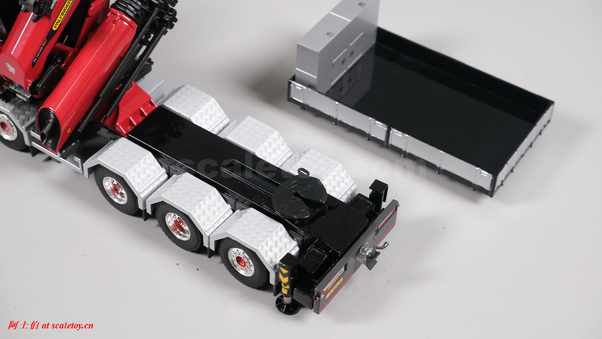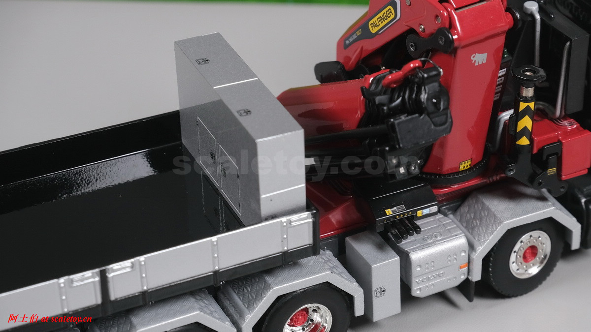 随车吊的打开,液压非常的紧,也是后续保持姿态的需要吧,但大家小心用力,别压到细节损坏。