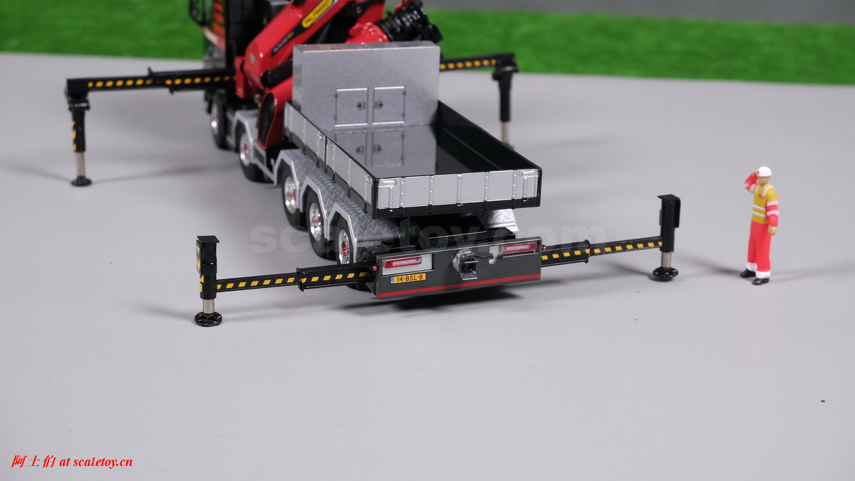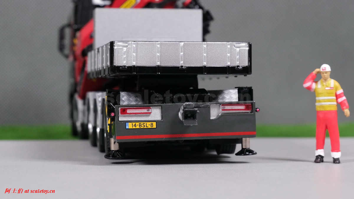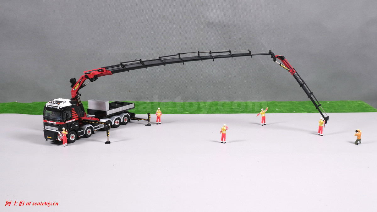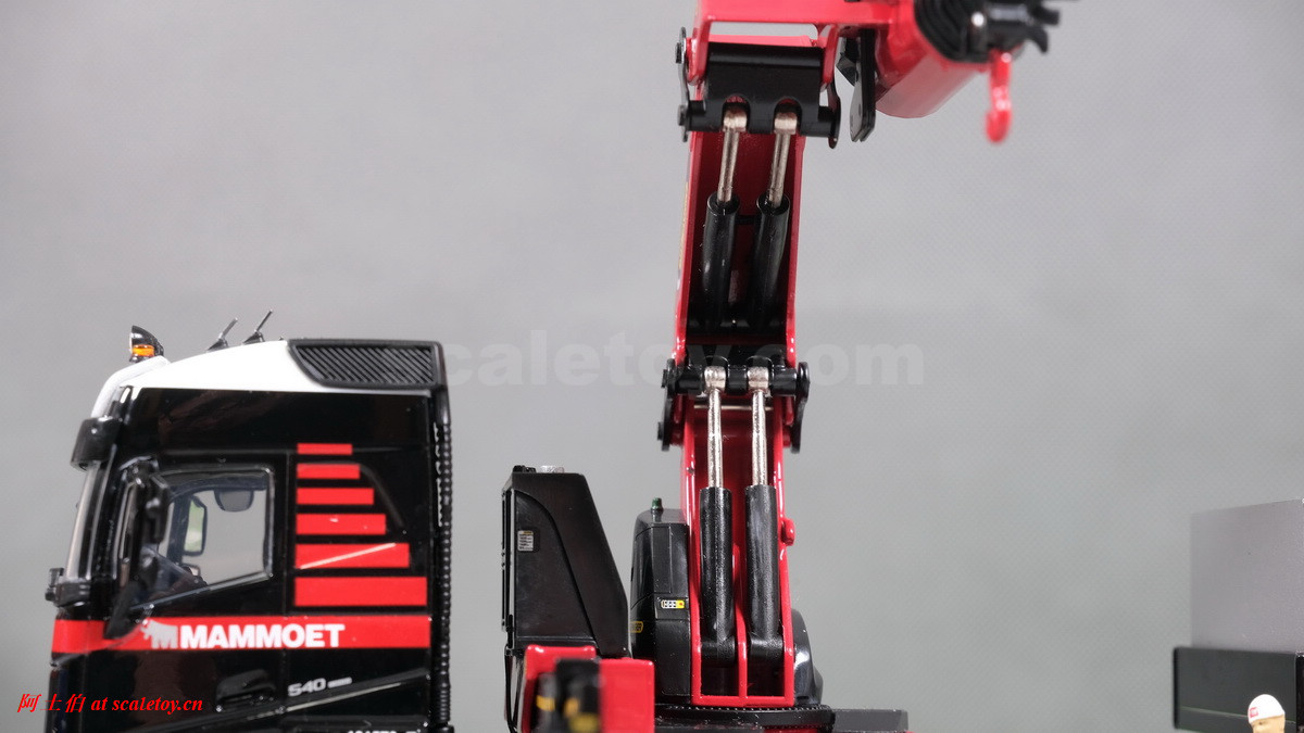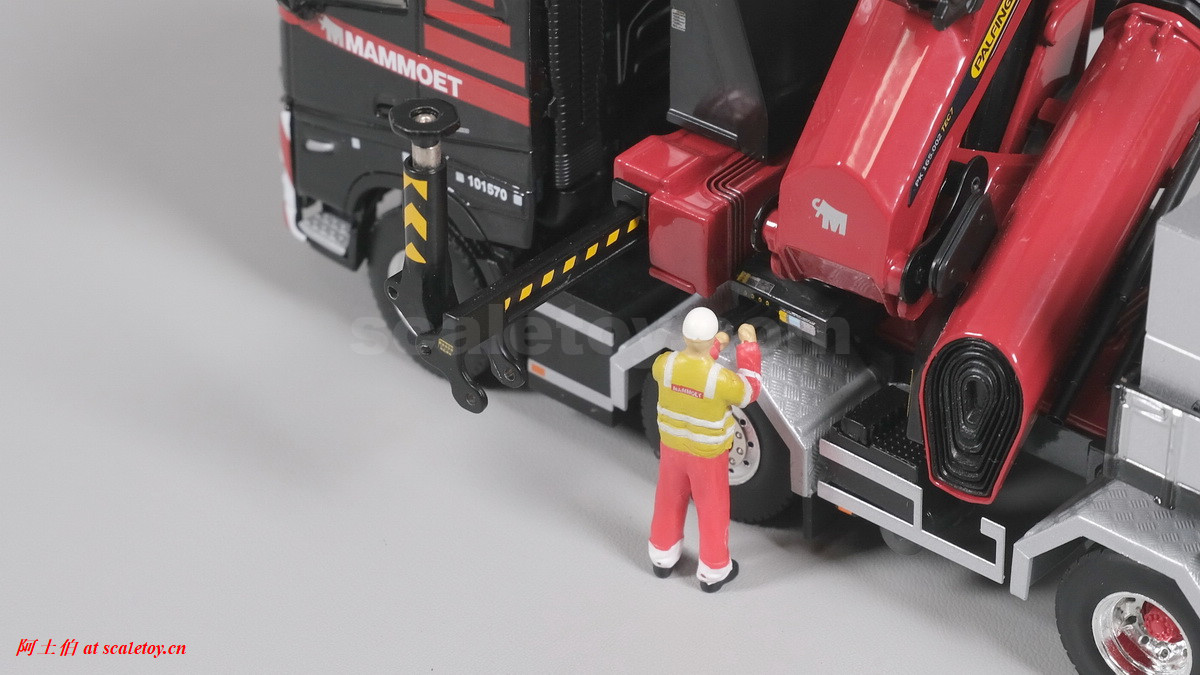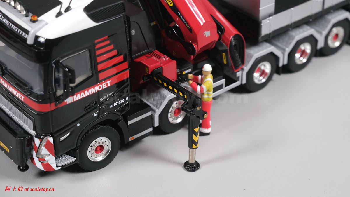 随车吊的打开,液压非常的紧,也是后续保持姿态的需要吧,但大家小心用力,别压到细节损坏。