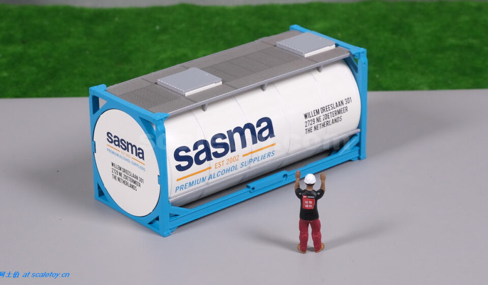场景附件[WSI] 20FT TANK CONTAINER – Sasma B.V. 20呎集装箱槽罐 荷兰Sasma 公司 作者 阿土伯 2025年6月6日 1 分钟阅读 0 Sasma BV 是世界上最大的散装优质酒精、散装有机酒精和散装烈酒独立供应商之一,成立于 2002 年,是一家家族企业,在酒精及酒精相关产品的采购、贸易和运输方面拥有 100 多年的综合经验。公司位于荷兰Zoetermeer,靠近鹿特丹港(35 公里)和阿姆斯特丹史基浦机场(40 公里)。 * 图片来自公司官网这款模型是WSI出品的SASMA 20呎槽罐集装箱,编号01-4517,比例1/50: 各面 顶部不能开口 底部有WSI印记 装车: 标签: SASMAWSI