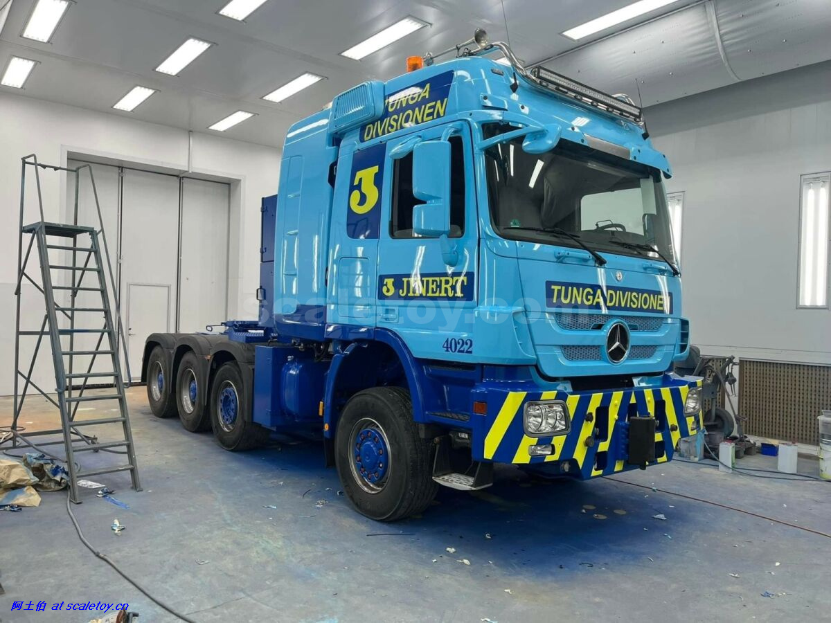 今天介绍的是一台奔驰ACTROS MP3 L 8X6拖头,挂SCHEUERLE 的2+5轴INTERCOMBI拖板。