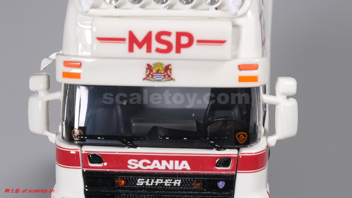 前挡玻璃有斯堪尼亚标志,内部细节构造没有彩绘图案