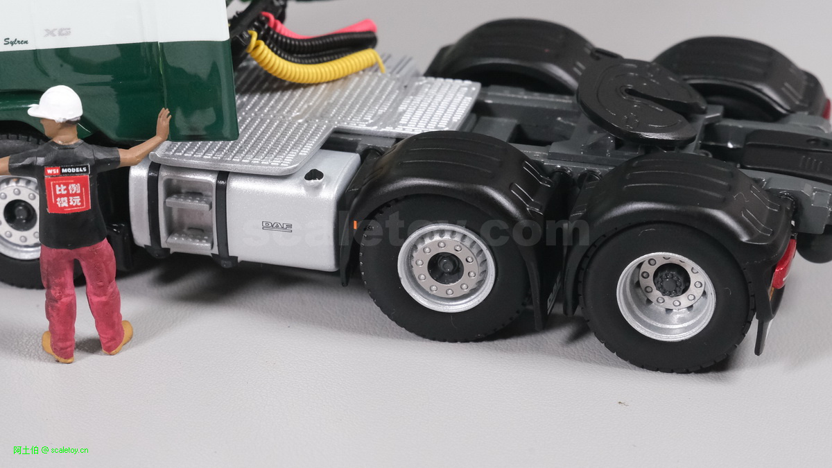 今天介绍的是一款公司的DAF XG 6X2双转向桥拖头,挂三轴砖块运输挂车。