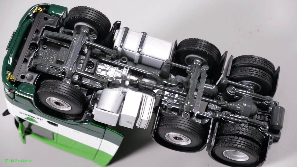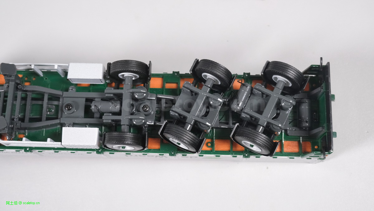 底盘,前两轴转向联动,有连杆,第三轴驱动