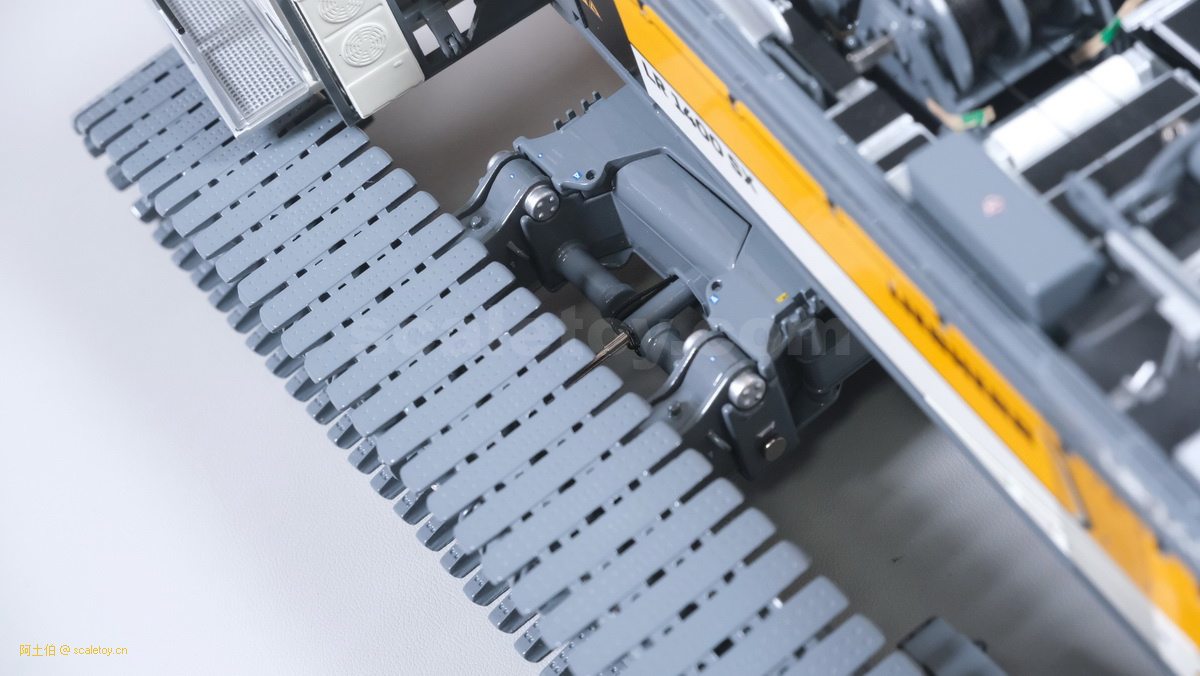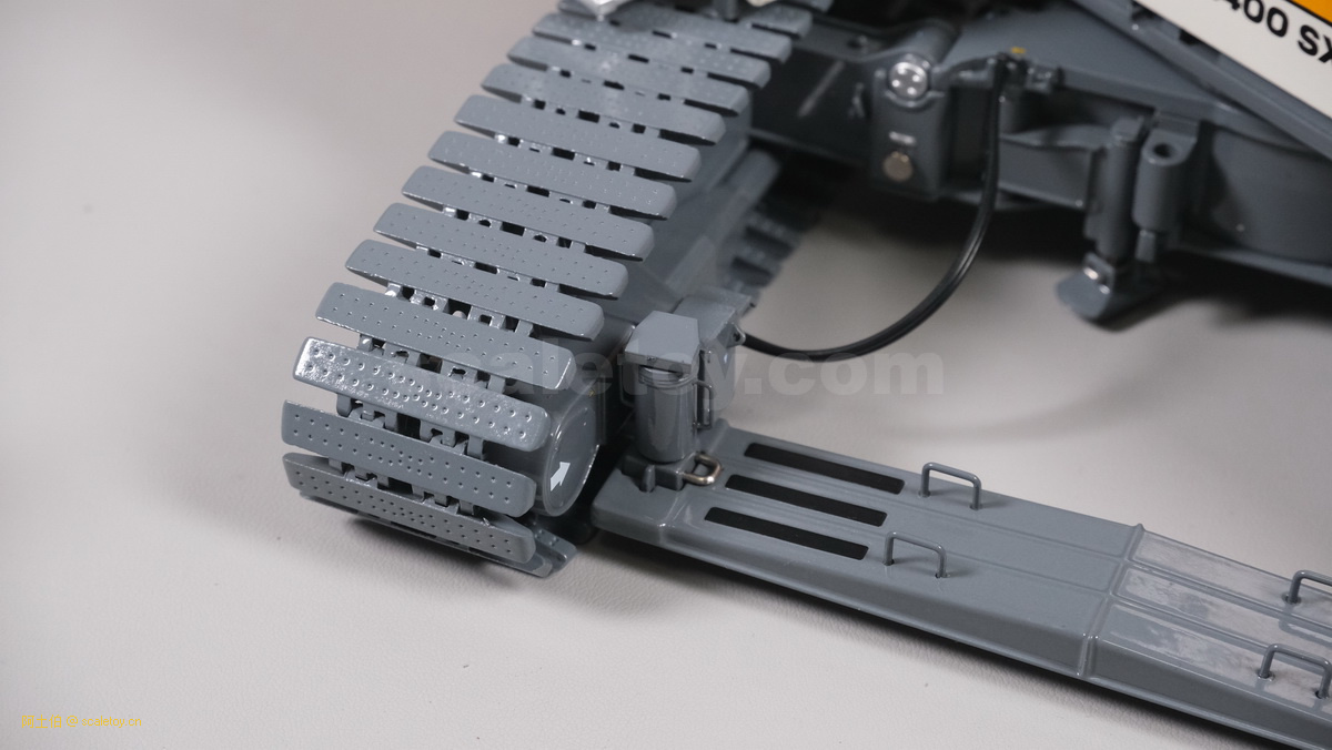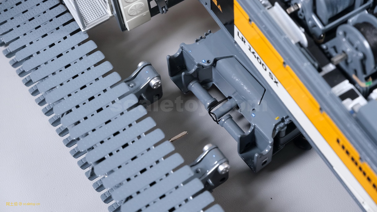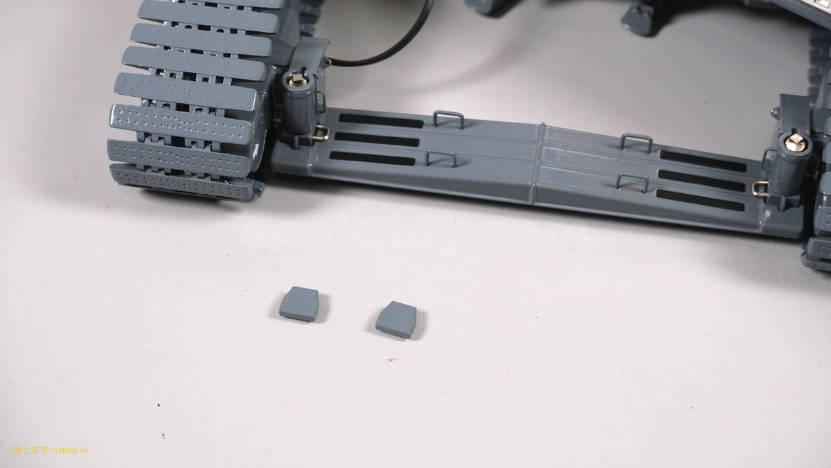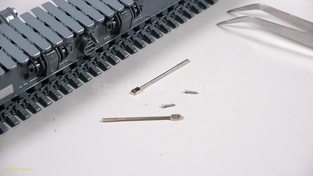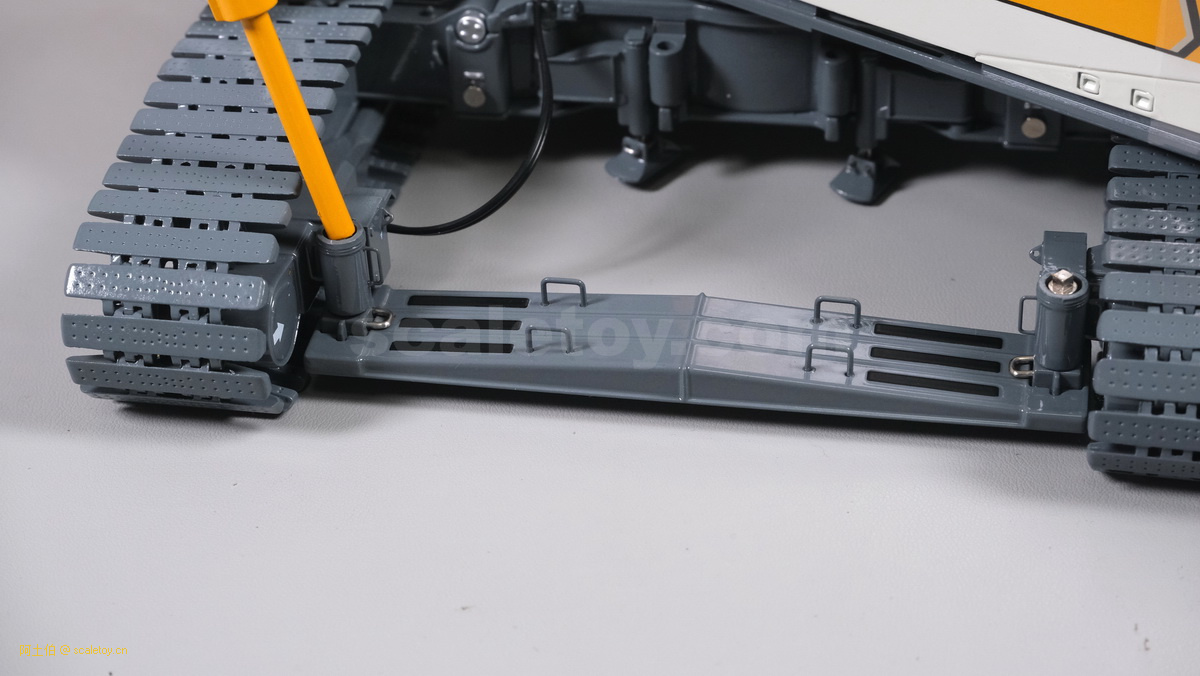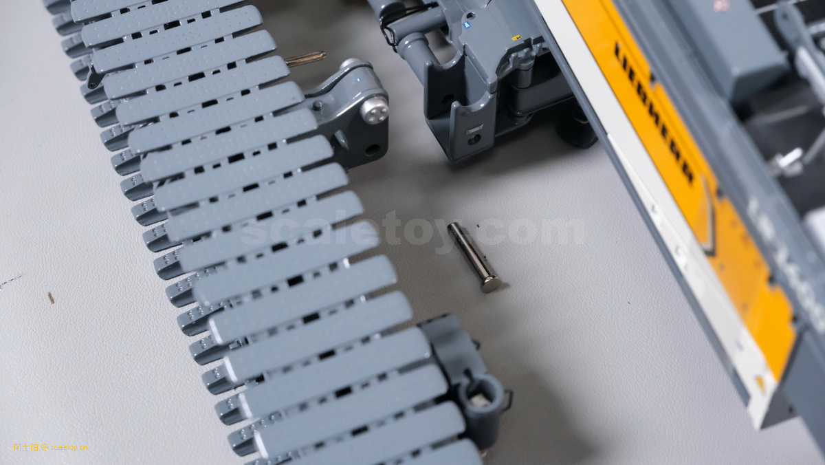 我们也看下履带伸开宽度的调节,拿下两个插销,推入履带