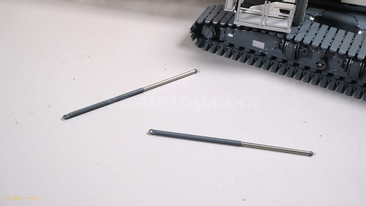 拧螺丝。。。飞臂上伸出来的这两根长的杆子是飞臂角度的限位器;两个液压套筒对应大臂头上两个短的杆子。