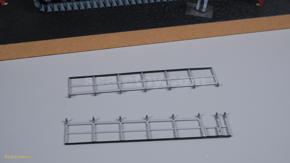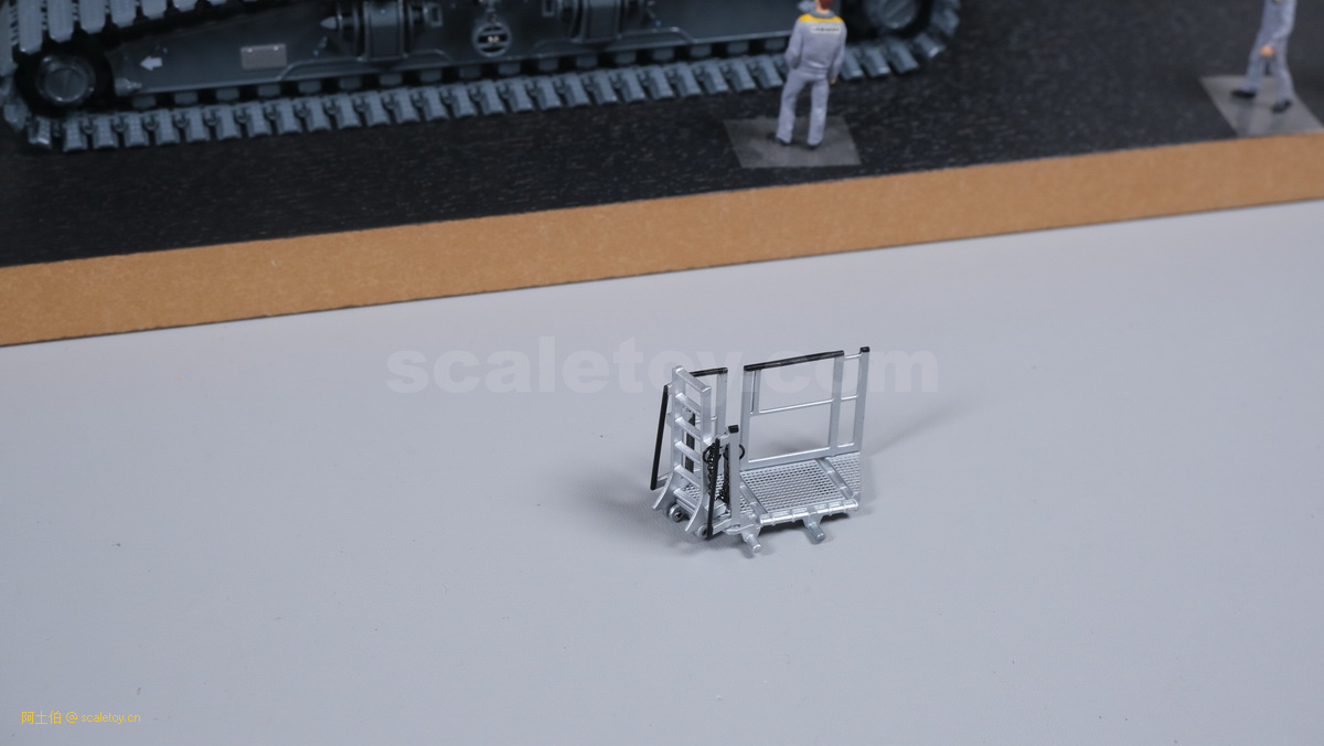 安装地面起步走道梯子(在配重托盘左侧),梯子是可以翻折的,有链子拉着