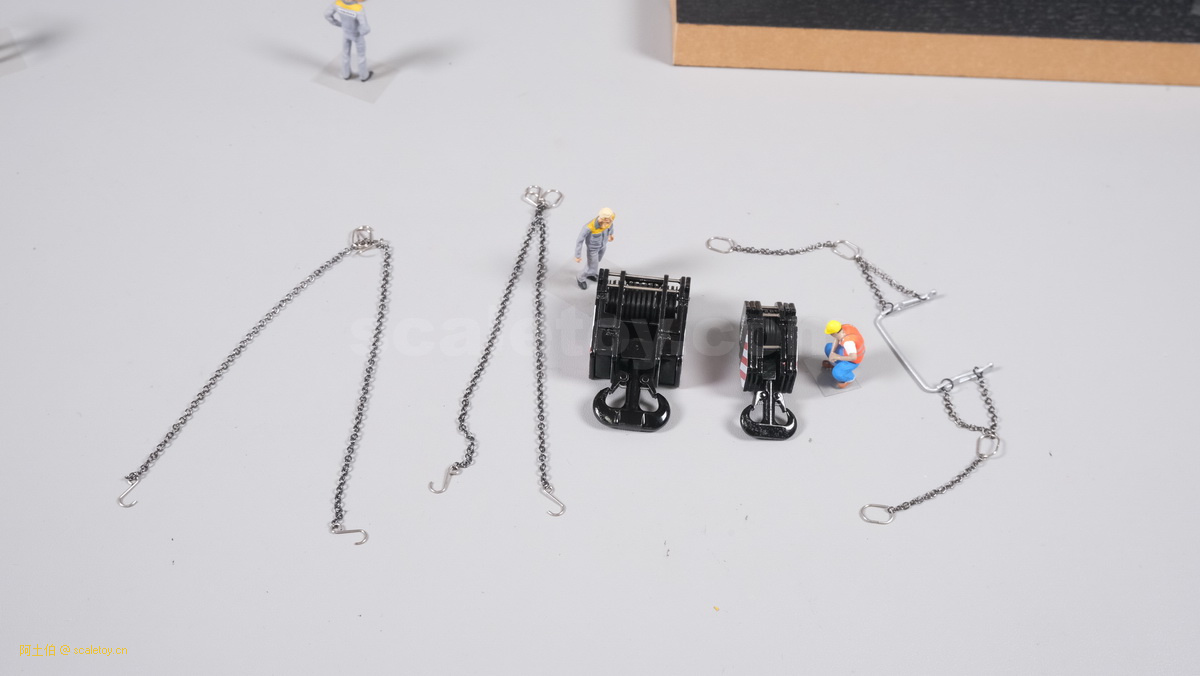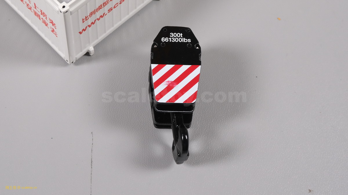 大钩300吨,滑轮数可以数一下,分了左中右 2+7+2,下面钩子两侧都带防脱钩的弹簧卡扣