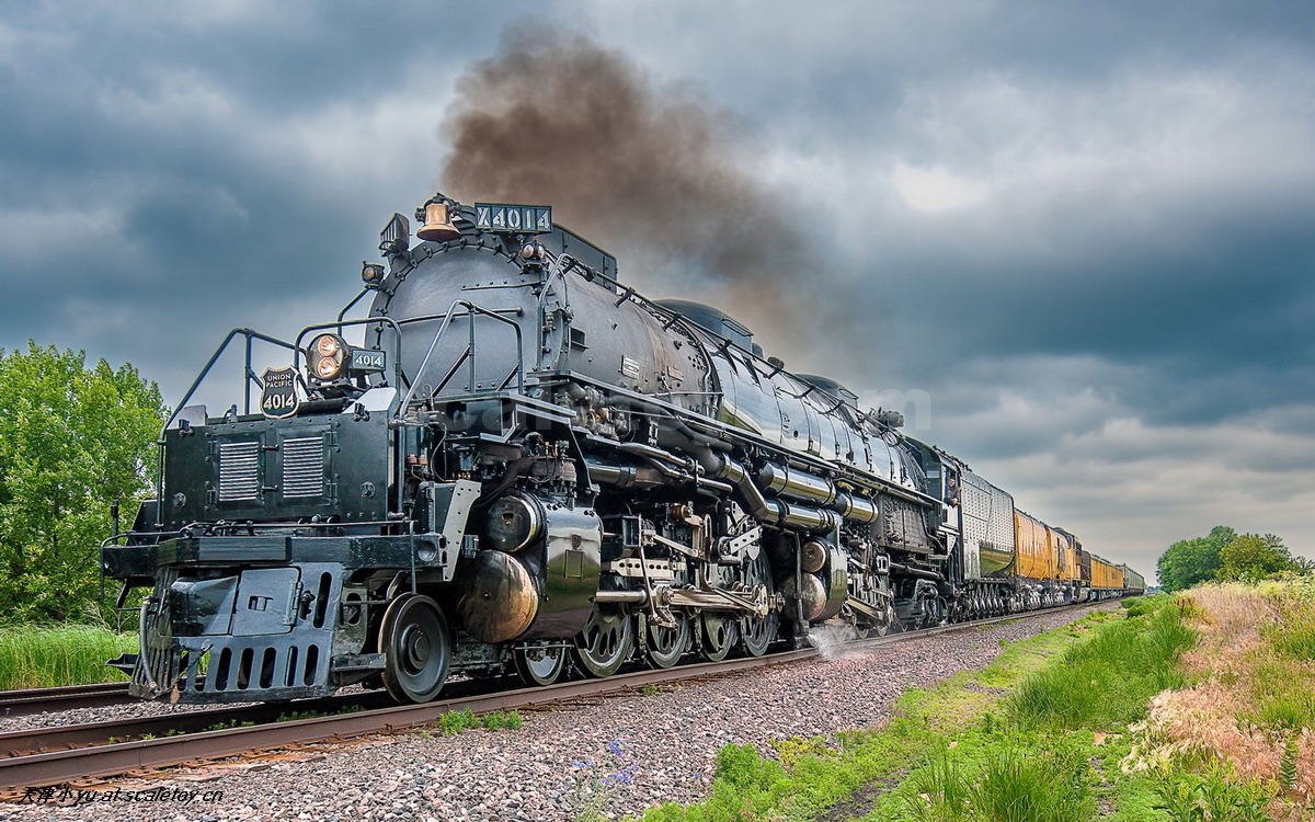 4-8-8-4“大男孩”(Big Boy)是由美国机车公司(American Locomotive Company,ALCO)于1941年至1944年间制造的铰接式蒸汽机车。联合太平洋铁路(Union Pacific)是该机型的唯一购买方,共订购并运营了25台重达600吨的巨型机车。4-8-8-4轴式布局将稳定性与强大牵引力结合:四轮导轮转向架使机车能够更平稳地进入弯道。双组8驱动轮产生135,375 Lbf(磅力)的牵引力,四轴后转向架支撑,大尺寸燃烧室,确保燃料供应稳定。最初的大男孩机车使用燃煤,但4014号机车在退役后被改装为燃油机车,以适应复兴运行需求。