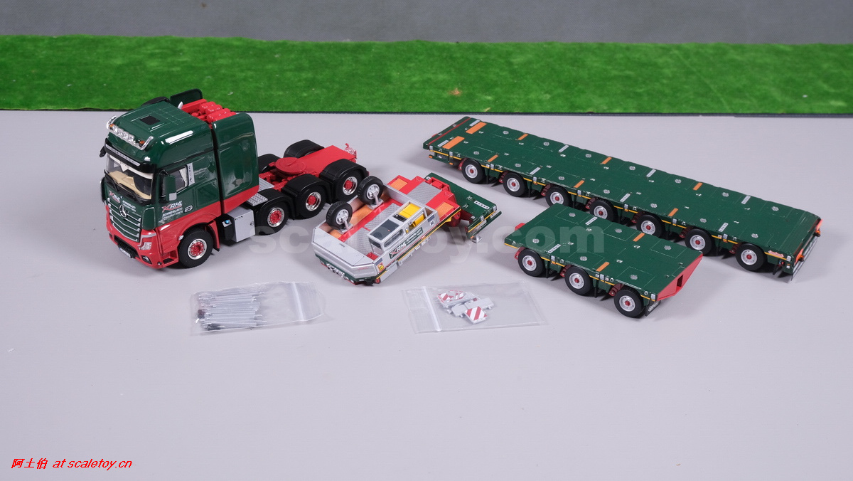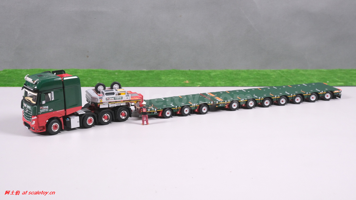 今天介绍的一款车是一台奔驰ACTROS MP5 SLT GIGA SPACE 8X4拖头,挂NOOTEBOOM的3+7轴 MANOOVR 拖板。