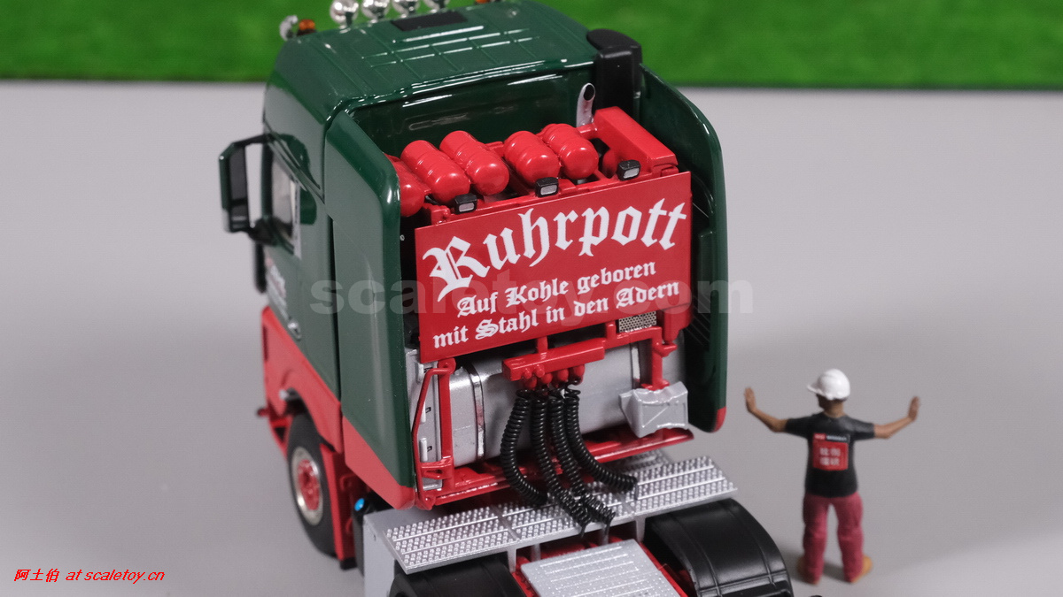 鹅颈,上面有动力包,备胎,工具箱。涂装细致,有特别的KAHL的logo