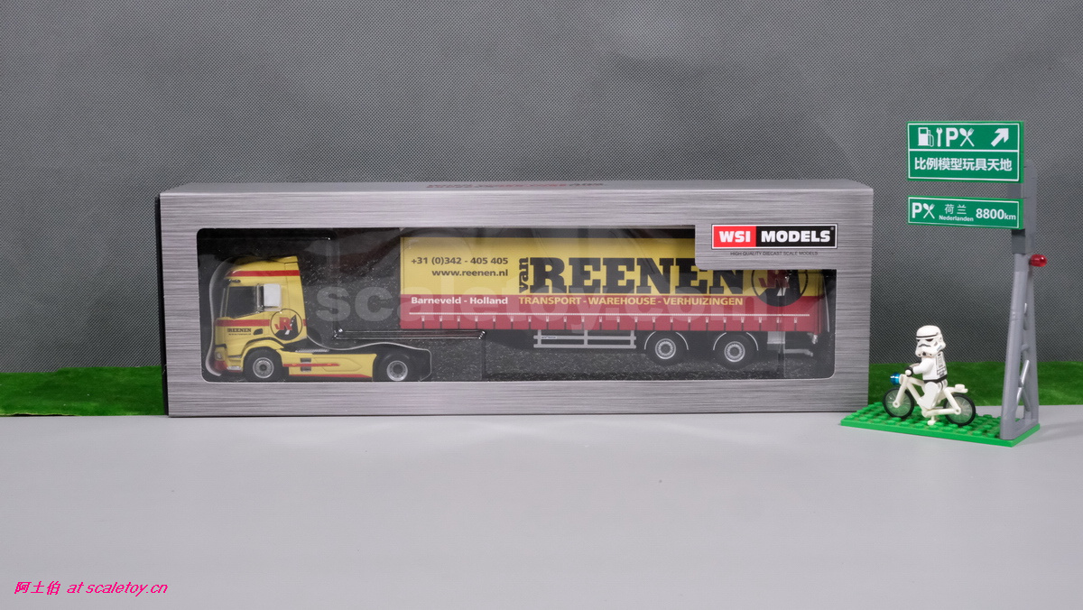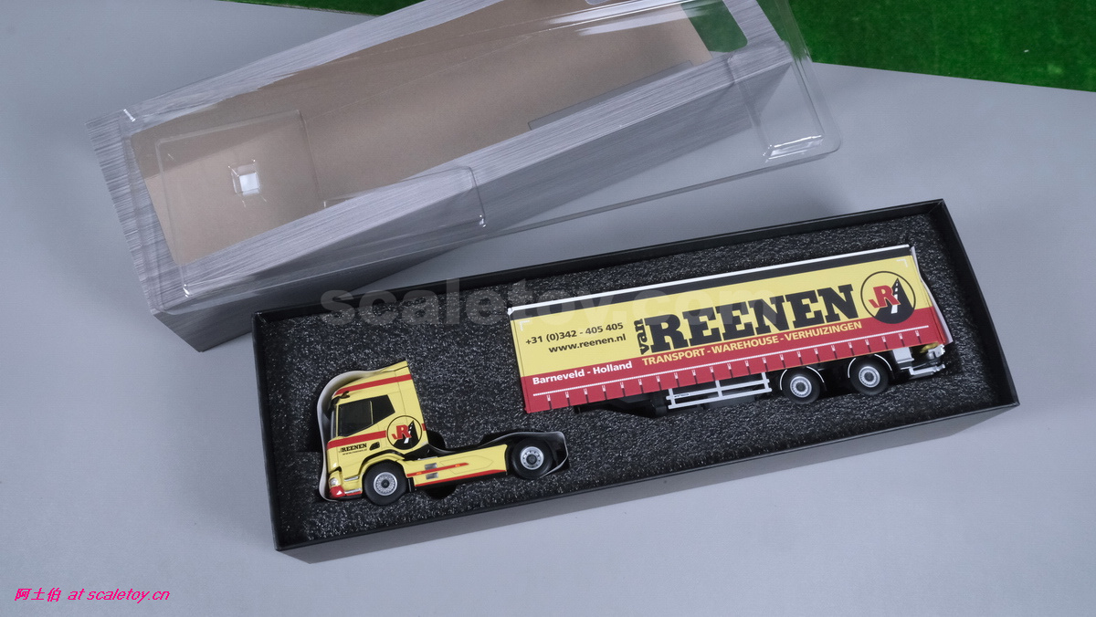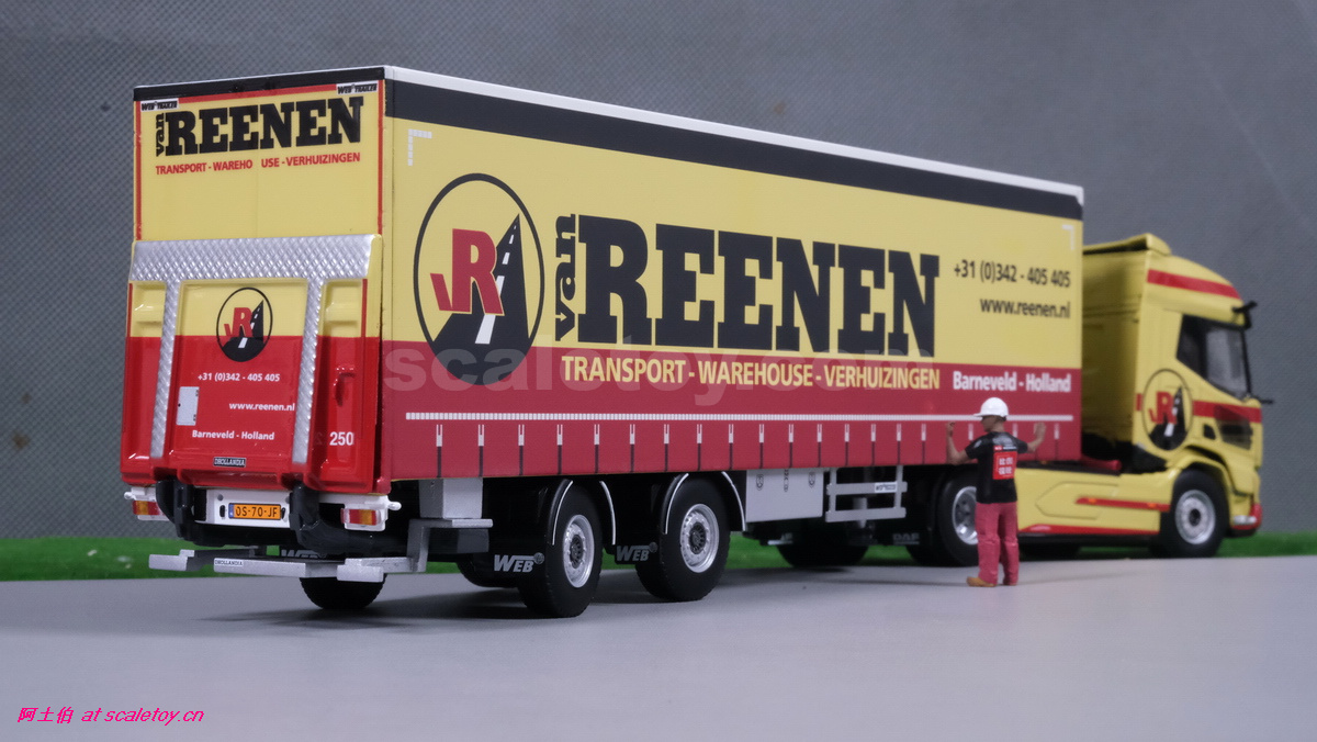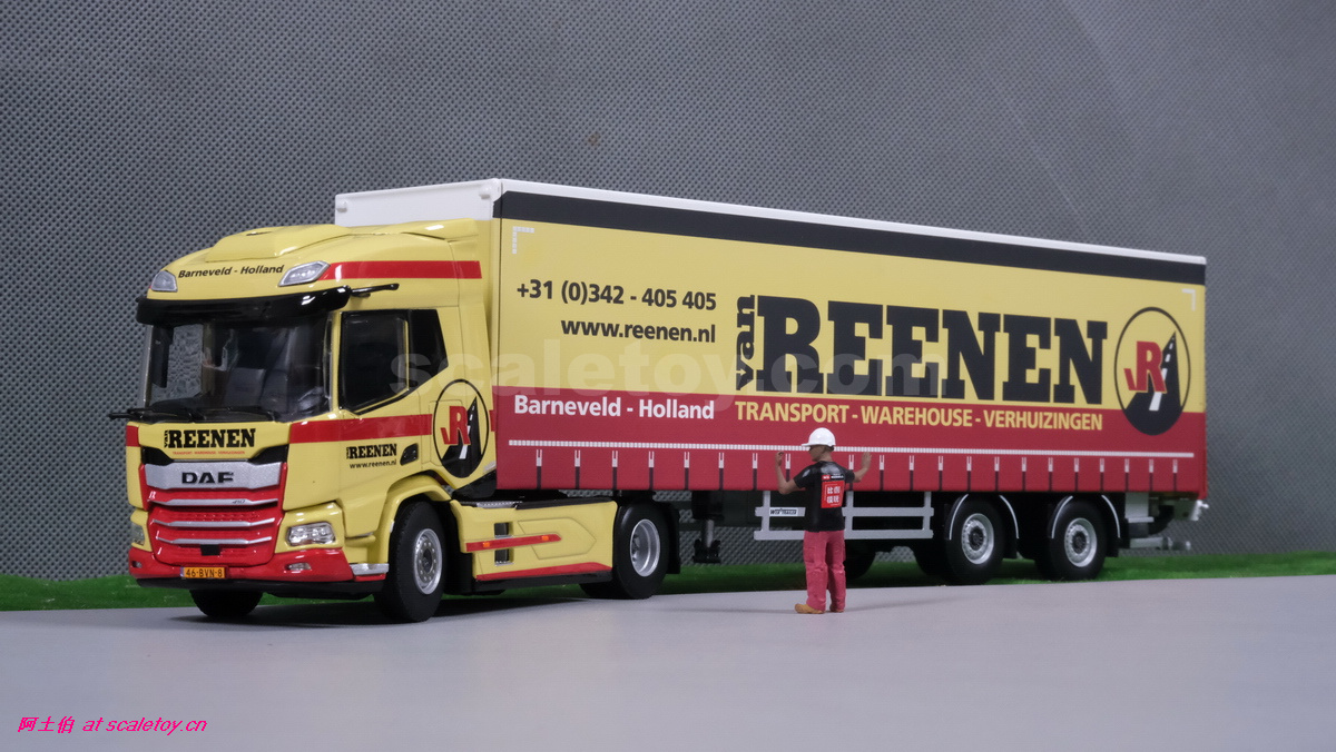 WSI出过不少Van Reenen涂装的模型,今天介绍的这款DAF XD SH两轴拖头,挂两轴厢式挂车。模型编号01-4622,比例1/50。