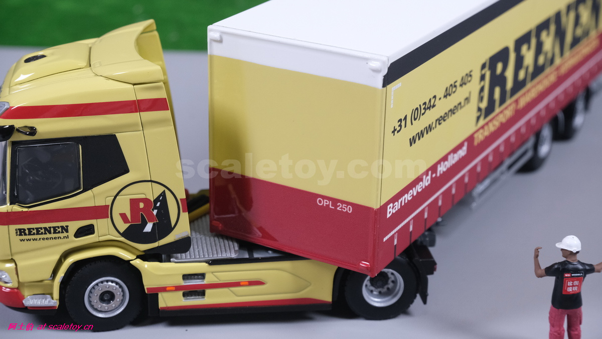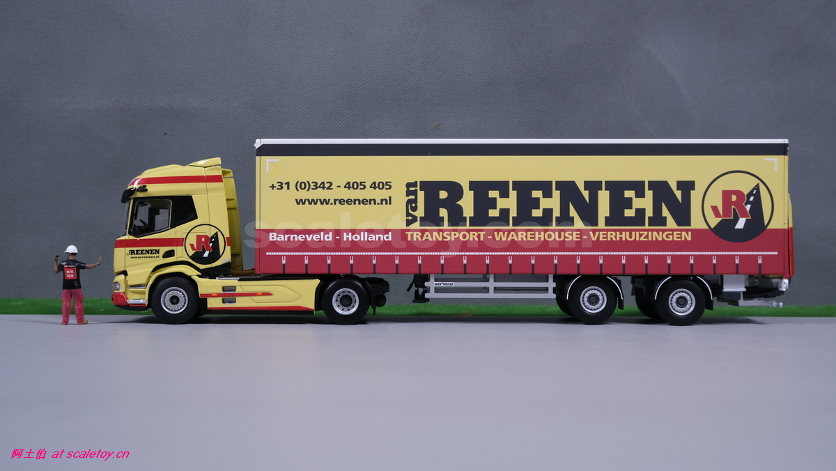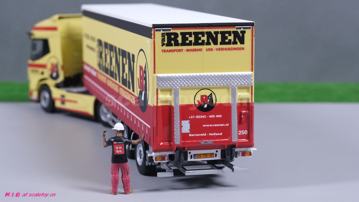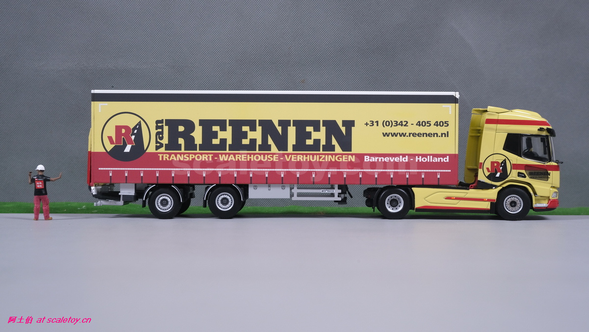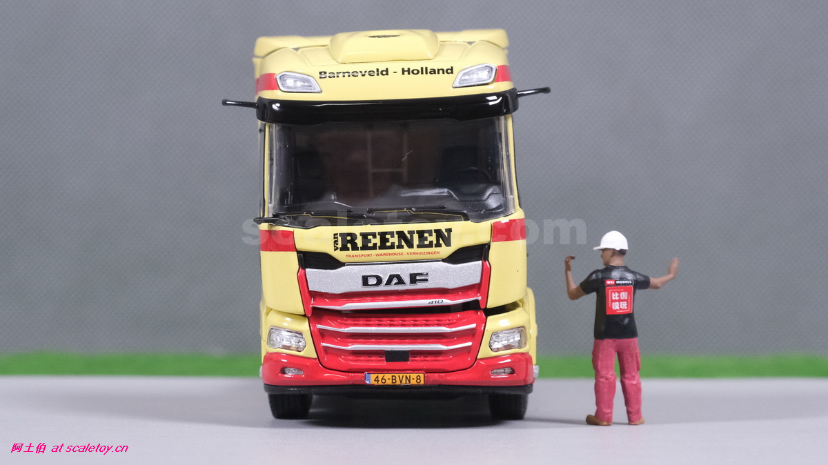 WSI出过不少Van Reenen涂装的模型,今天介绍的这款DAF XD SH两轴拖头,挂两轴厢式挂车。模型编号01-4622,比例1/50。