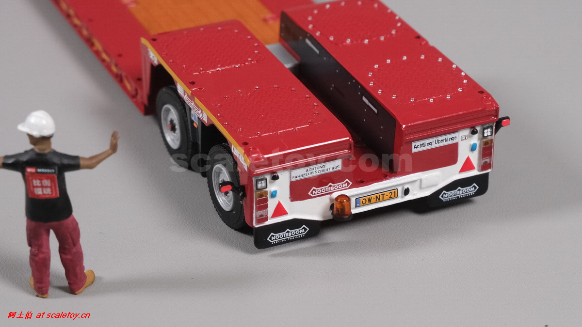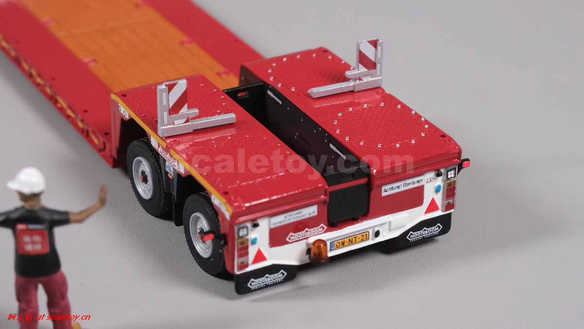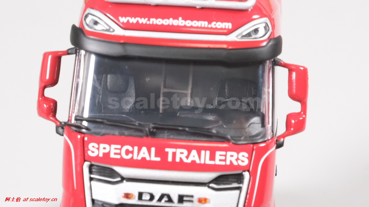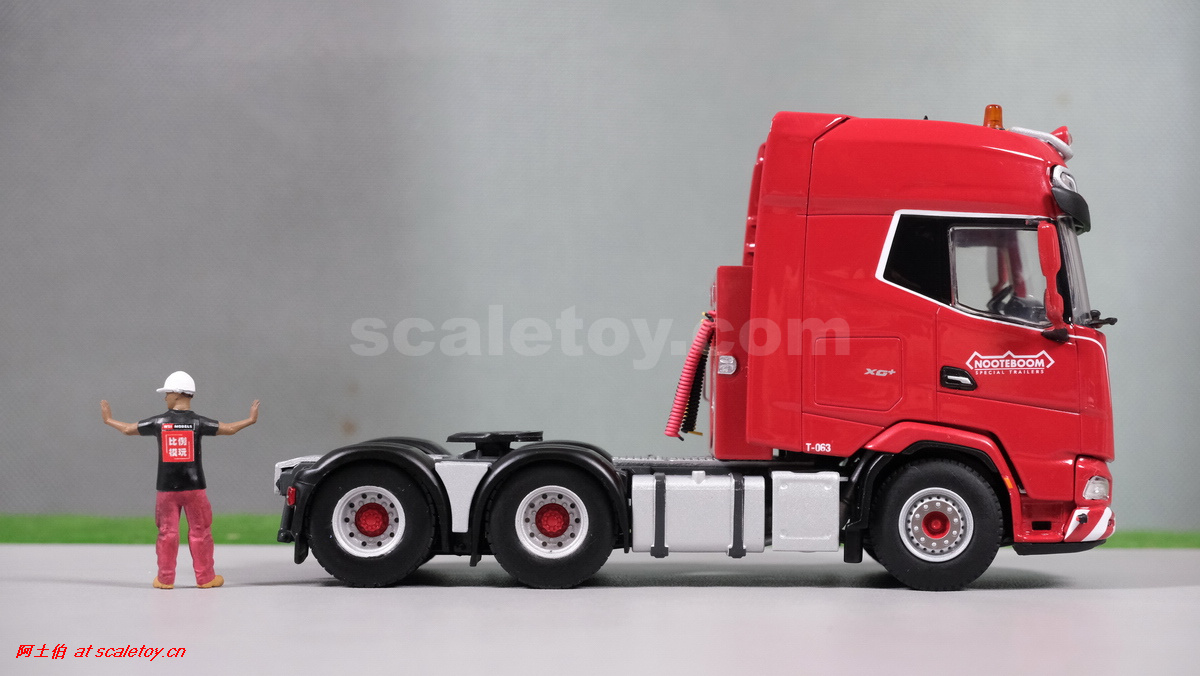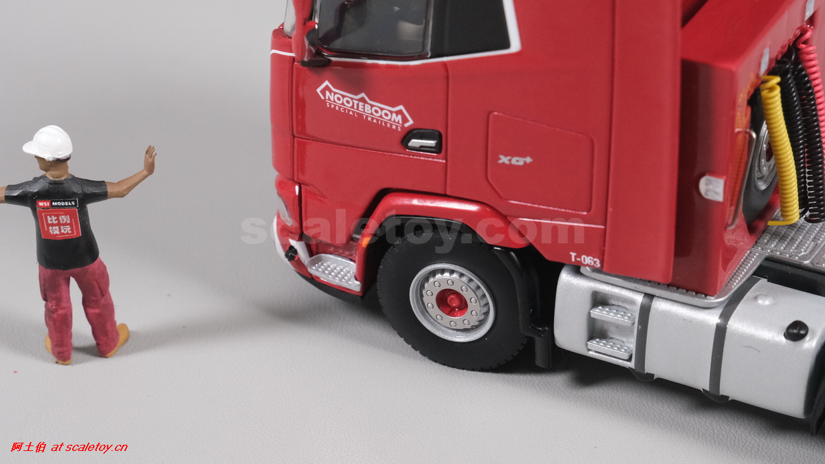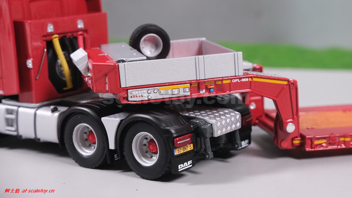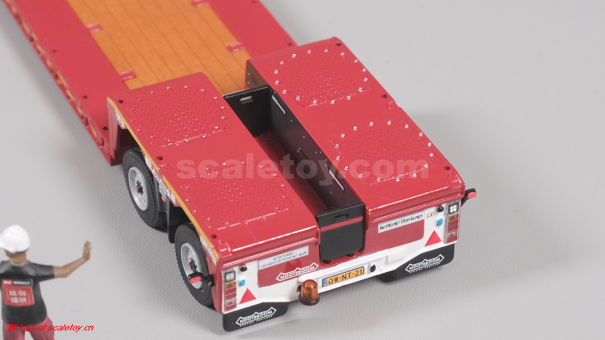 今天介绍的WSI的Nooteboom Red Line系列,也是一台EURO PX拖板,由一台达夫XG+ MY25 6X4拖头,挂两轴EURO PX 欧式低板。模型编号02-3725 / 6073366,比例1/50。