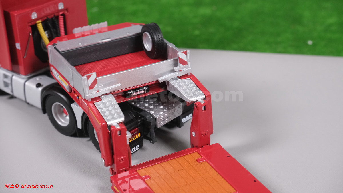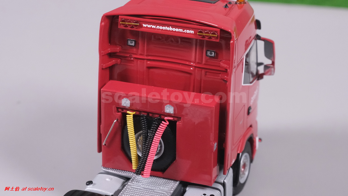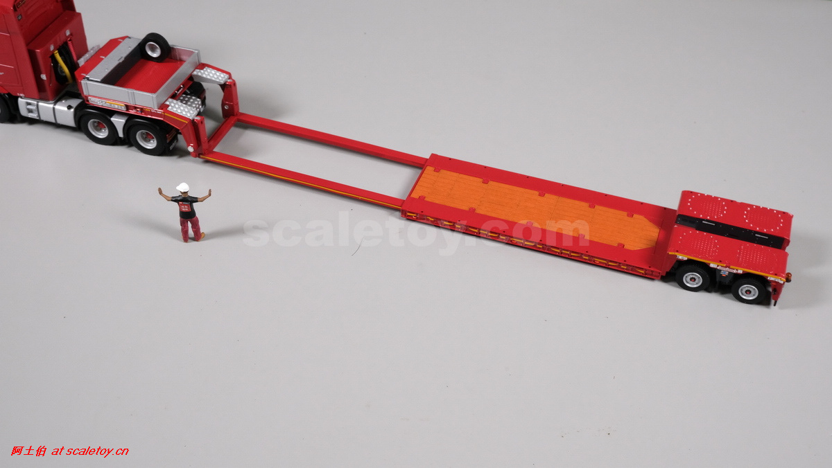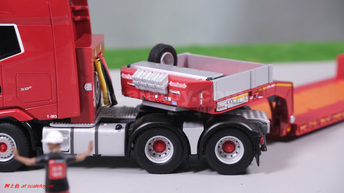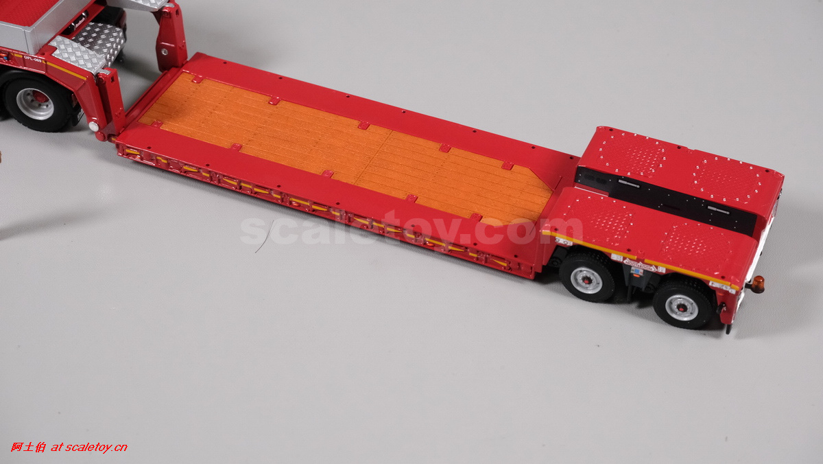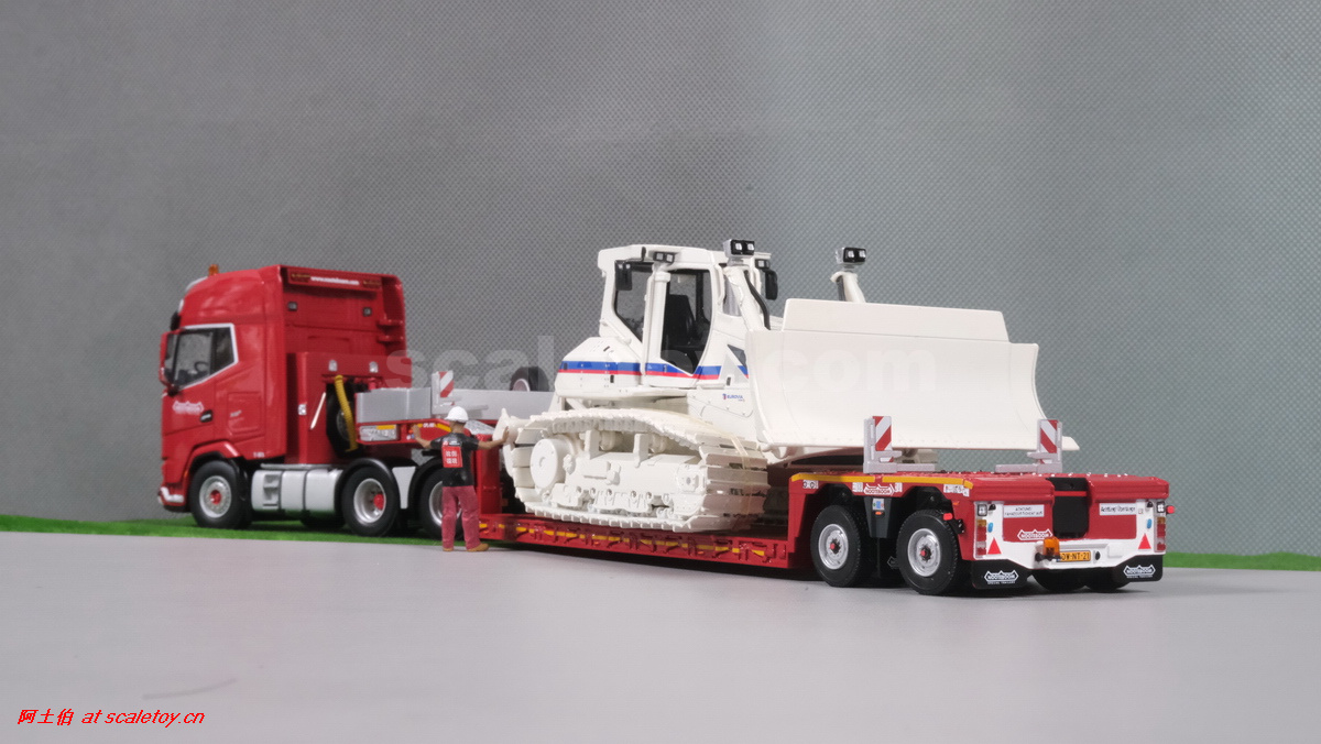今天介绍的WSI的Nooteboom Red Line系列,也是一台EURO PX拖板,由一台达夫XG+ MY25 6X4拖头,挂两轴EURO PX 欧式低板。模型编号02-3725 / 6073366,比例1/50。