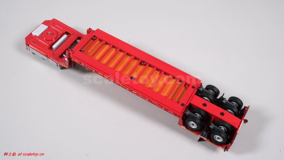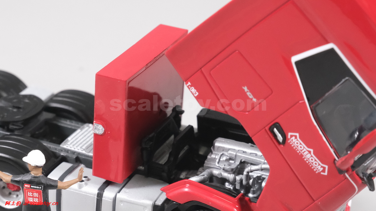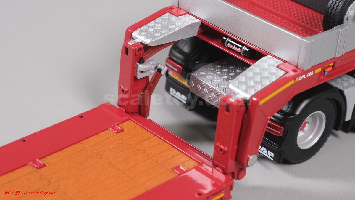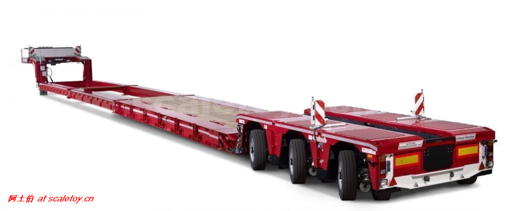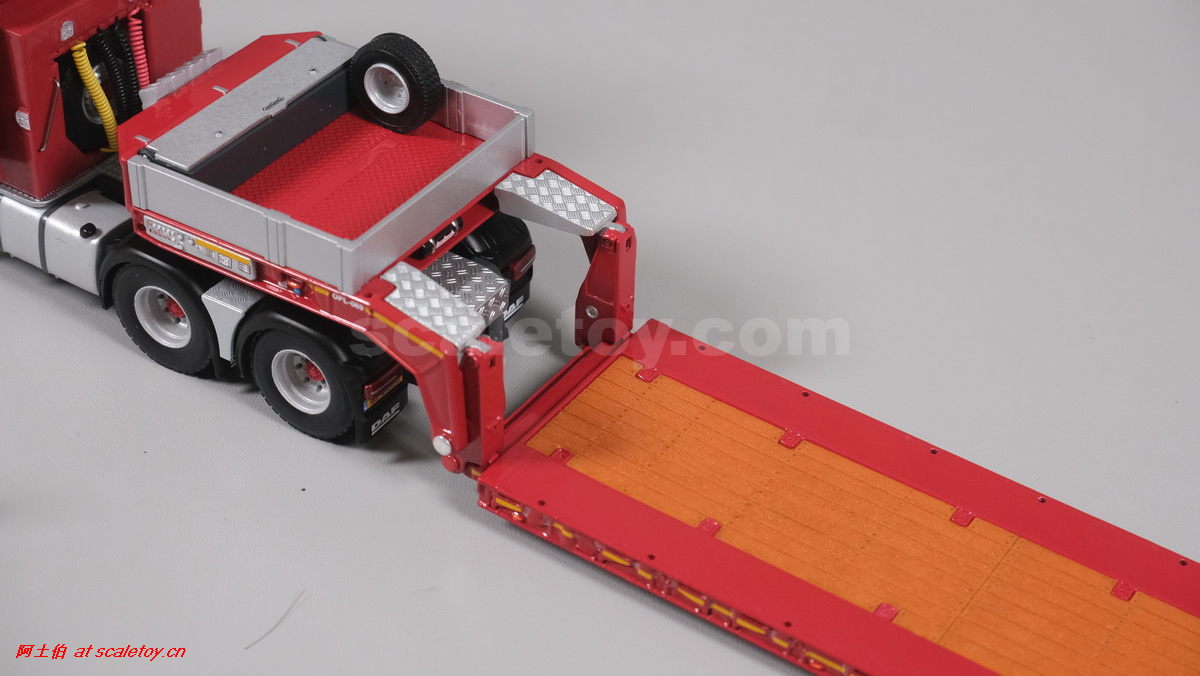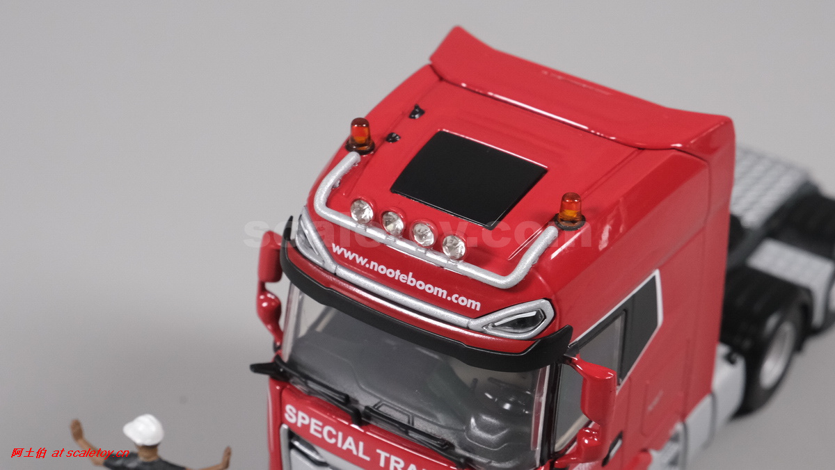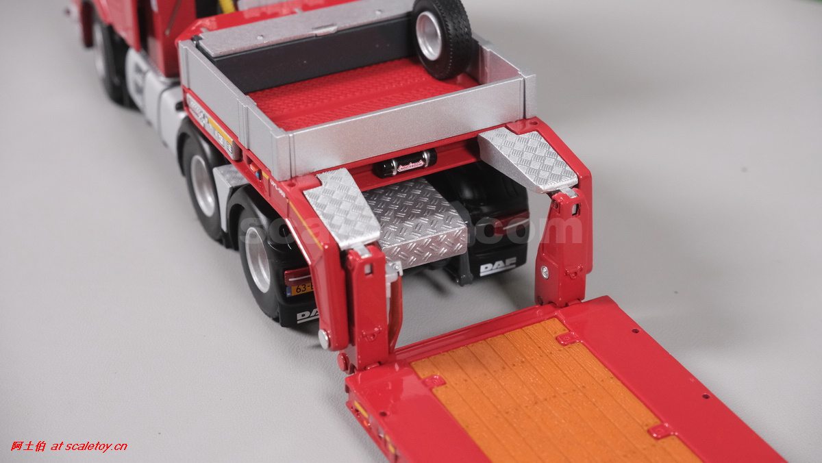 今天介绍的WSI的Nooteboom Red Line系列,也是一台EURO PX拖板,由一台达夫XG+ MY25 6X4拖头,挂两轴EURO PX 欧式低板。模型编号02-3725 / 6073366,比例1/50。