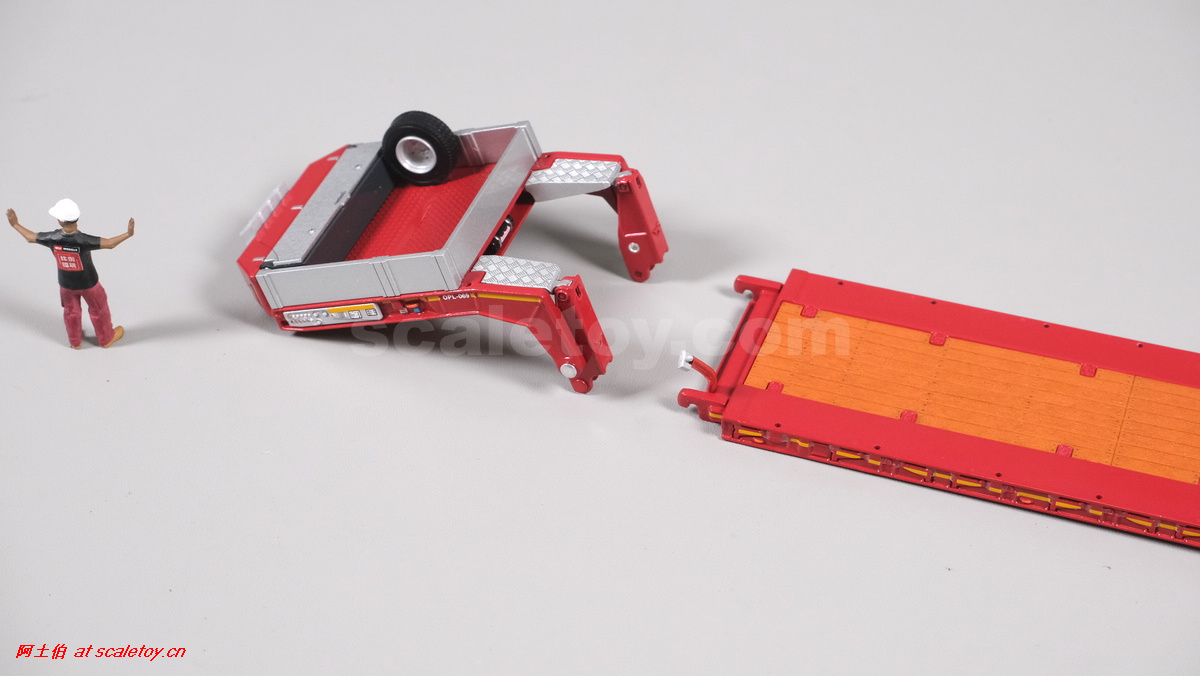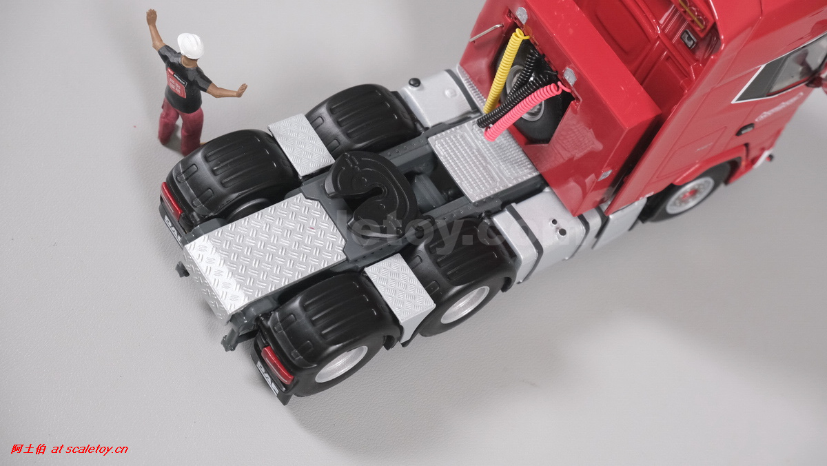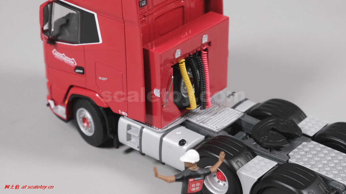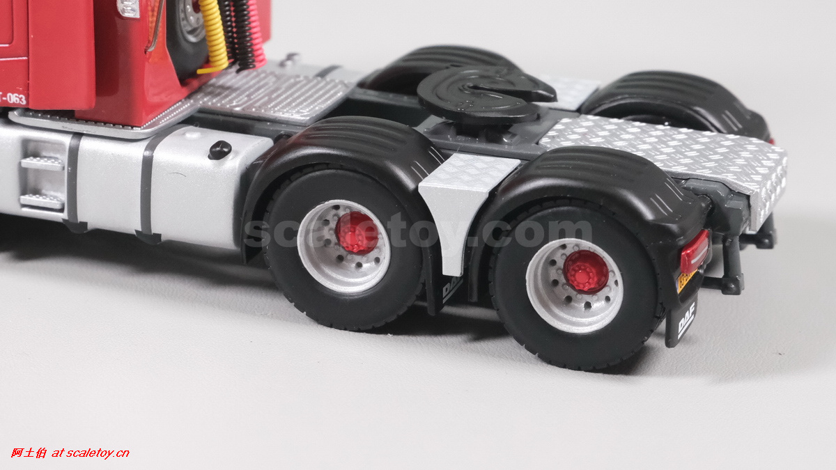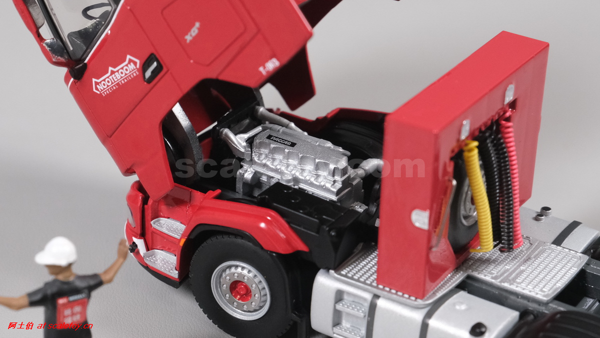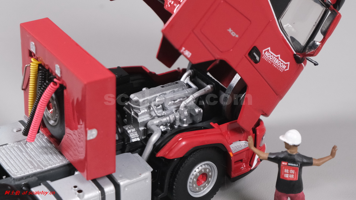 今天介绍的WSI的Nooteboom Red Line系列,也是一台EURO PX拖板,由一台达夫XG+ MY25 6X4拖头,挂两轴EURO PX 欧式低板。模型编号02-3725 / 6073366,比例1/50。