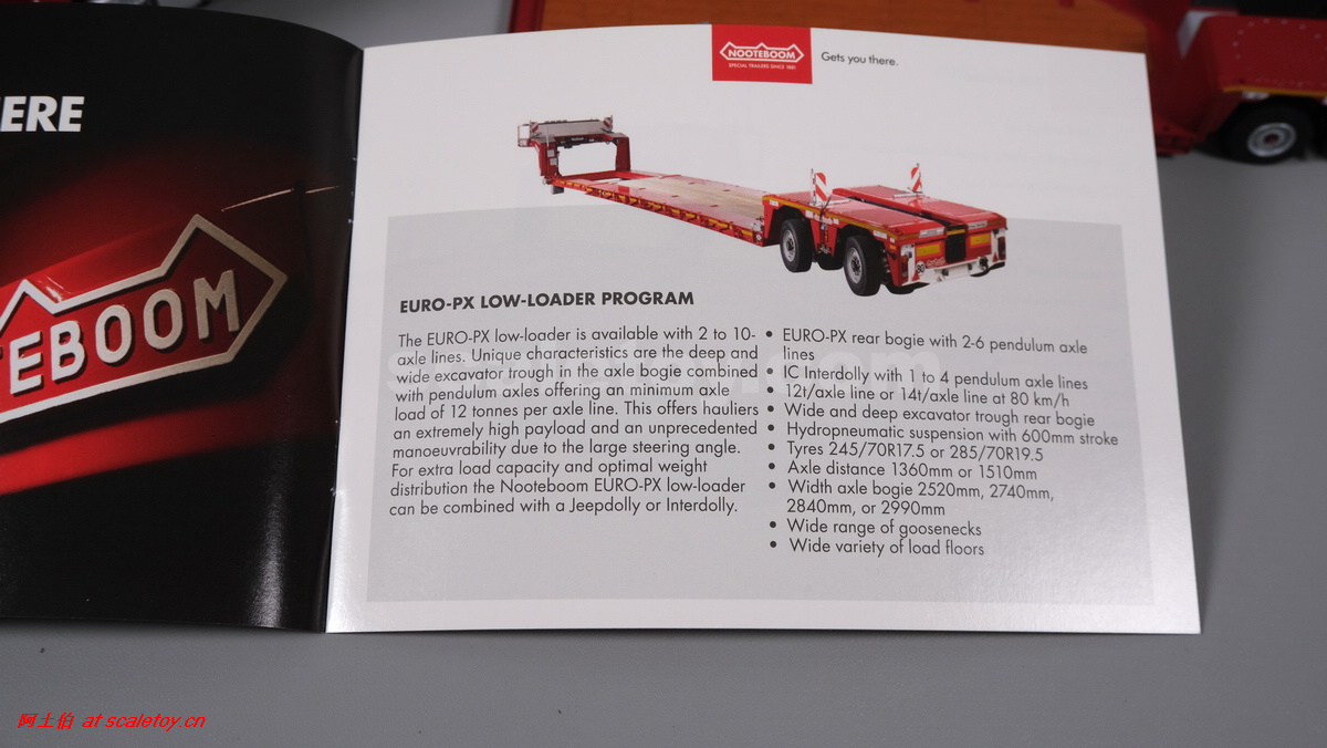 包装是Nooteboom Red Line惯常,里面包含一本EURO PX宣传及模型组装说明