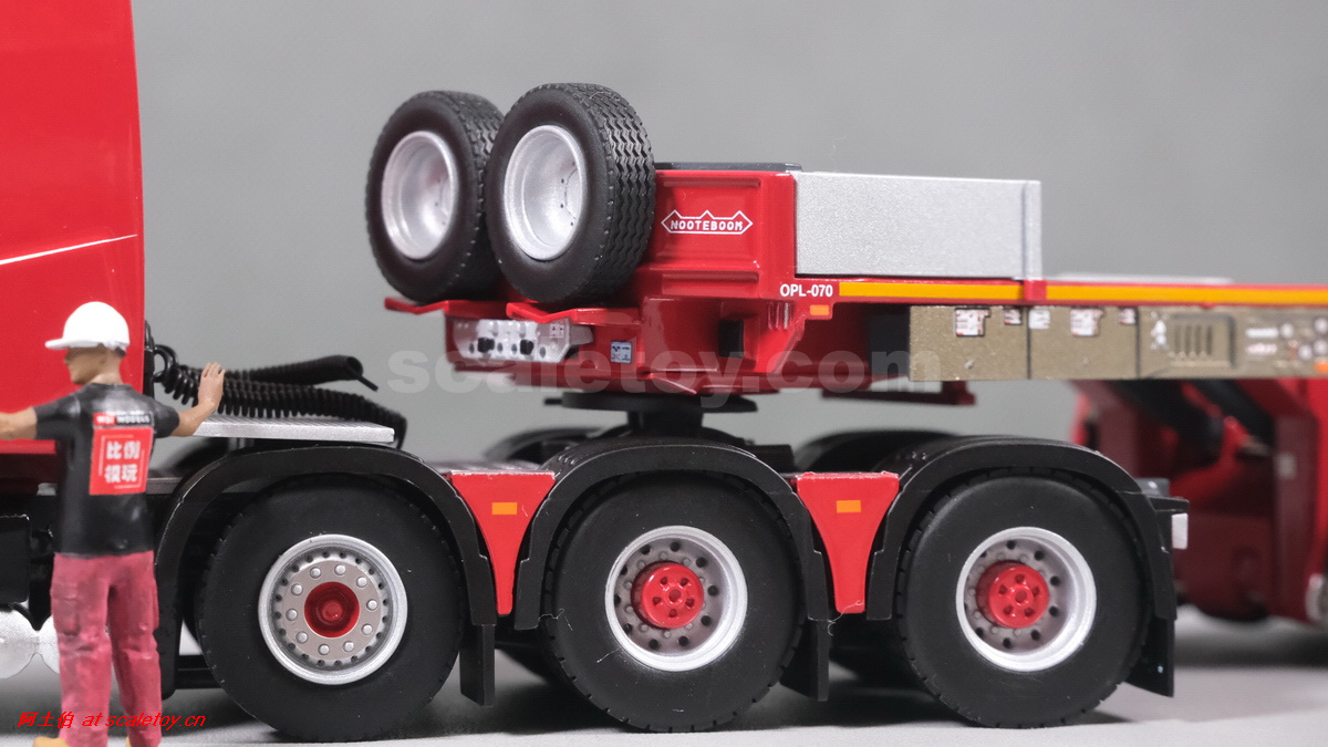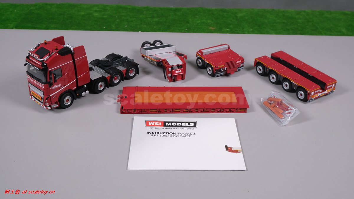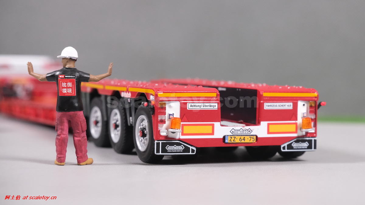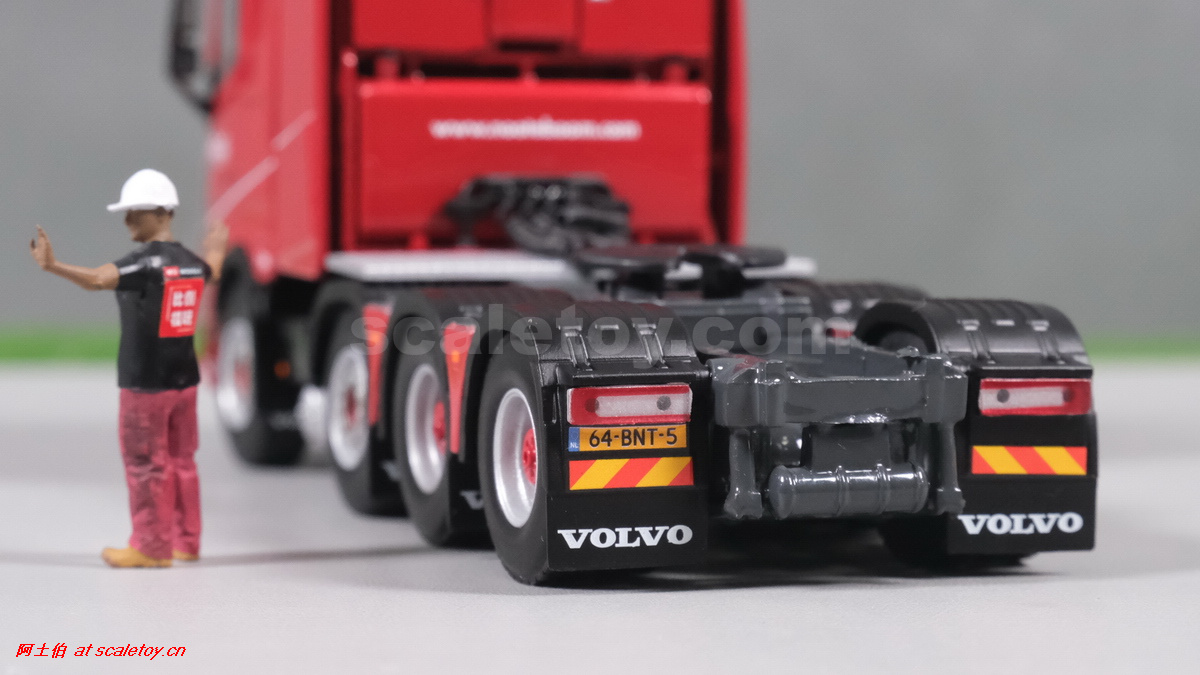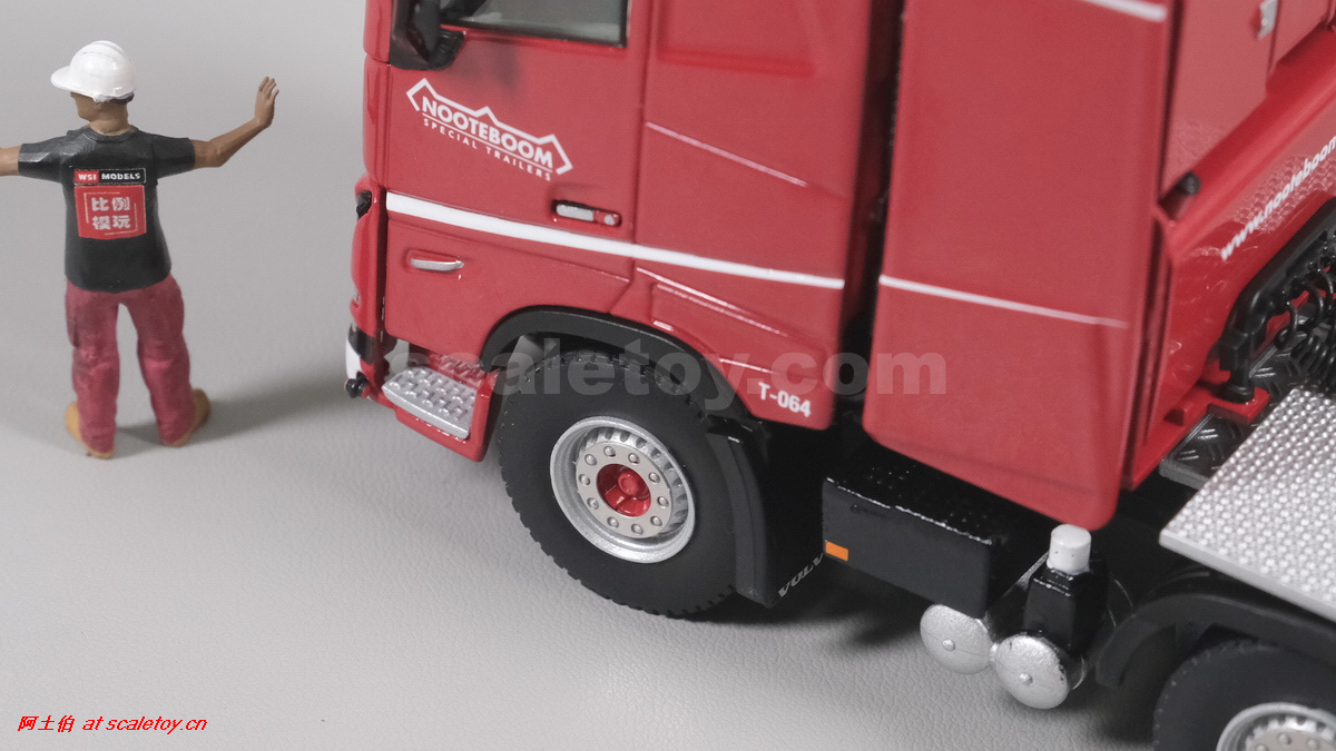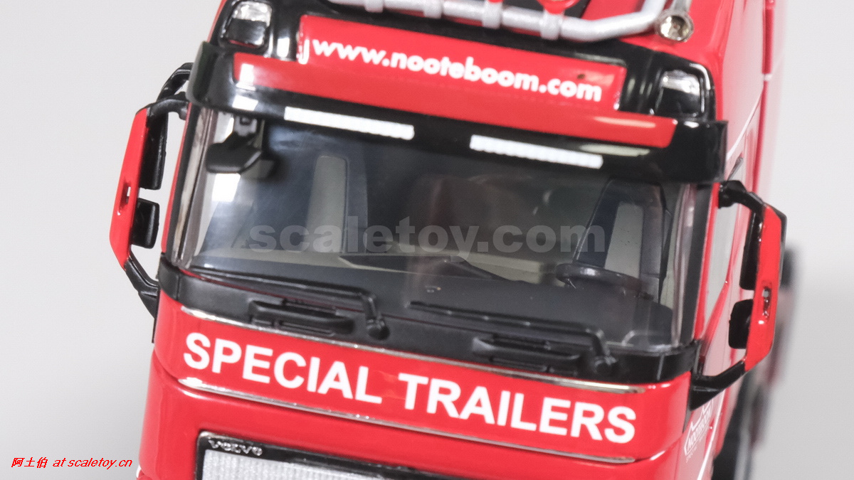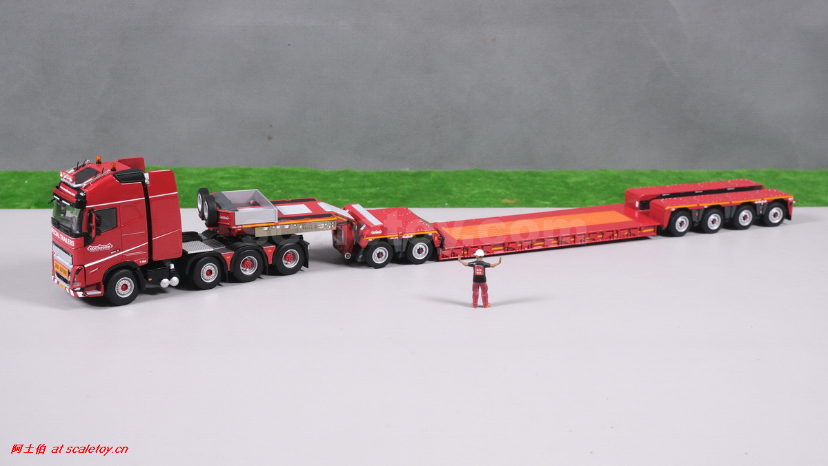 今天介绍的模型也是WSI的Nooteboom Red Line系列,一台沃尔沃的FH5 GLOBETROTTER XL 8X4拖头,挂NOOTEBOOM的4轴低板,配两轴interdolly。