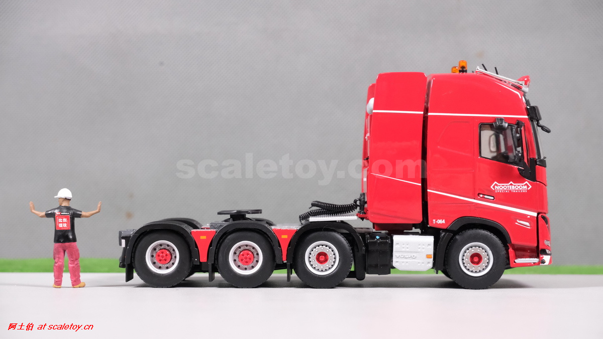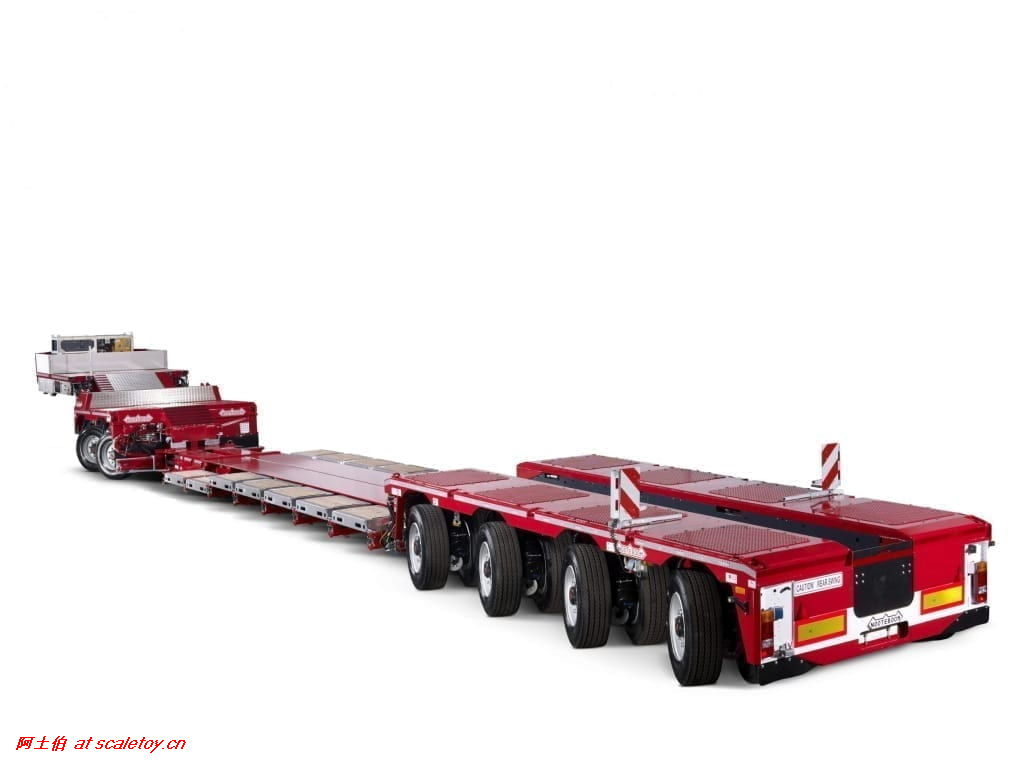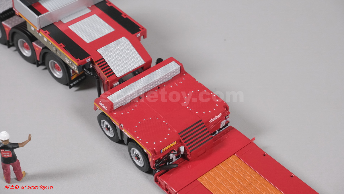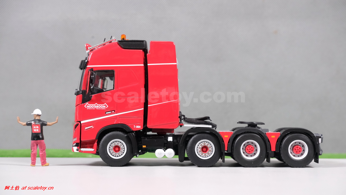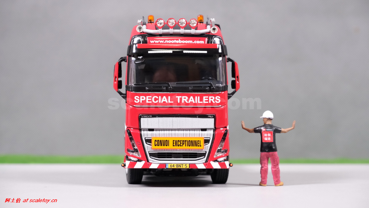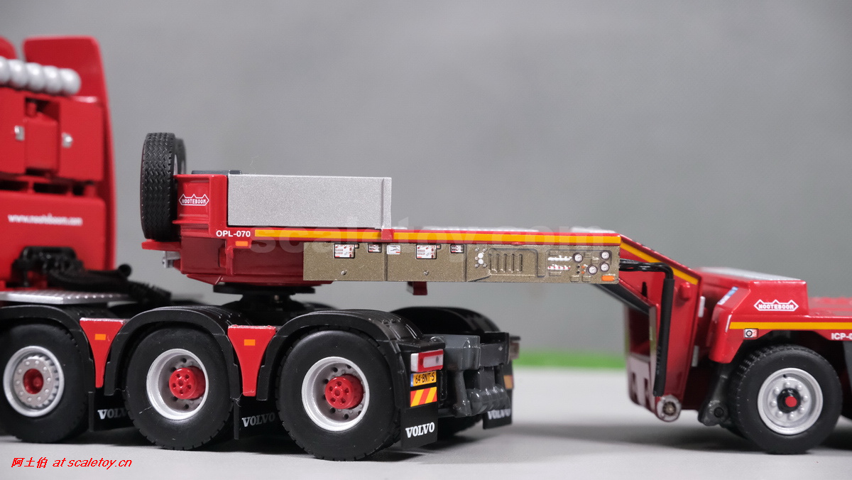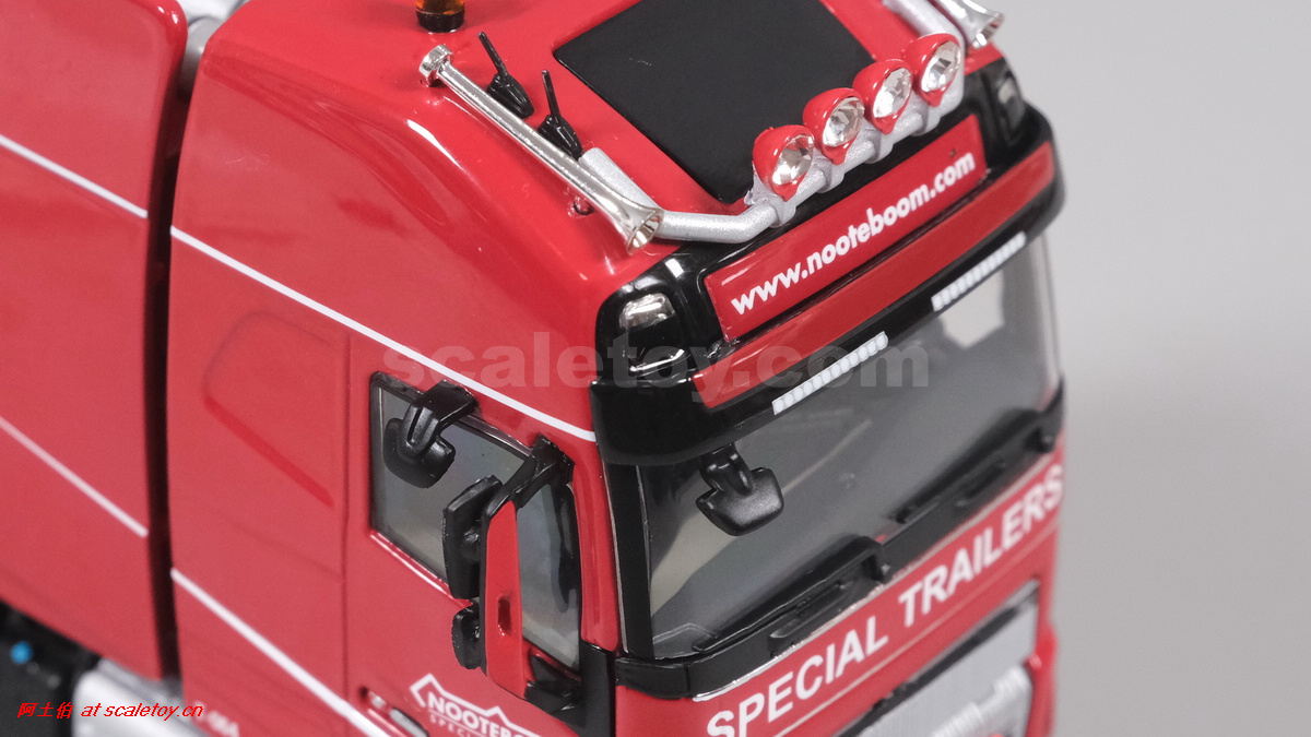 今天介绍的模型也是WSI的Nooteboom Red Line系列,一台沃尔沃的FH5 GLOBETROTTER XL 8X4拖头,挂NOOTEBOOM的4轴低板,配两轴interdolly。