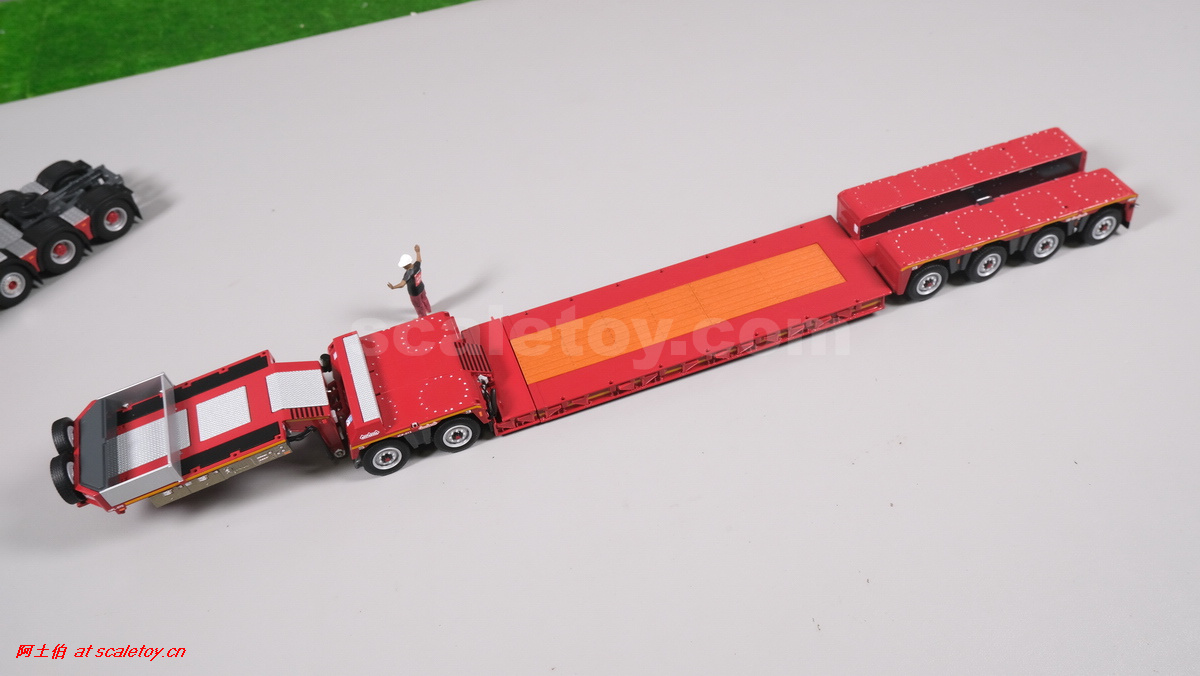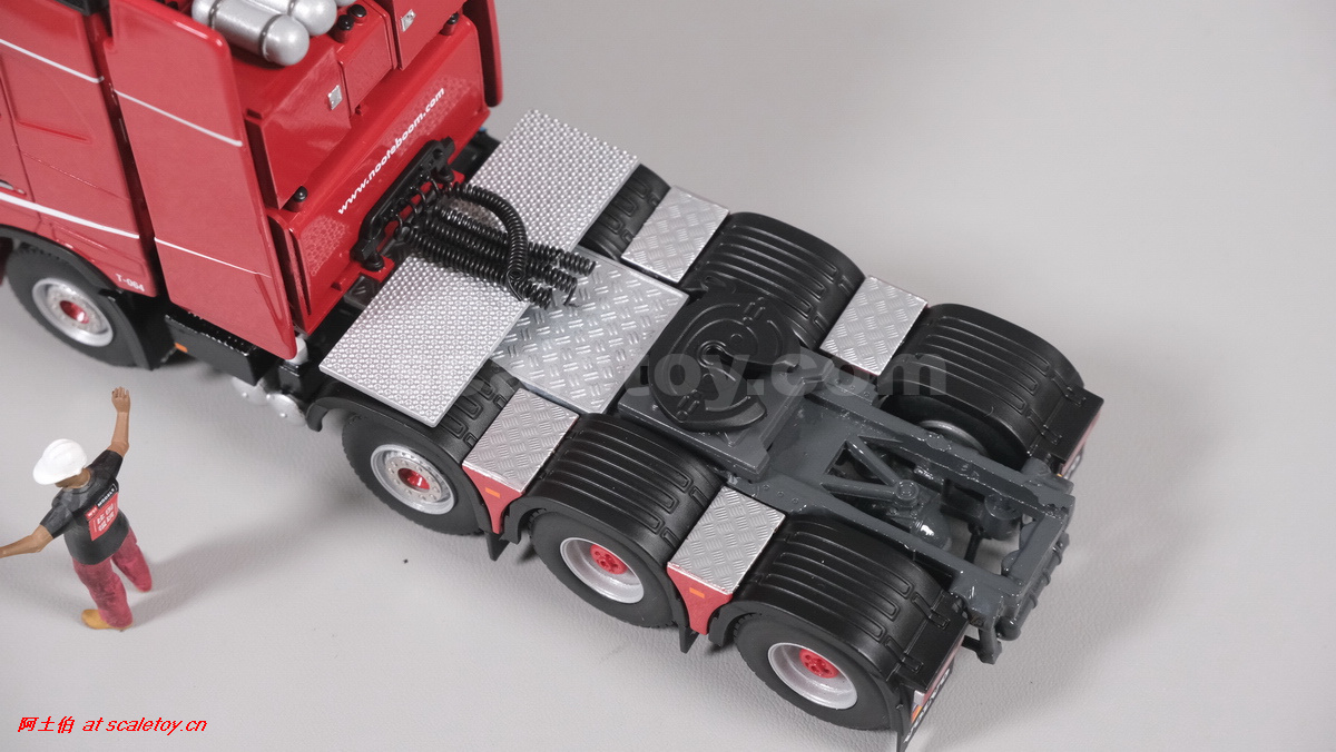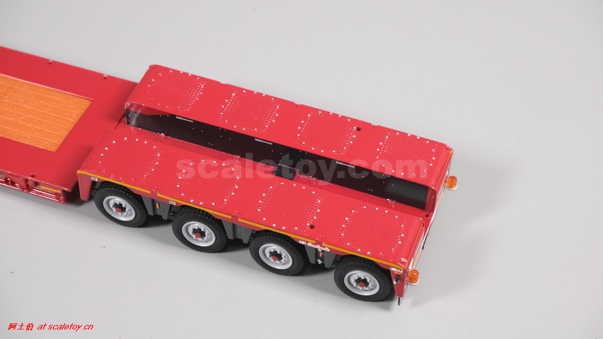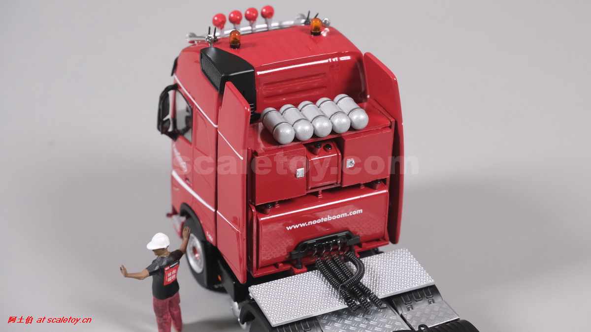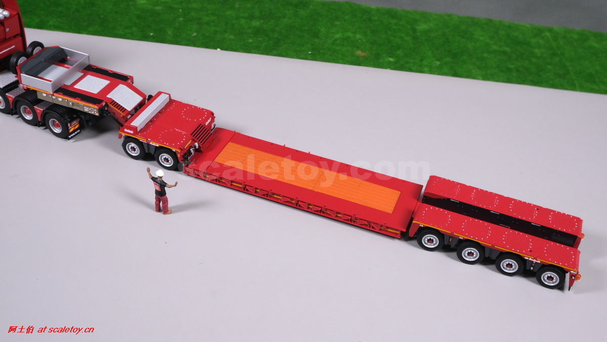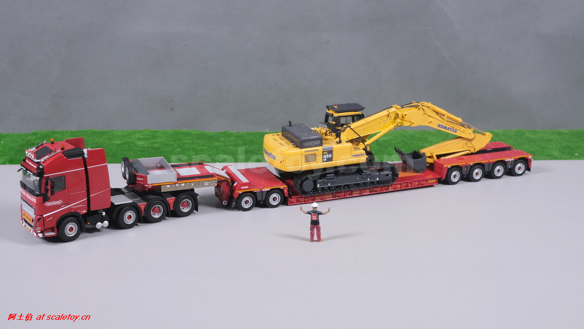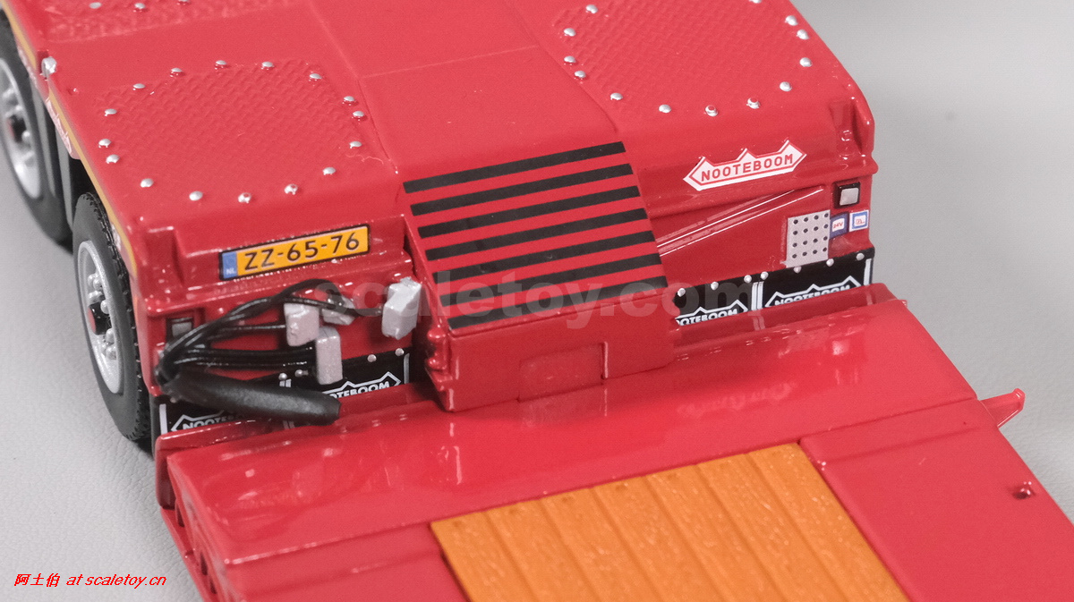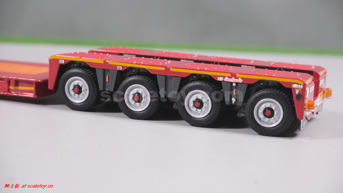 今天介绍的模型也是WSI的Nooteboom Red Line系列,一台沃尔沃的FH5 GLOBETROTTER XL 8X4拖头,挂NOOTEBOOM的4轴低板,配两轴interdolly。