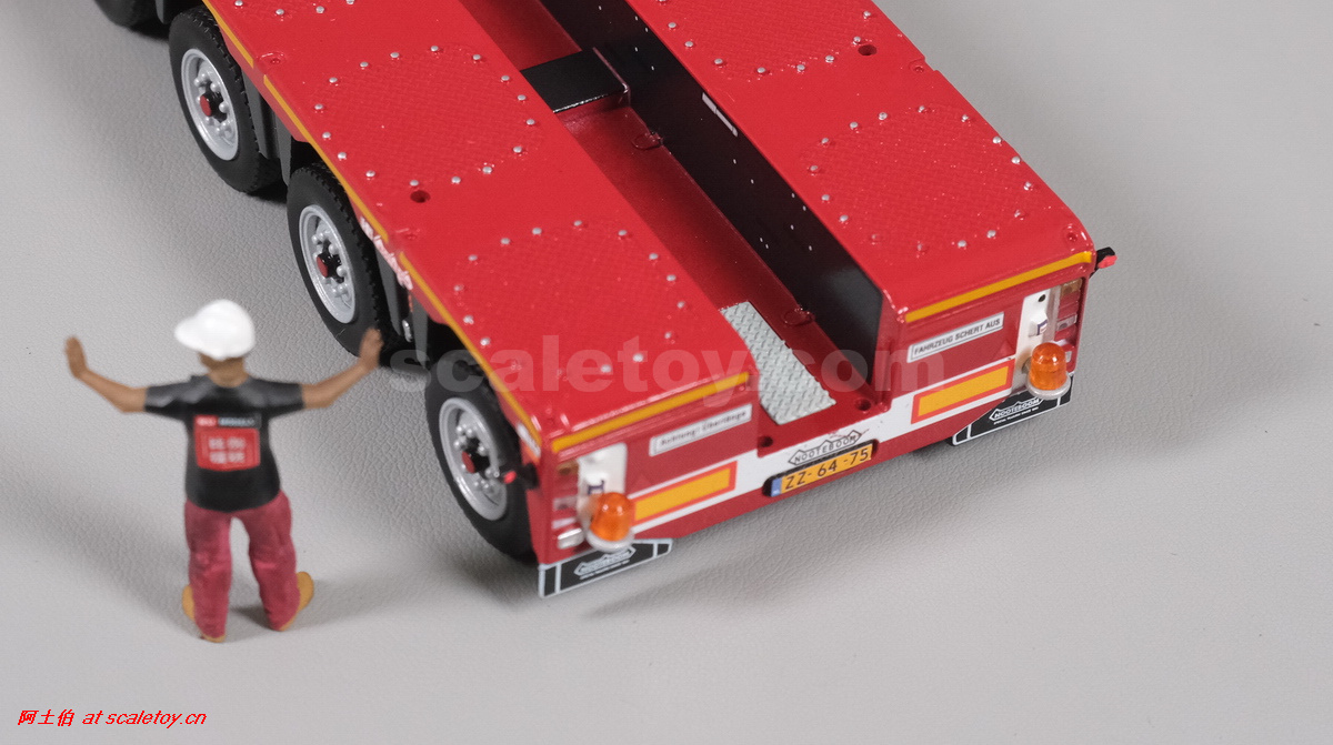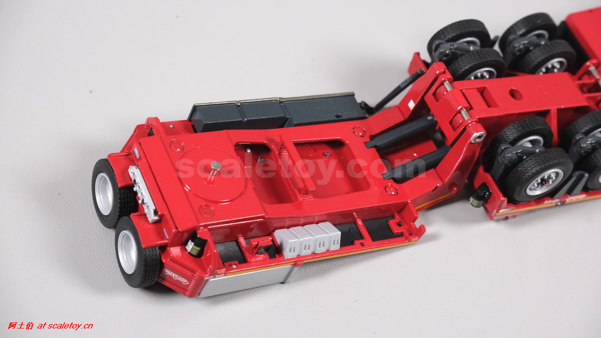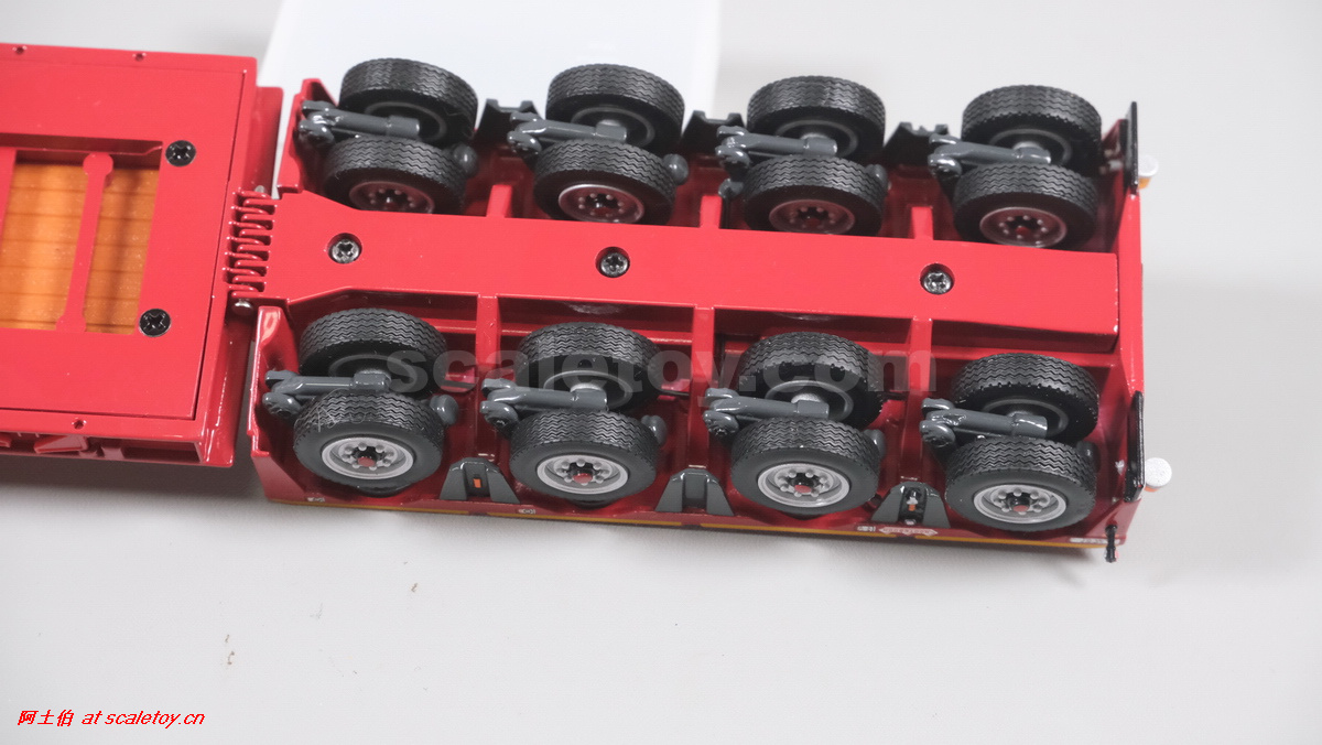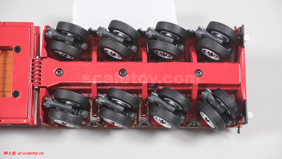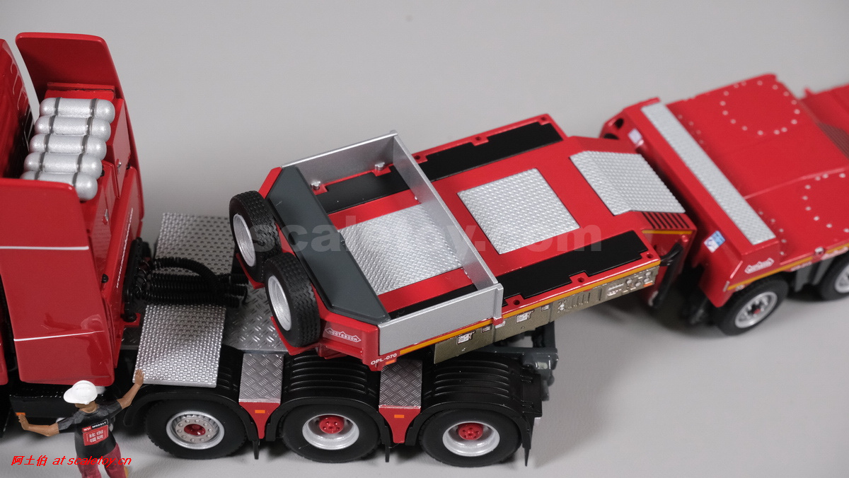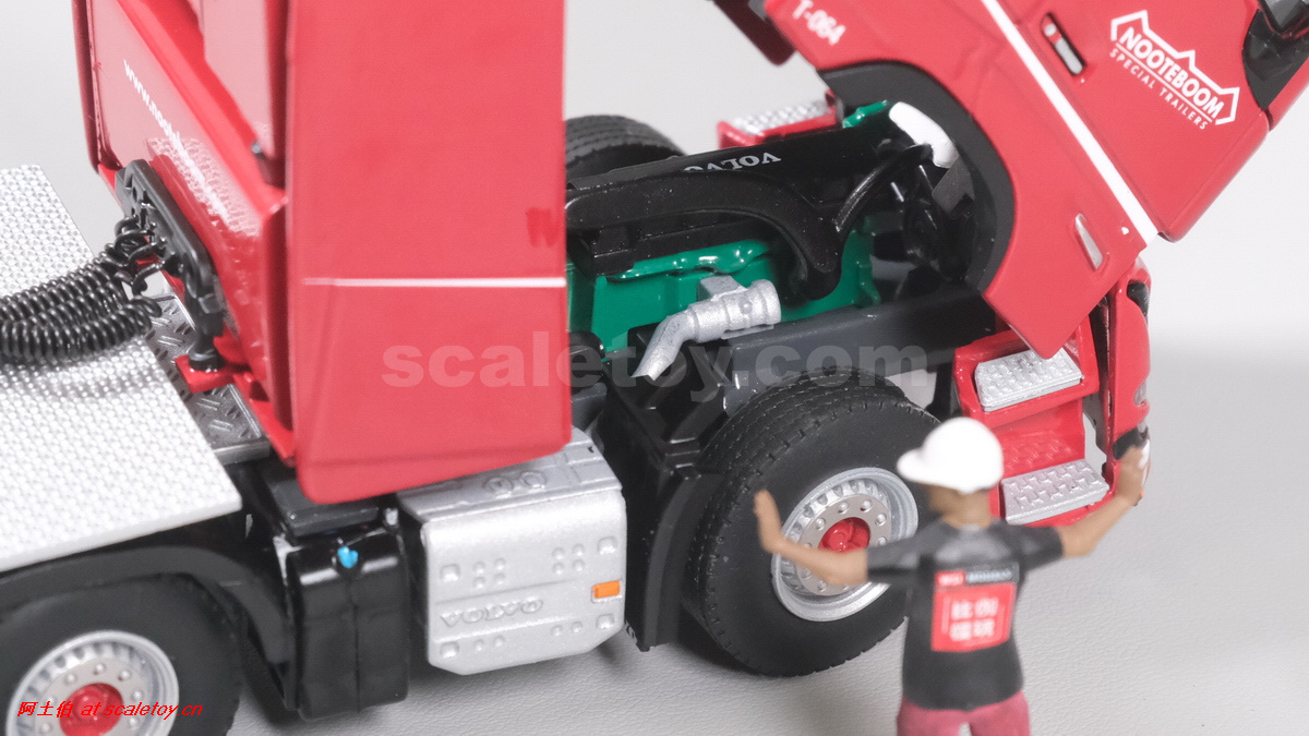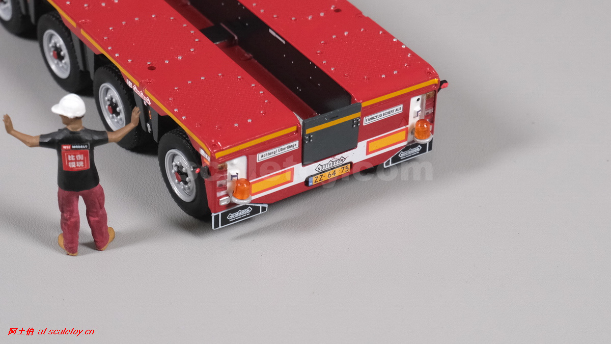 今天介绍的模型也是WSI的Nooteboom Red Line系列,一台沃尔沃的FH5 GLOBETROTTER XL 8X4拖头,挂NOOTEBOOM的4轴低板,配两轴interdolly。