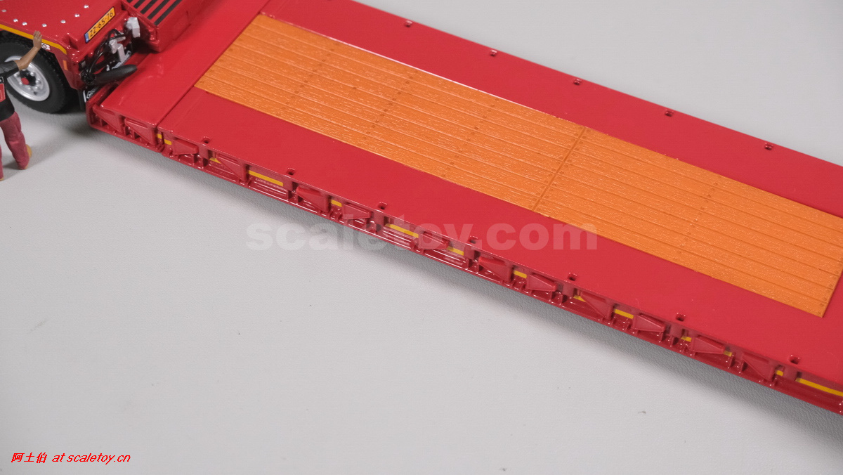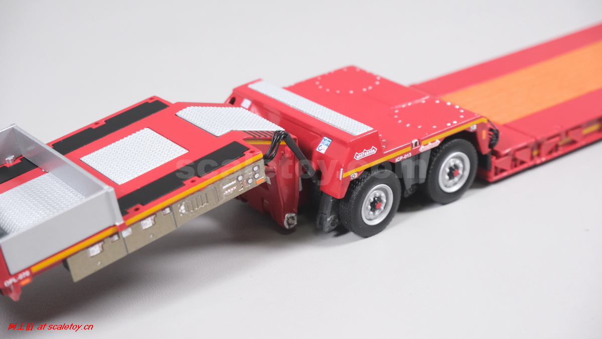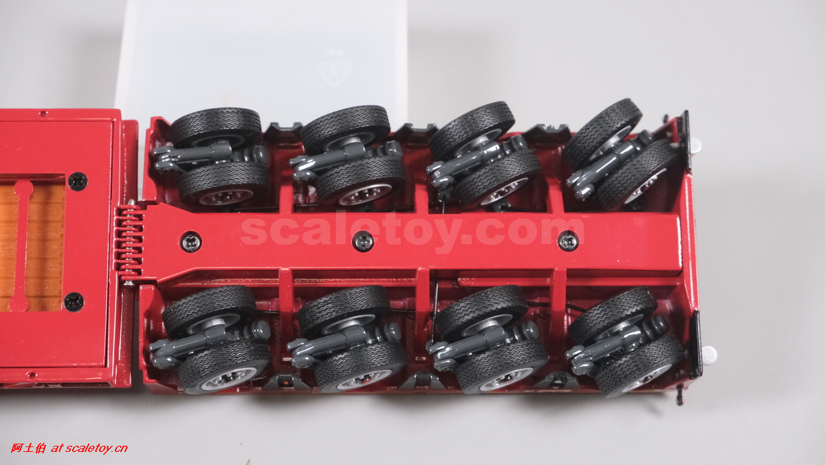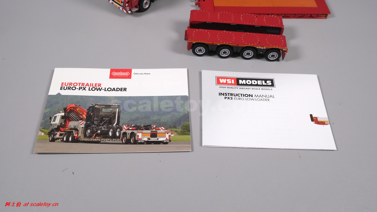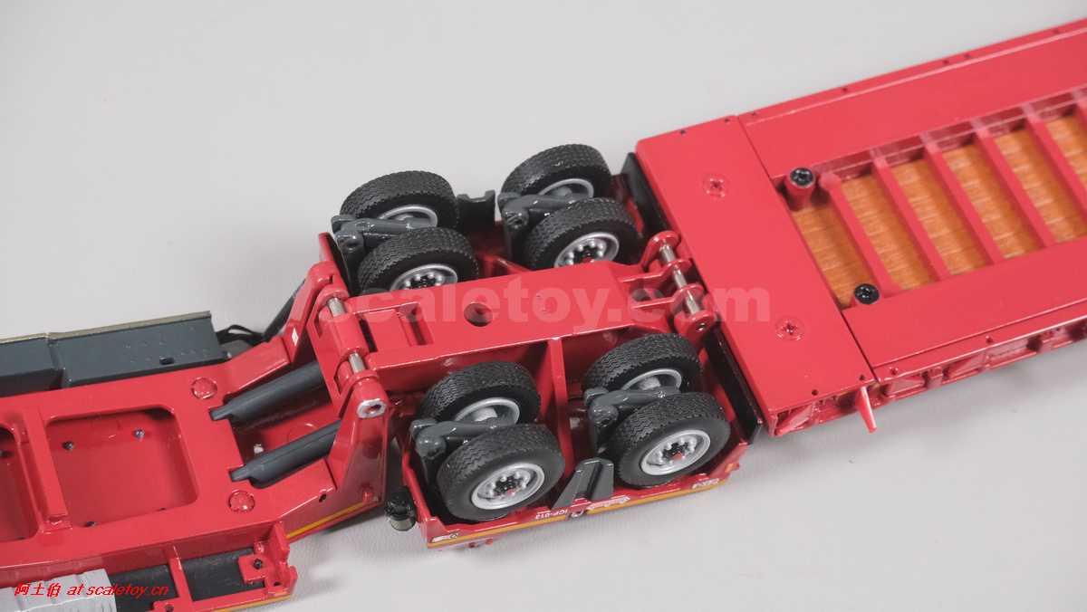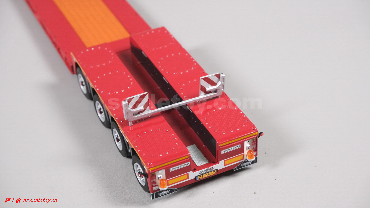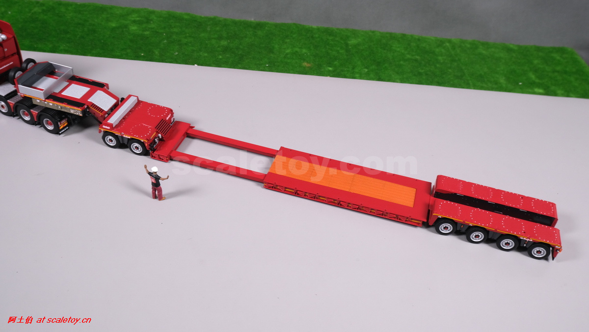 今天介绍的模型也是WSI的Nooteboom Red Line系列,一台沃尔沃的FH5 GLOBETROTTER XL 8X4拖头,挂NOOTEBOOM的4轴低板,配两轴interdolly。