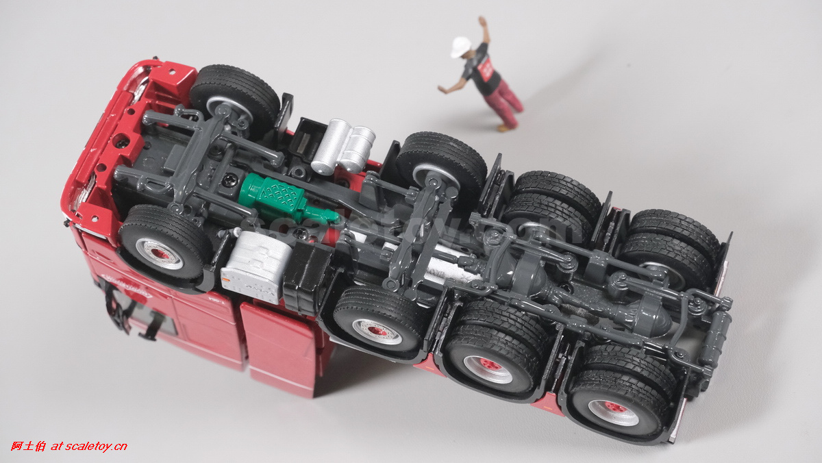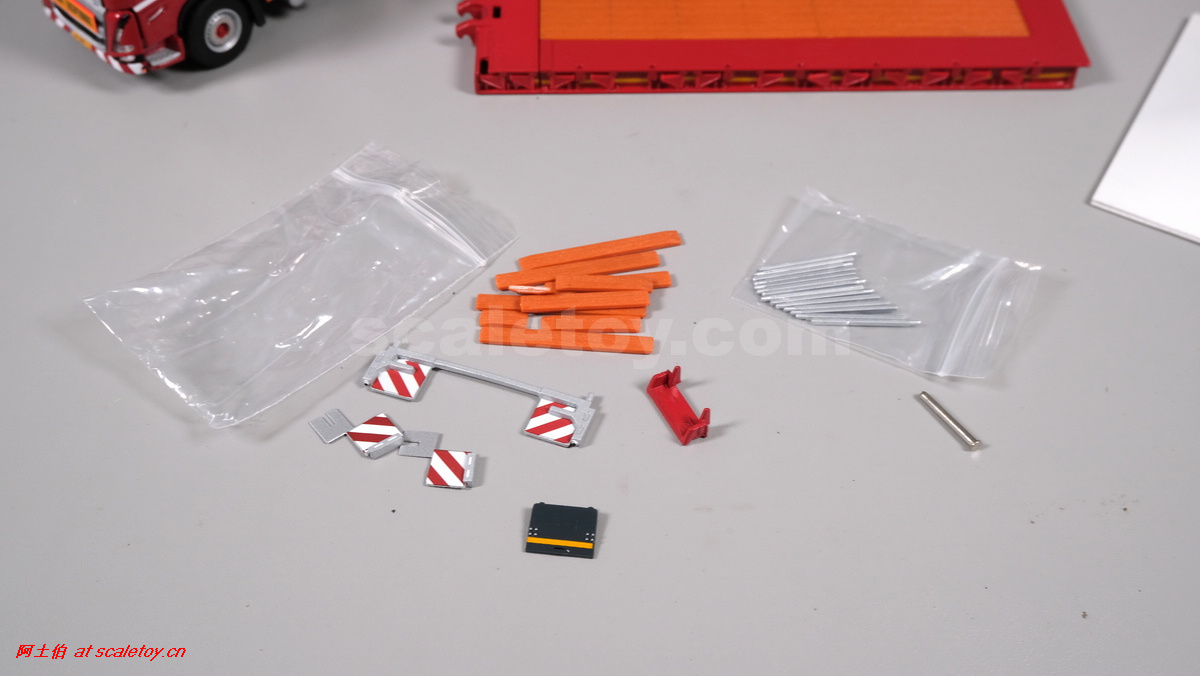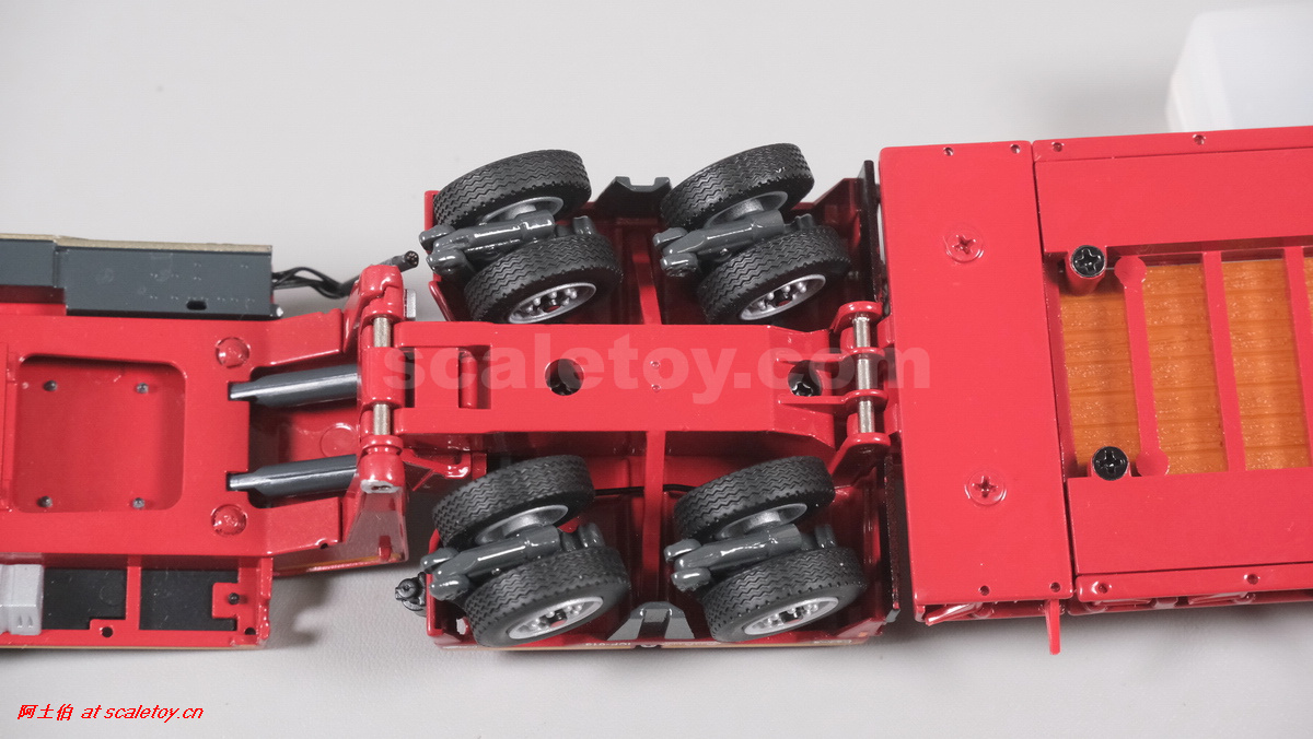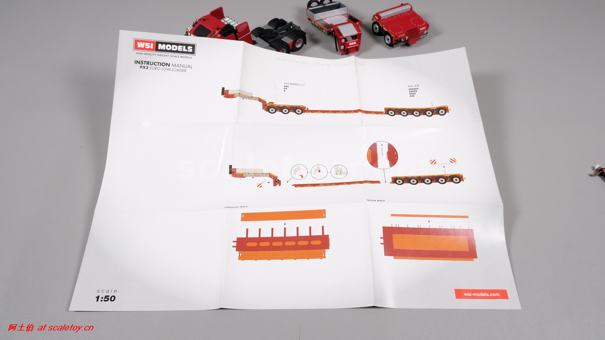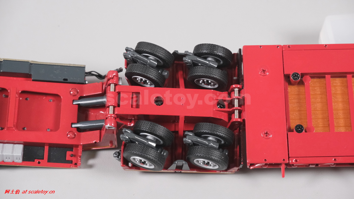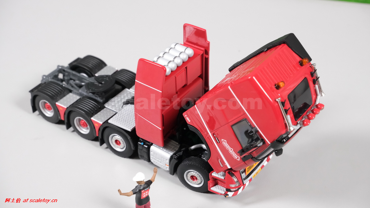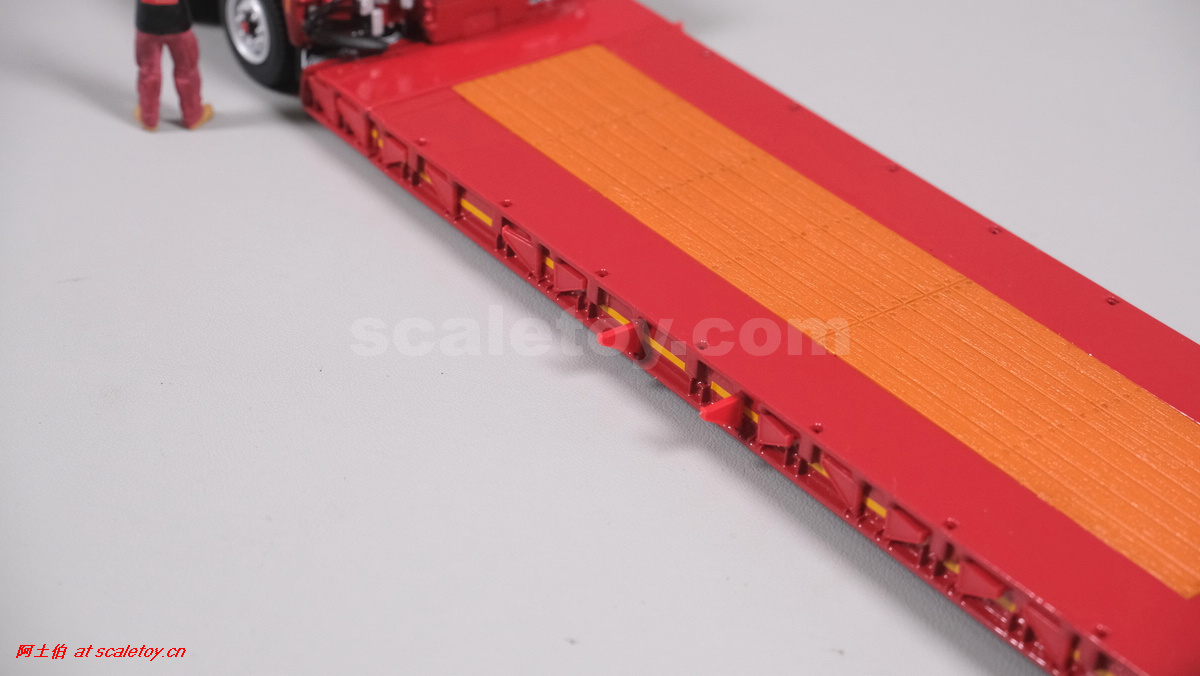 今天介绍的模型也是WSI的Nooteboom Red Line系列,一台沃尔沃的FH5 GLOBETROTTER XL 8X4拖头,挂NOOTEBOOM的4轴低板,配两轴interdolly。