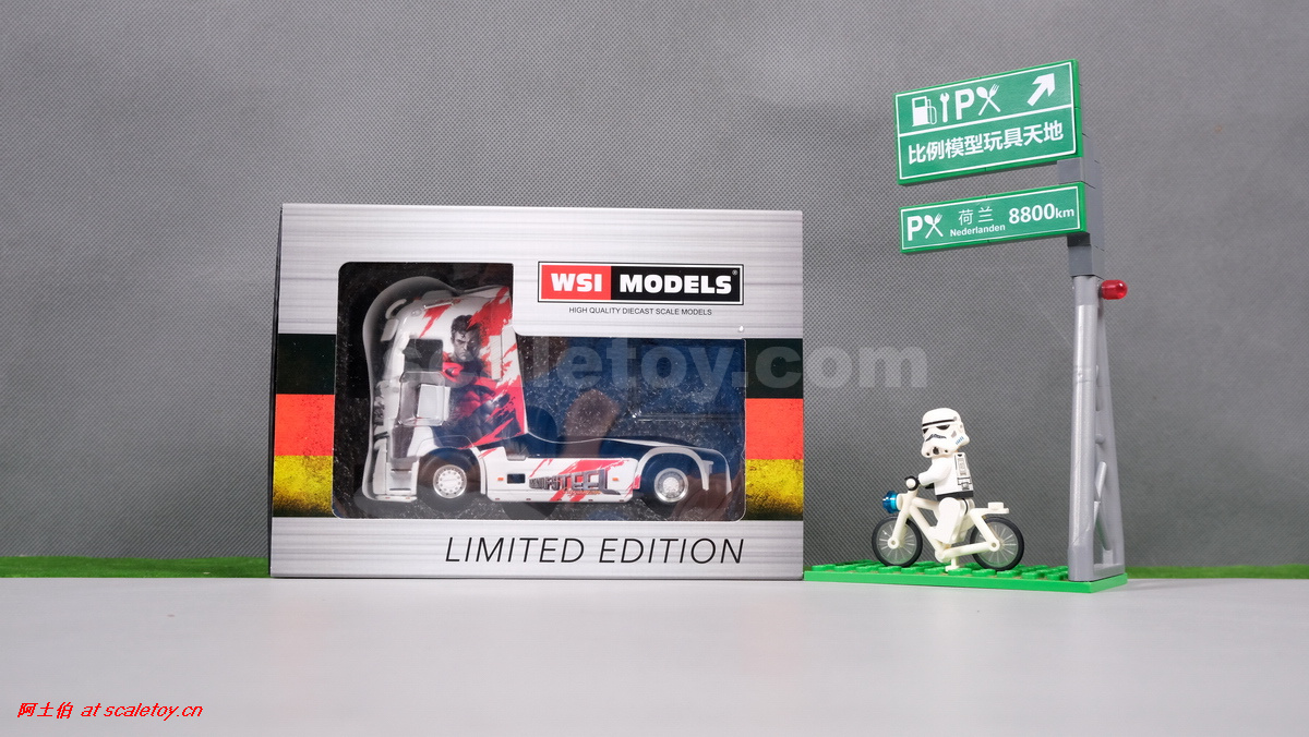这款模型属于WSI的德国SUPER TRUCK系列,因此外包装也是德国国旗配色盒。模型编号01-4688,比例1/50: