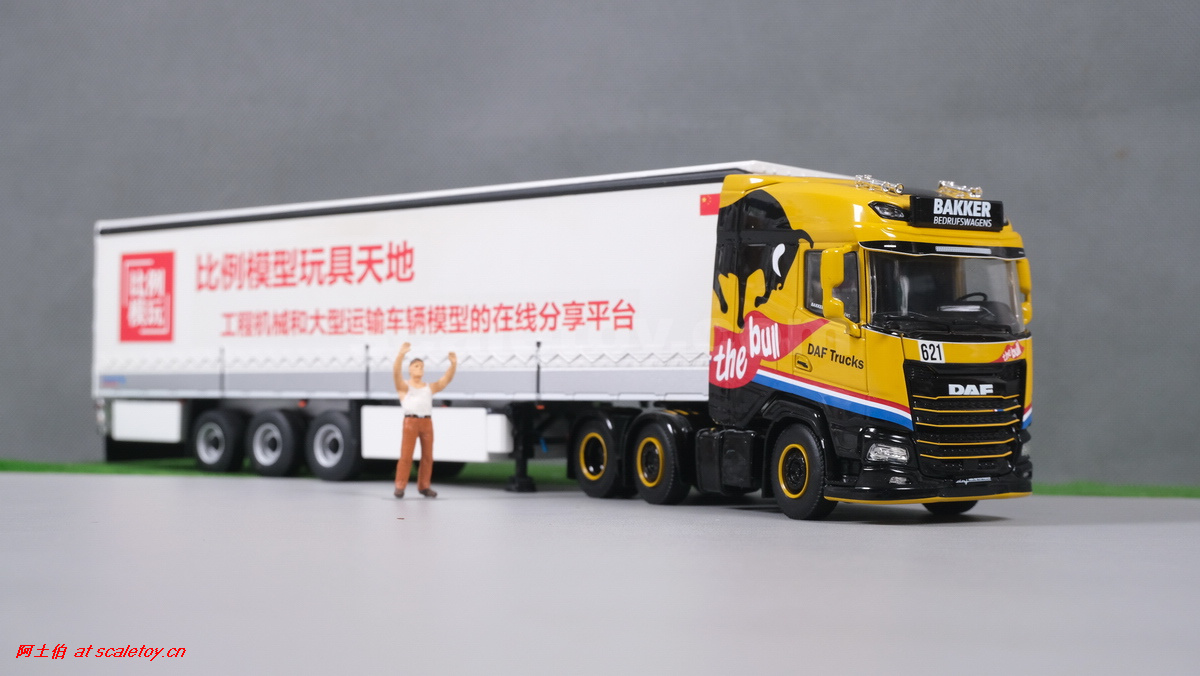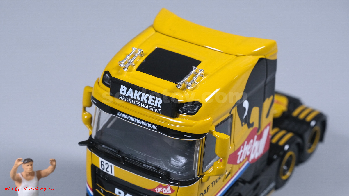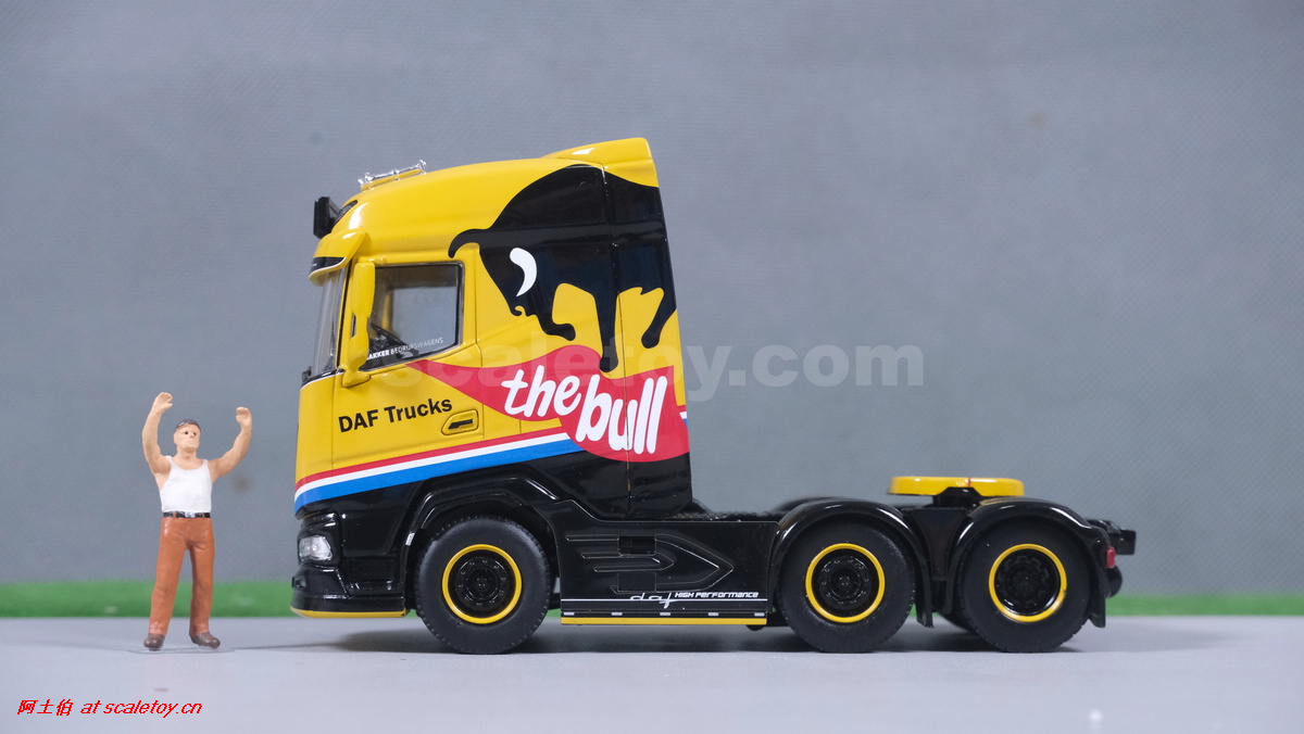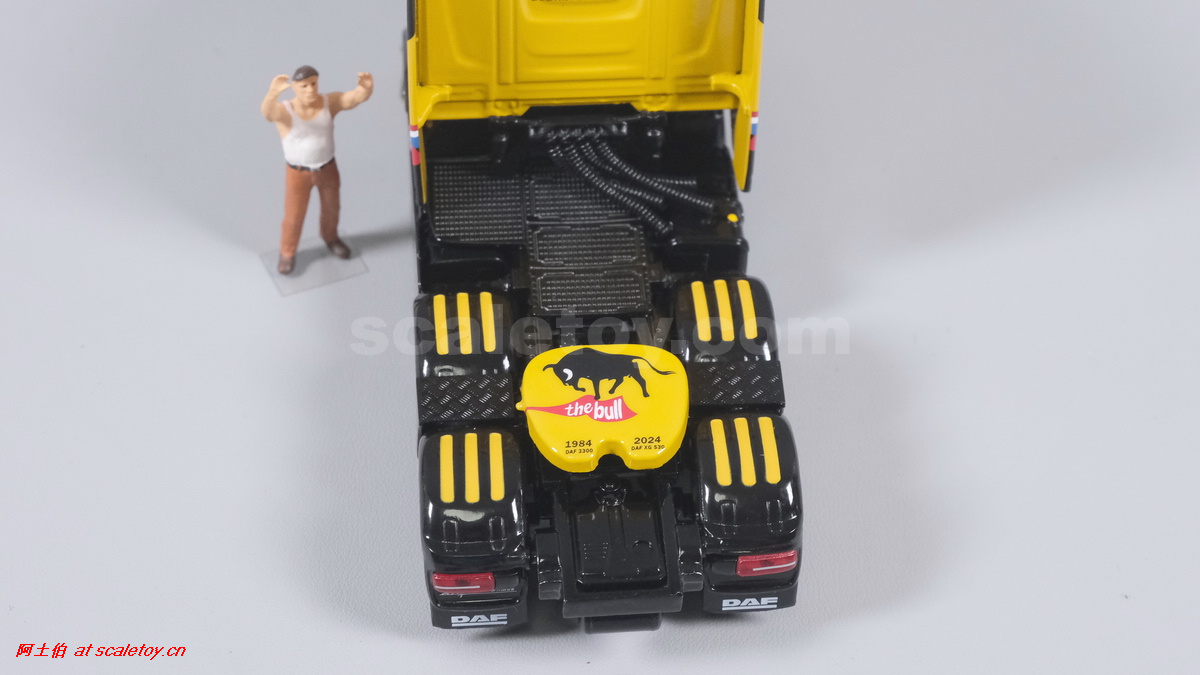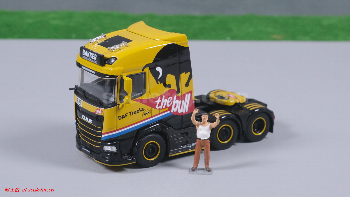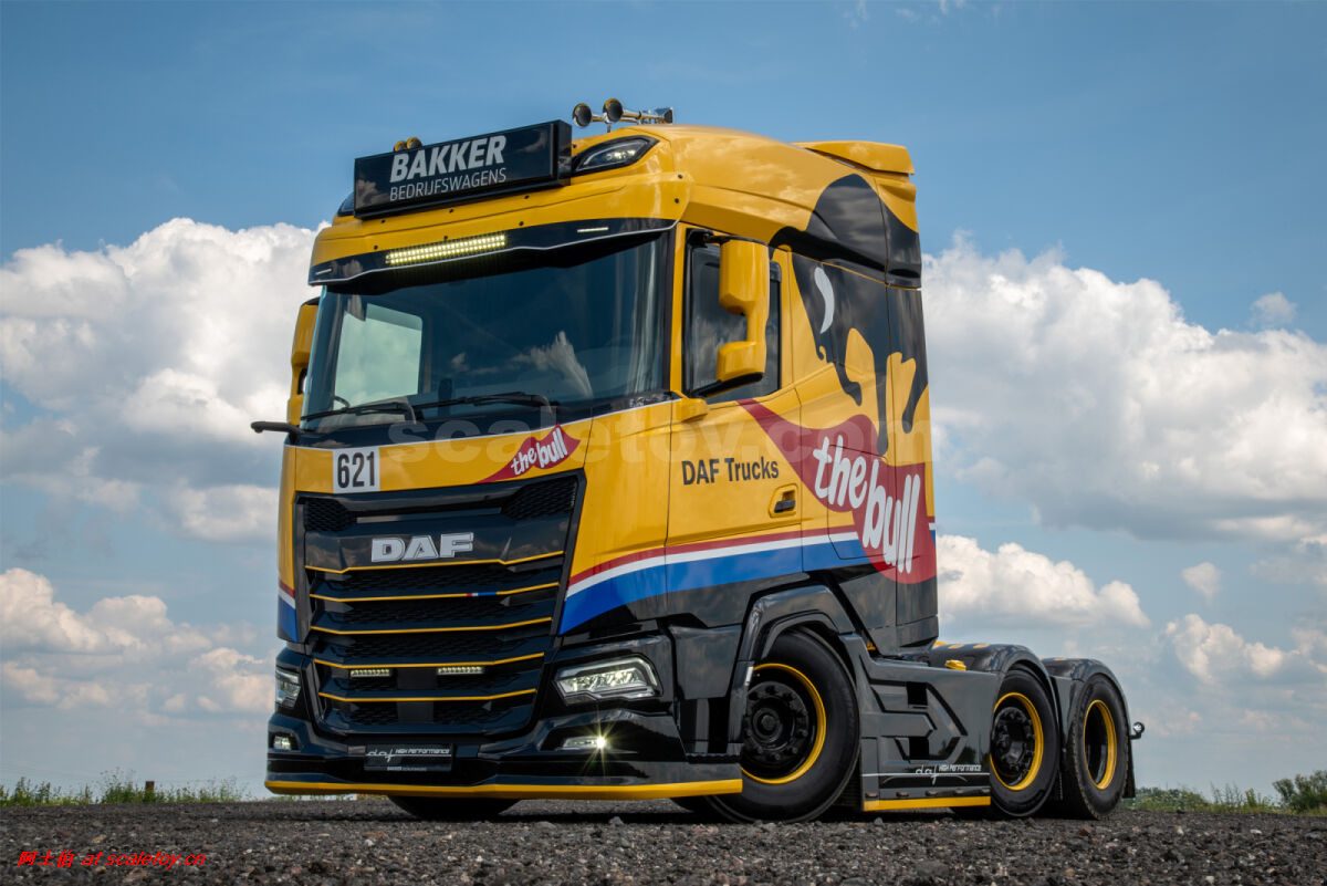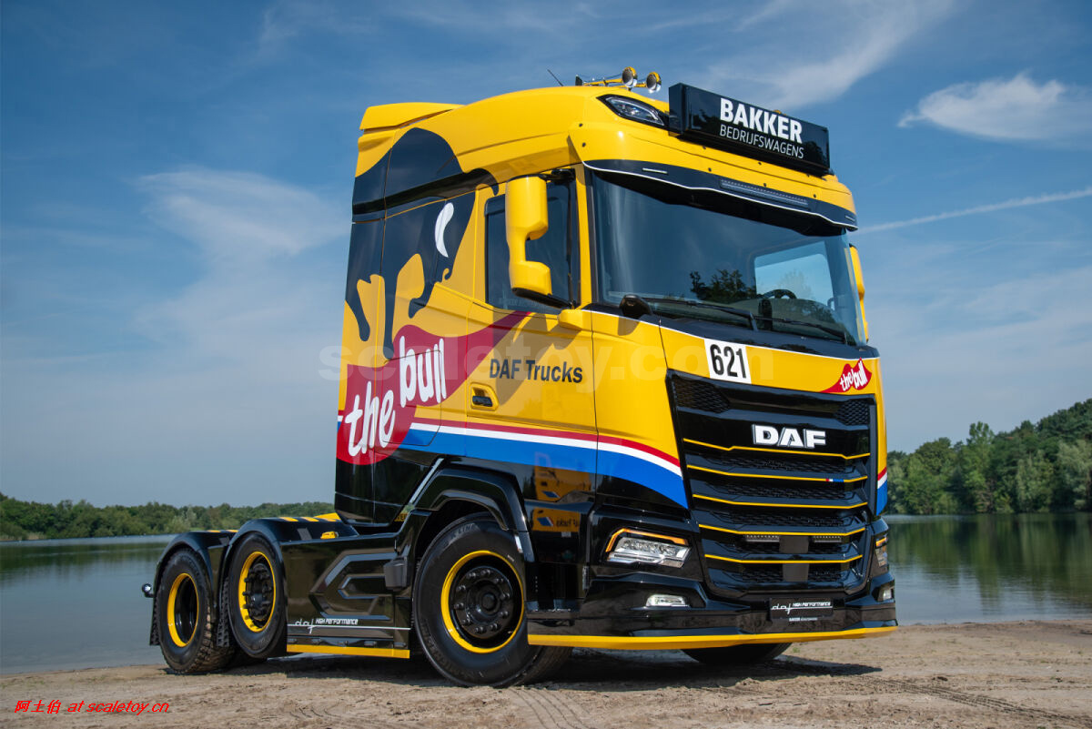 在2025年7月26日到27日的荷兰TRUCKSTAR卡车节上,Bakker Bedrijfswagens展示了这台黄底色公牛涂装的DAF卡车,并通过抽奖赠送出了这台卡车的比例模型。