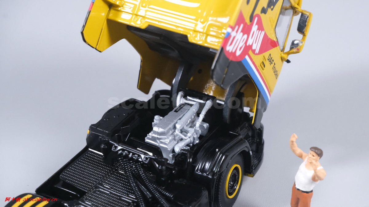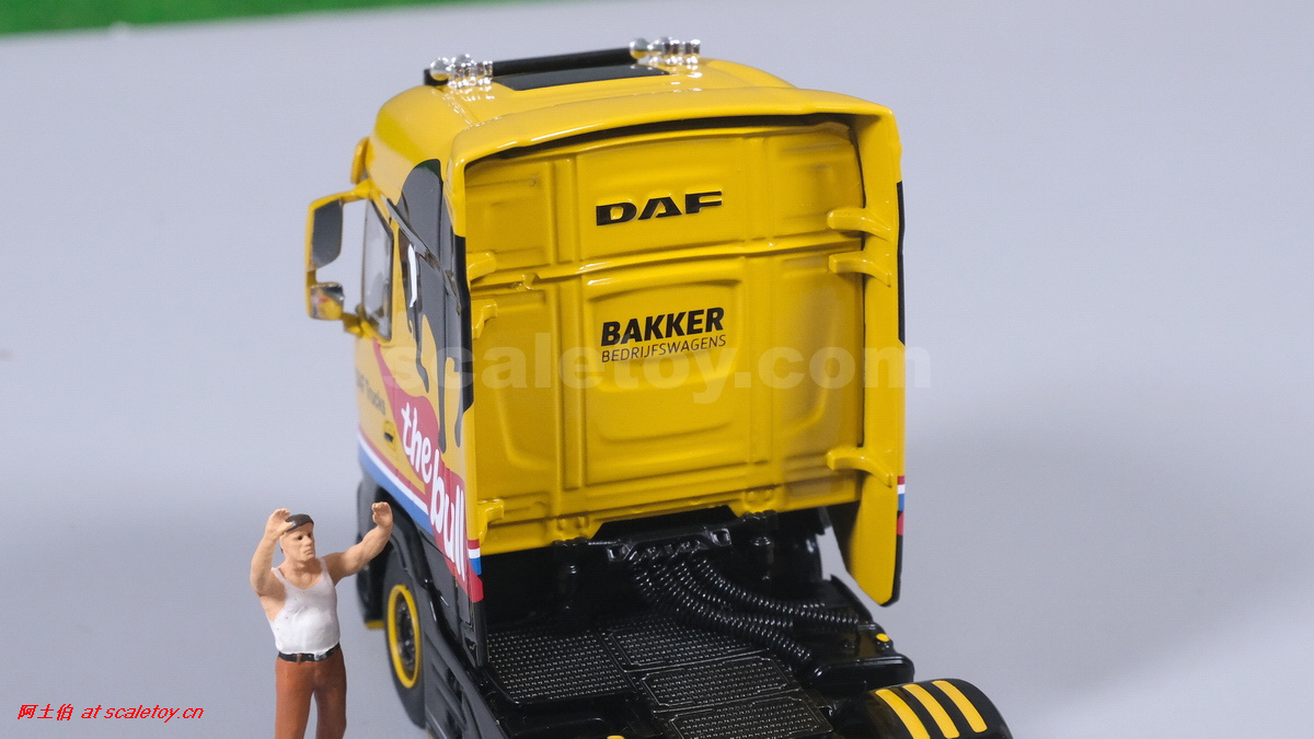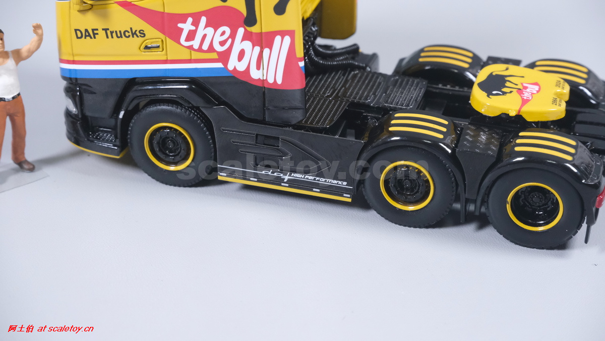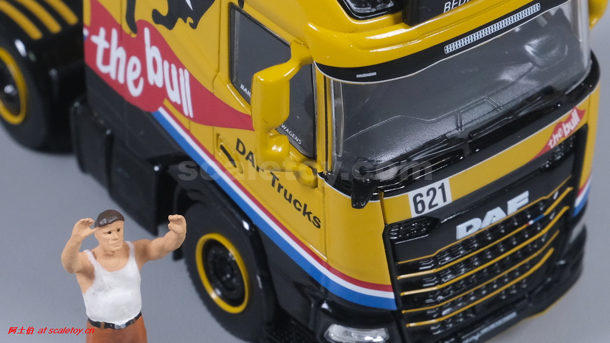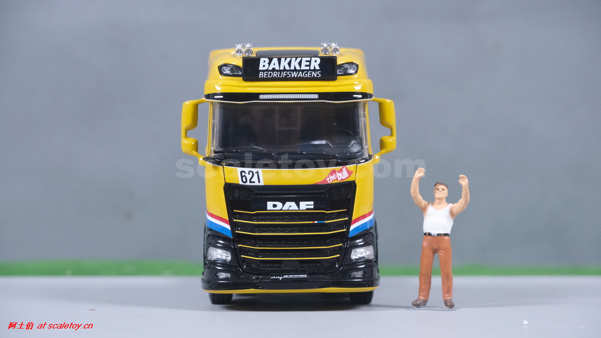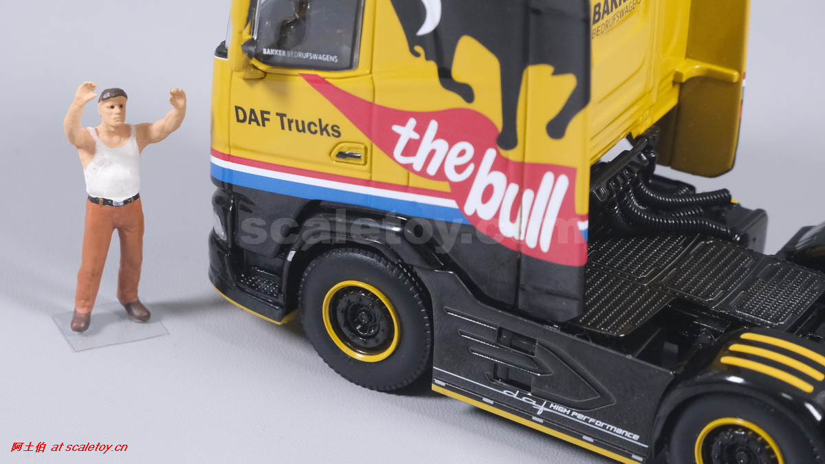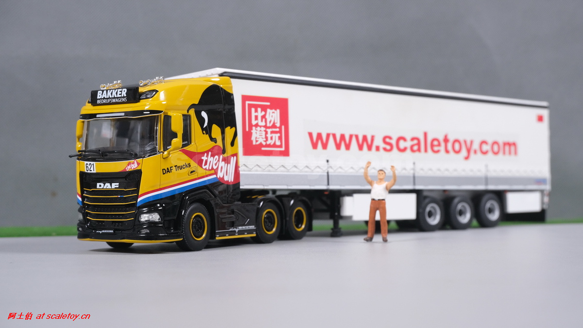 在2025年7月26日到27日的荷兰TRUCKSTAR卡车节上,Bakker Bedrijfswagens展示了这台黄底色公牛涂装的DAF卡车,并通过抽奖赠送出了这台卡车的比例模型。