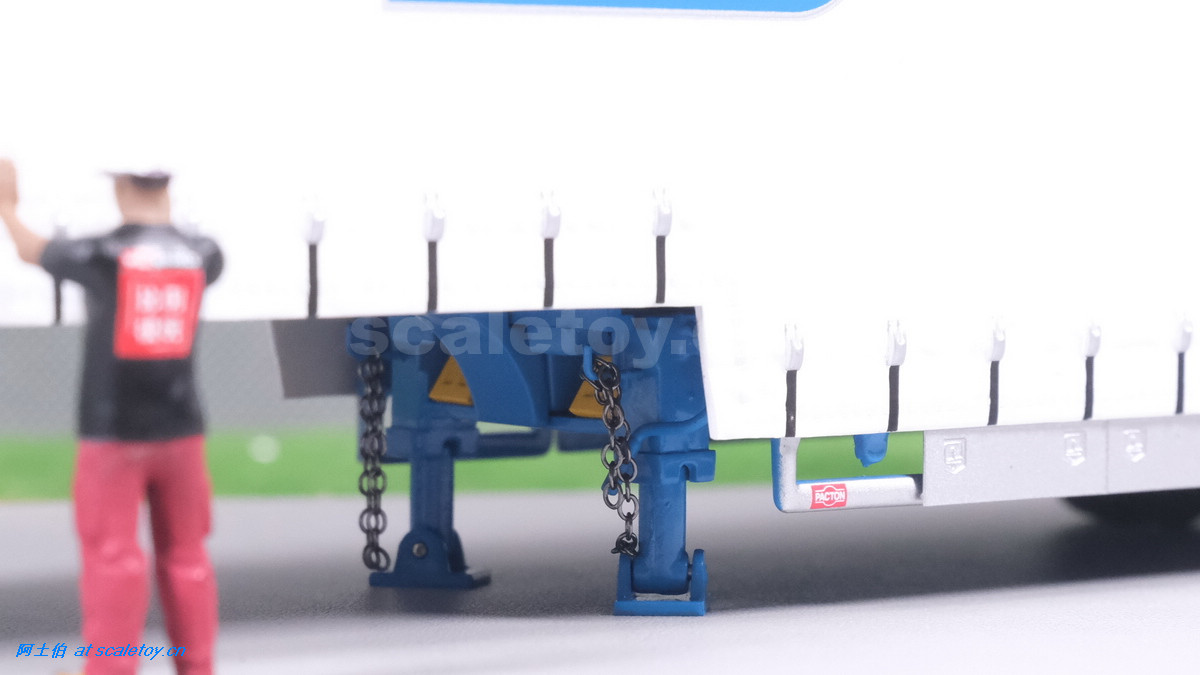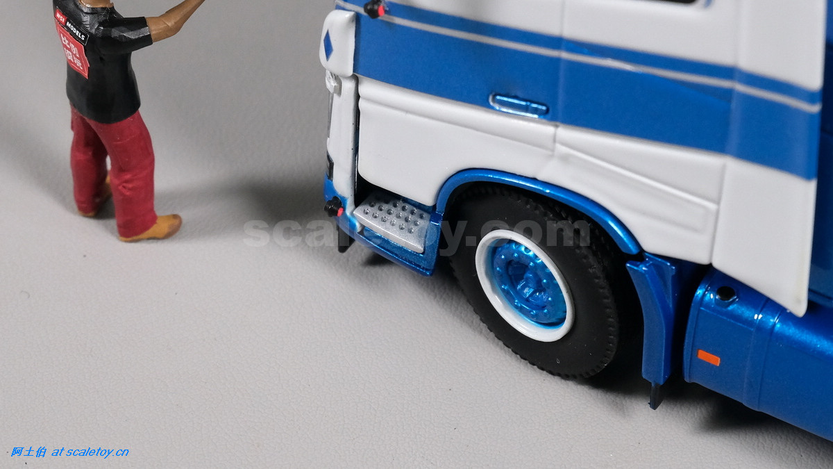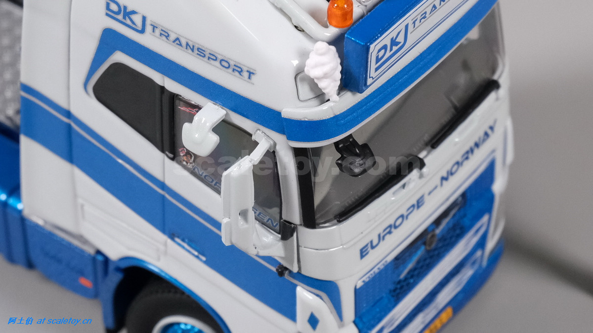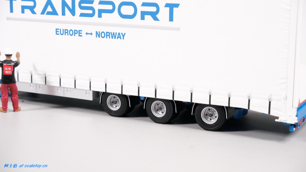 WSI制作了公司两款侧帘半挂车模型,分别是01-4555的沃尔沃拖头,和01-4556的达夫拖头