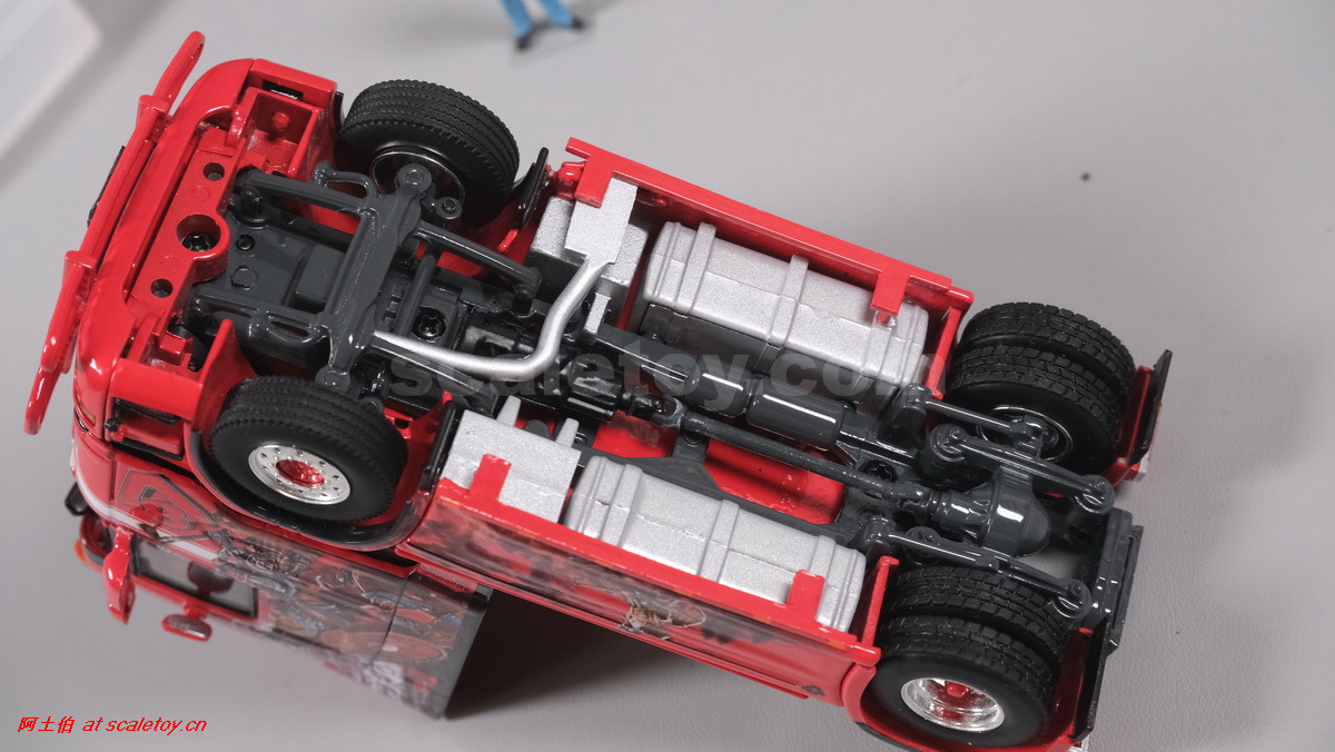 底盘,可以看到左右侧其实是大油箱。前轴转向联动