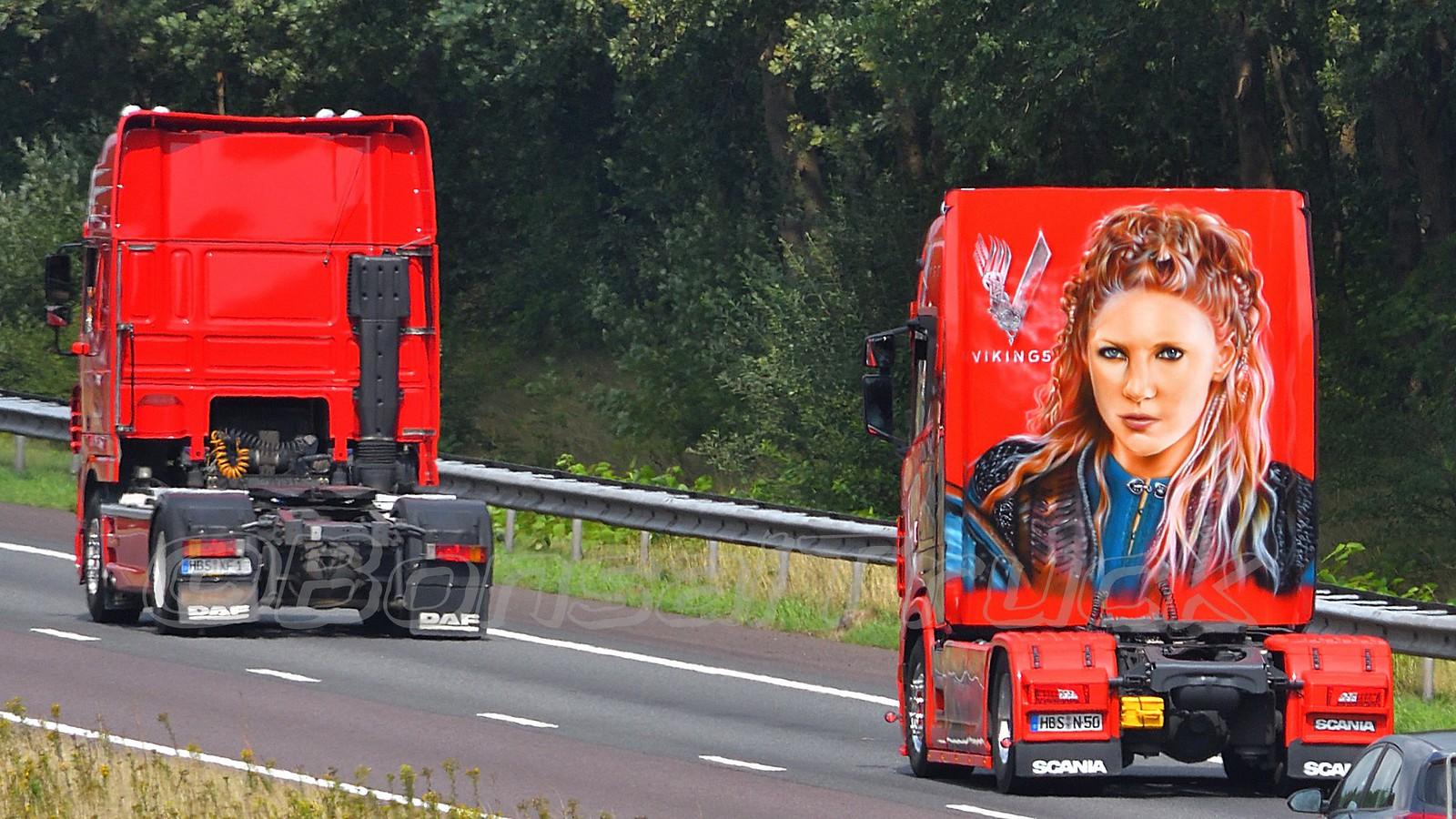 介绍一款彩绘拖头,Jens Naujok的斯堪尼亚STREAMLINE HIGHLINE 4X2。彩绘有可能是维京海盗吧。