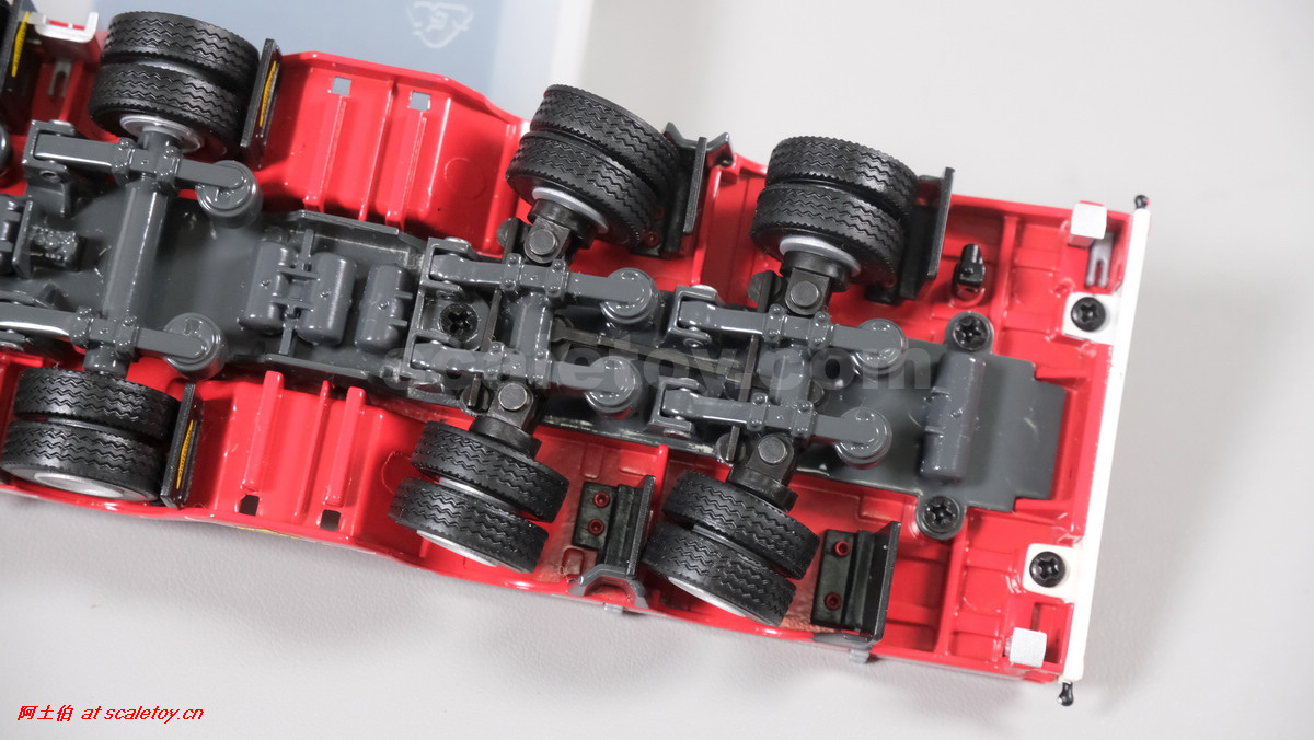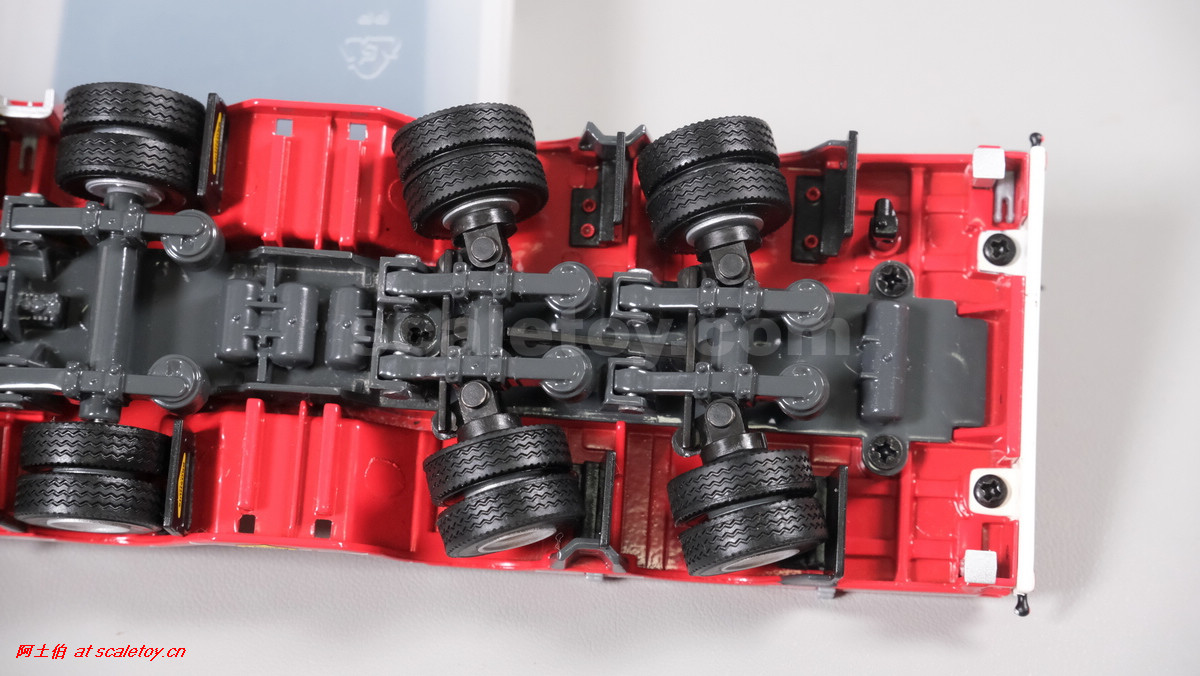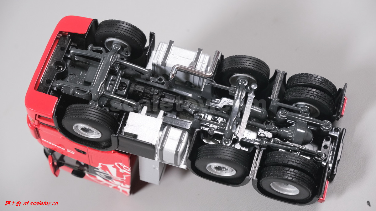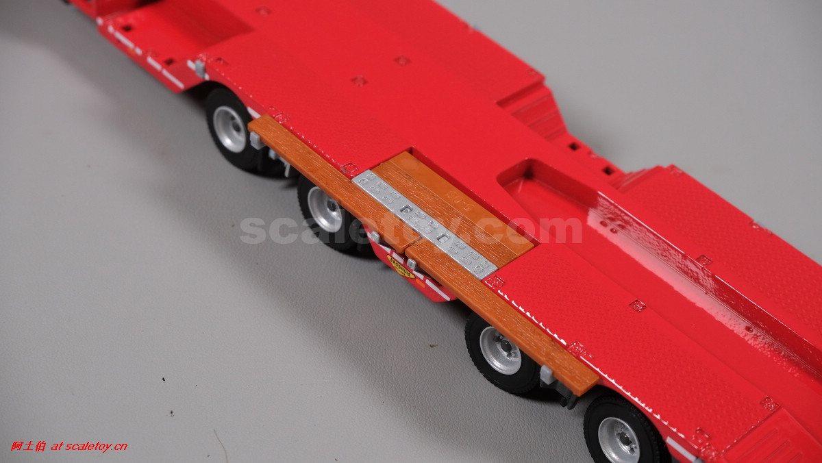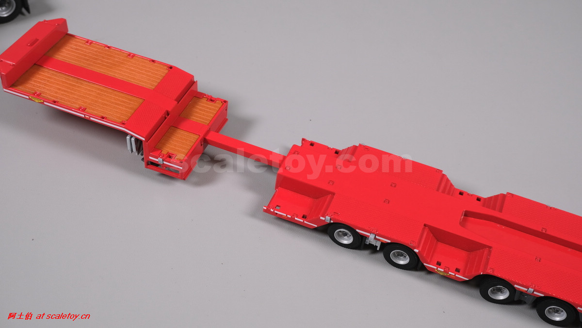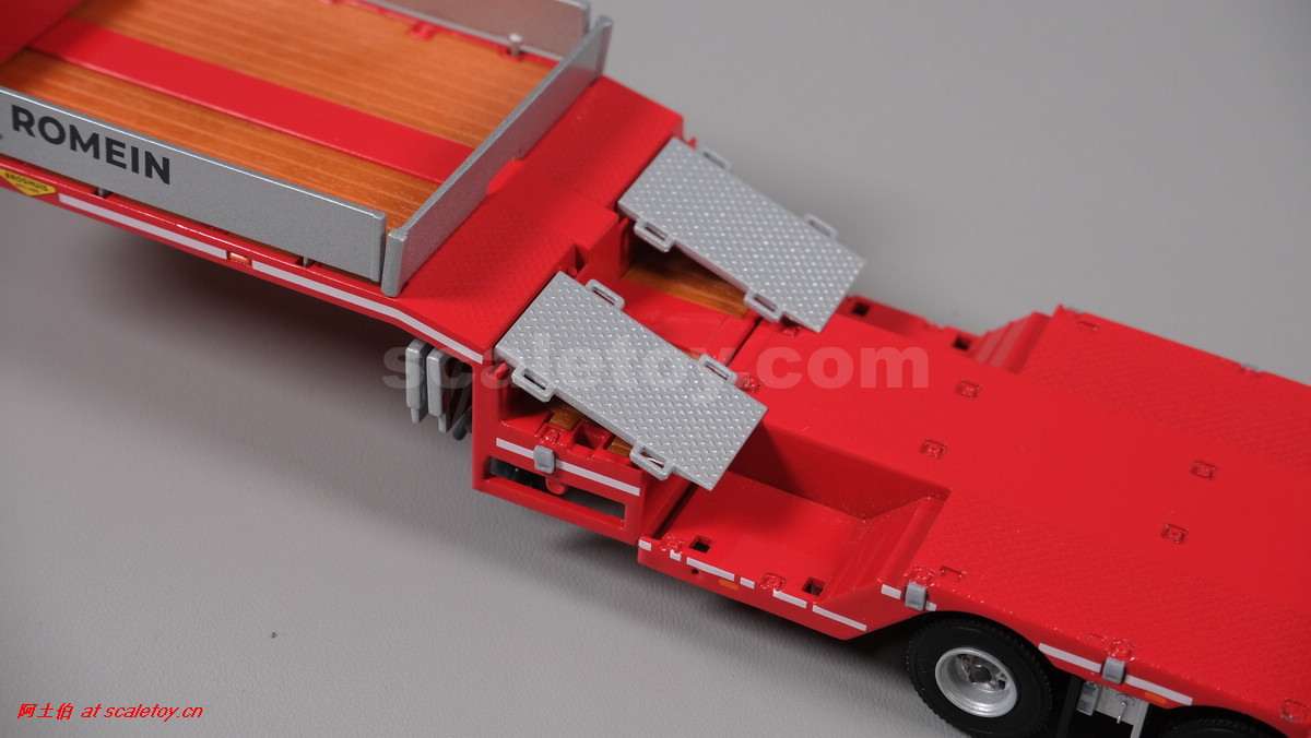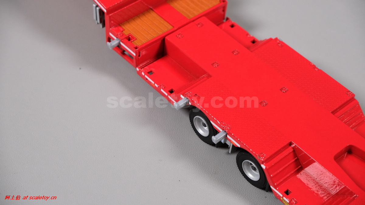 先看这款De Romein Groep的,斯堪尼亚 S系HIGHLINE CS20H 6X2 TWIN STEER拖头,BROSHUIS四轴轮井半低拖板。 模型编号01-4719,比例1/50: