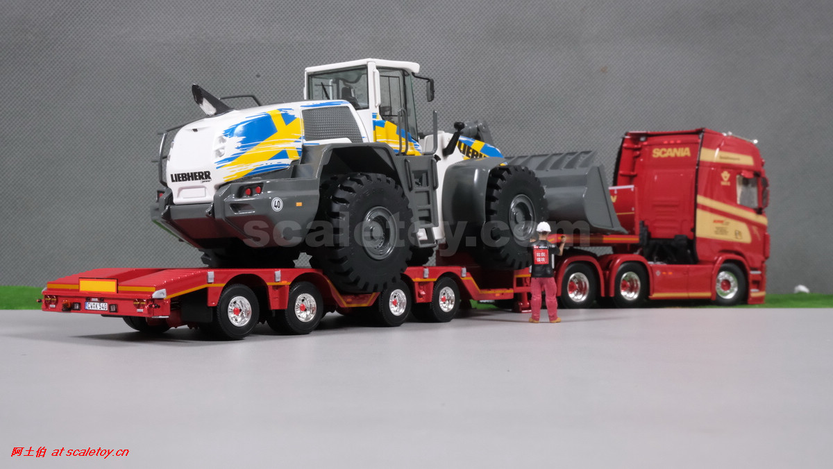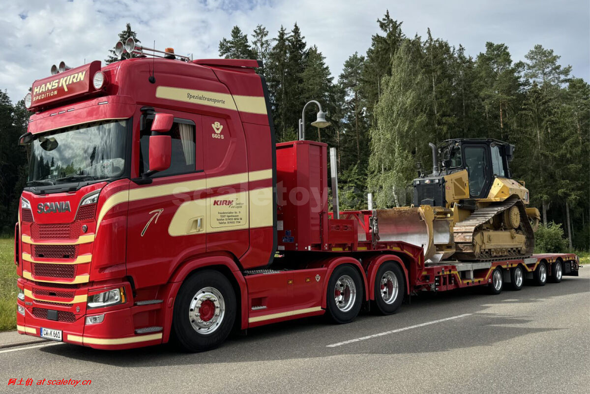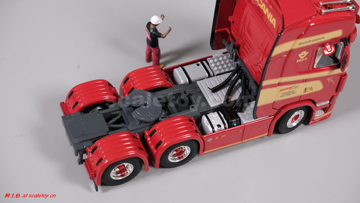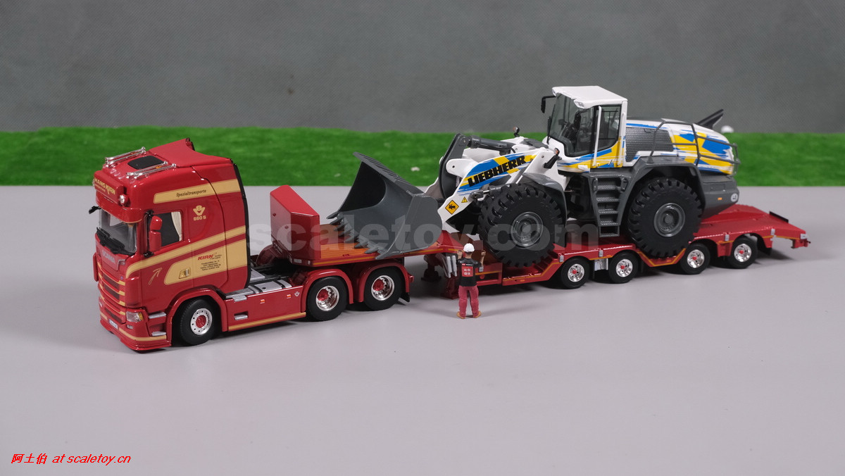 这是公司一台斯堪尼亚S系HIGHLINE CS20H 6X4拖头,挂BROSHUIS的四轴轮井半低板。