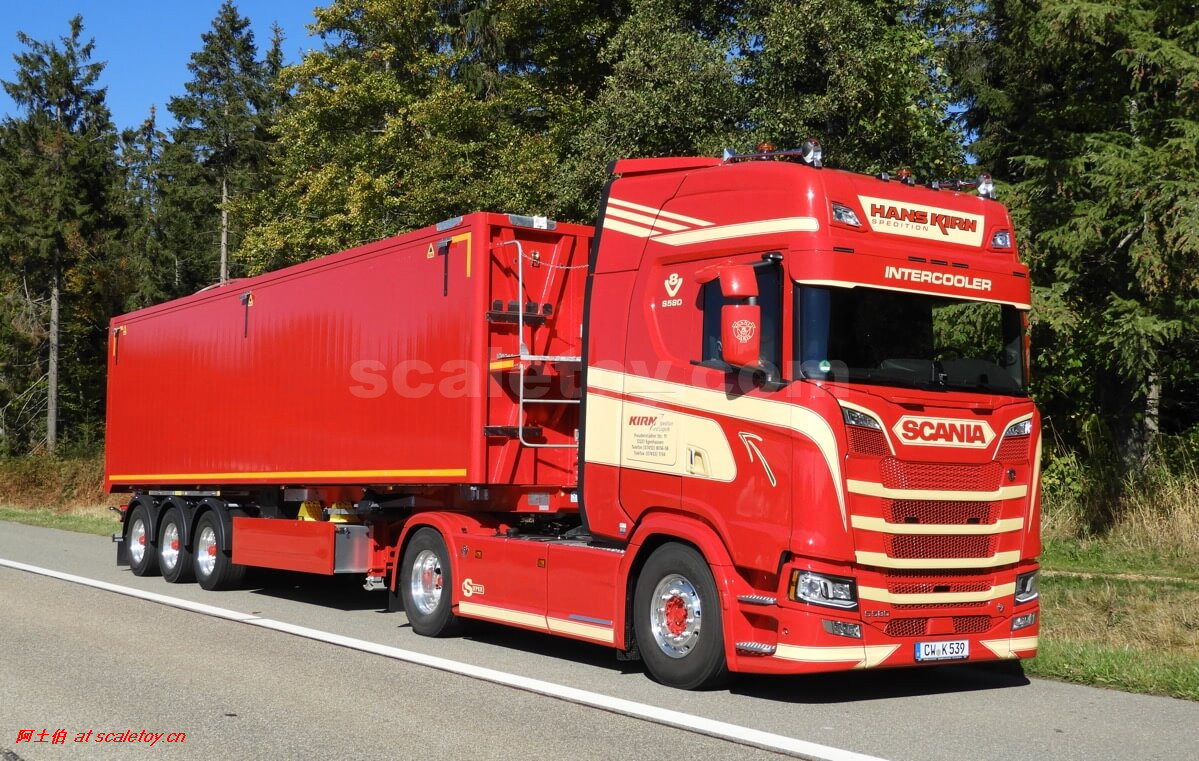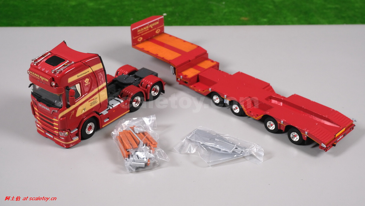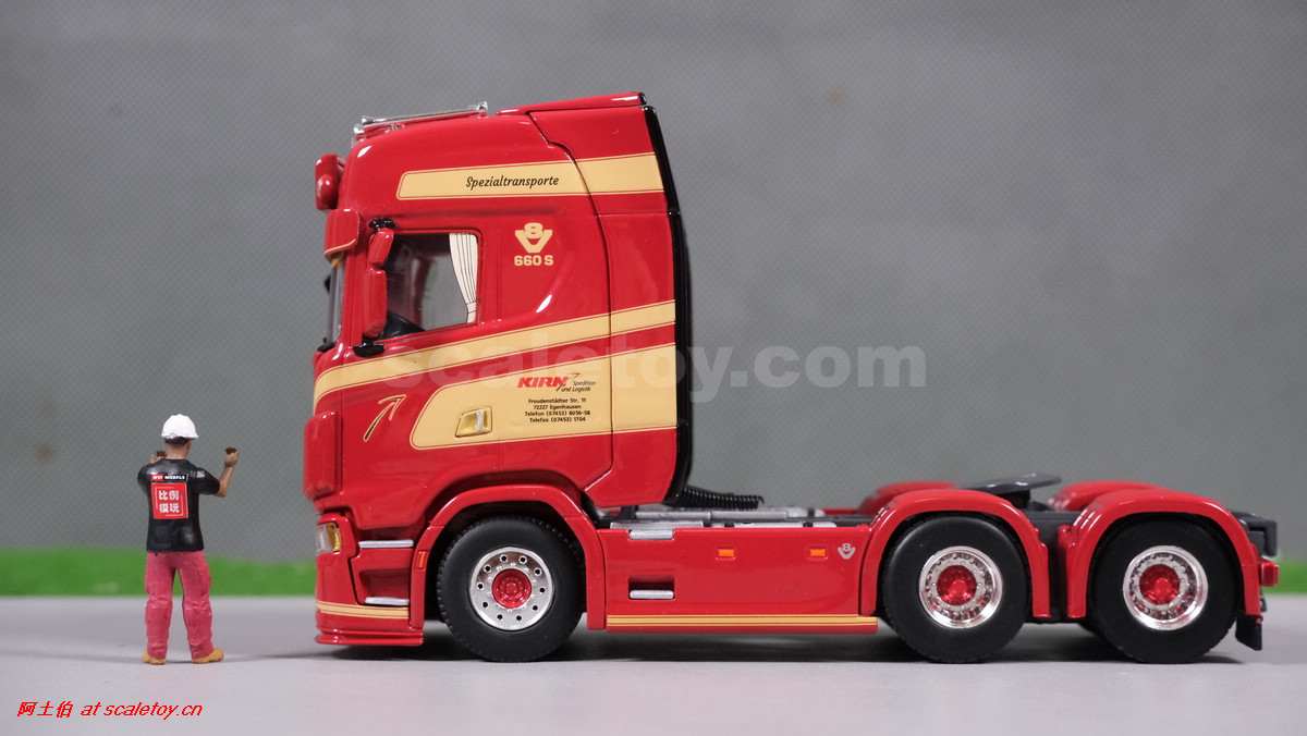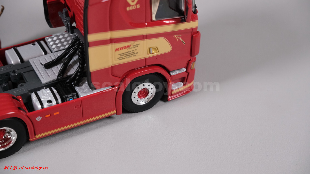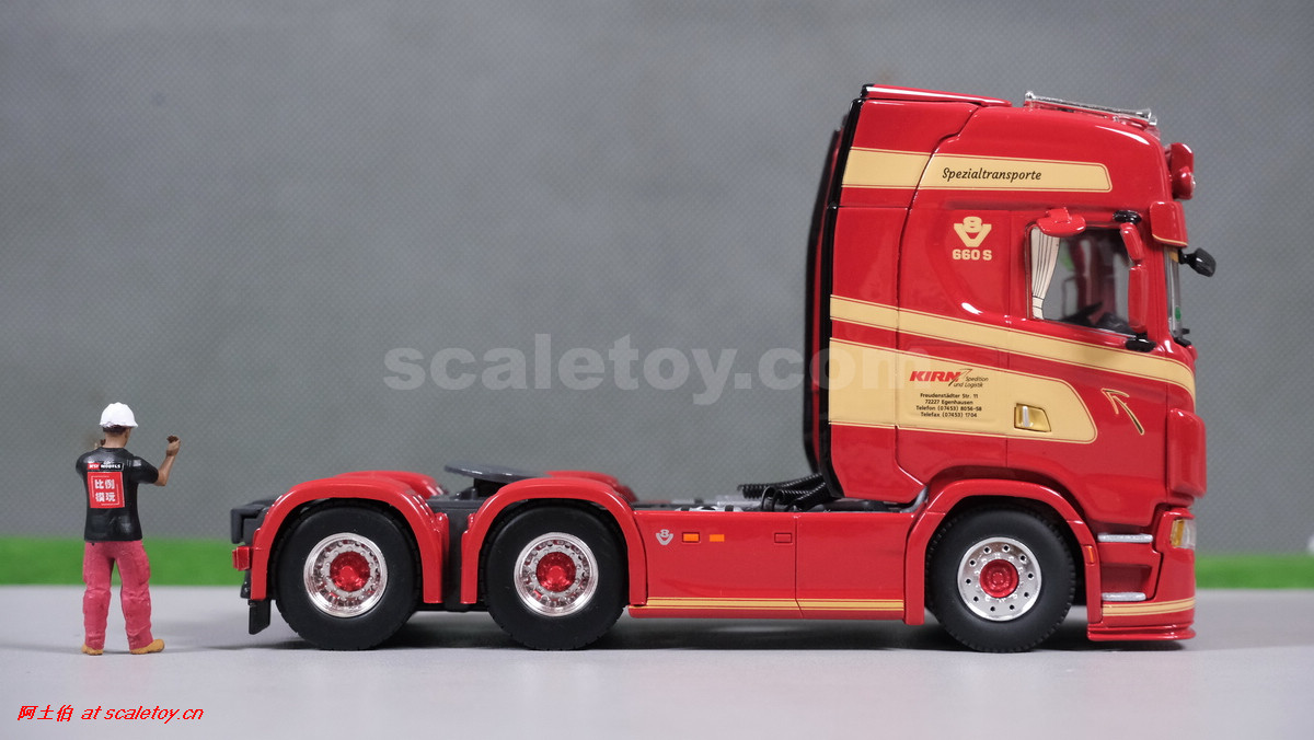这是公司一台斯堪尼亚S系HIGHLINE CS20H 6X4拖头,挂BROSHUIS的四轴轮井半低板。