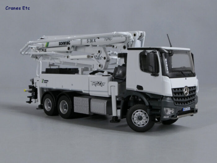 施维英 SCHWING-Stetter S 36 X RaZor 混凝土泵车垂直可达35.12米,水平可达30.8米,输出可以达到161立方米。车辆底盘是奔驰AROCS 6X4。
