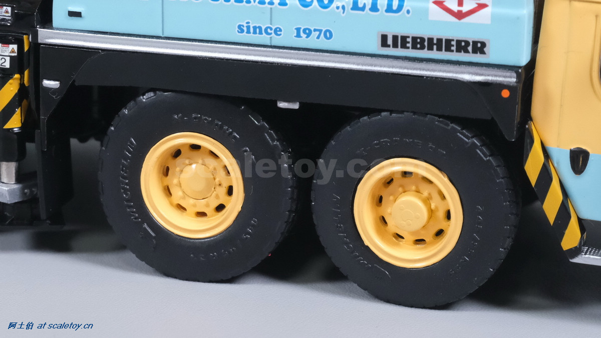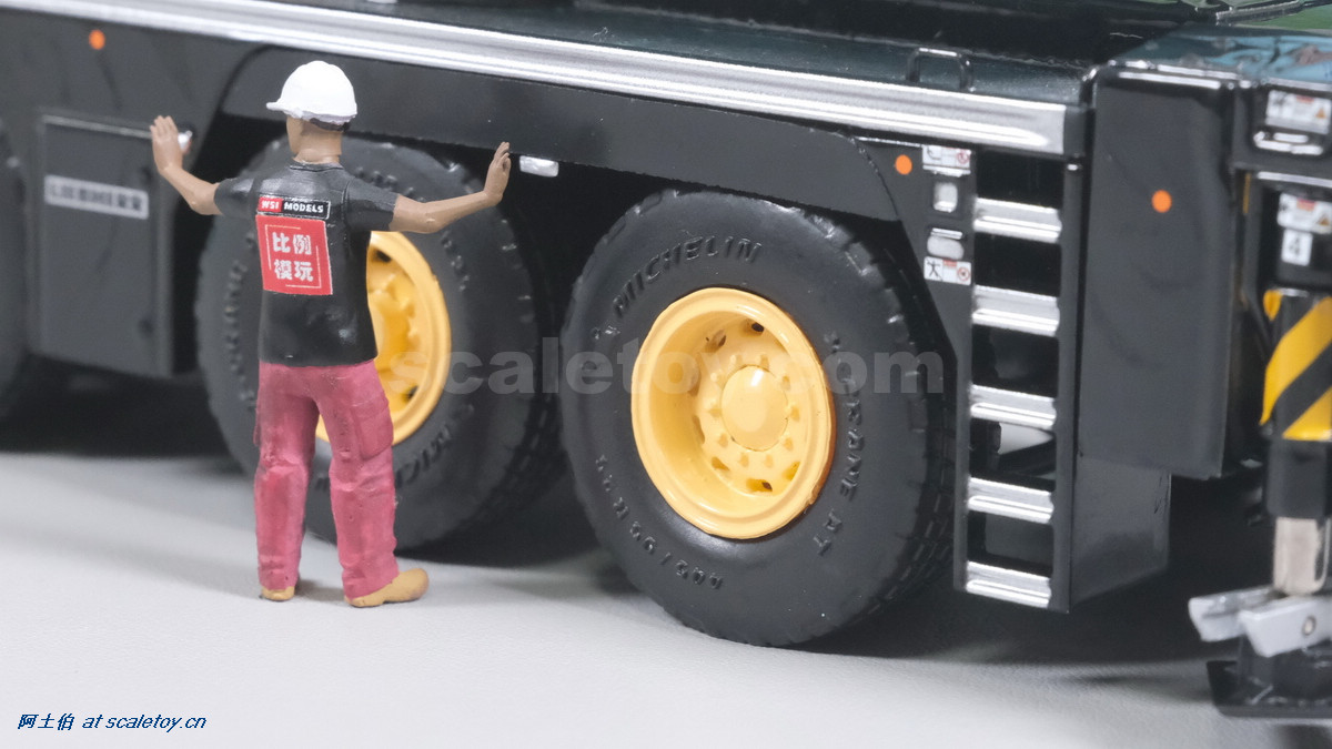 这款利勃海尔LTM1400 NX起重机也是公司官网可见的最大吨位起重机。模型在WSI标记为LTM1350-6.1,车体上则标示为LTM1400 NX。“NX”车型通常迎合日本市场独特的法规和需求。