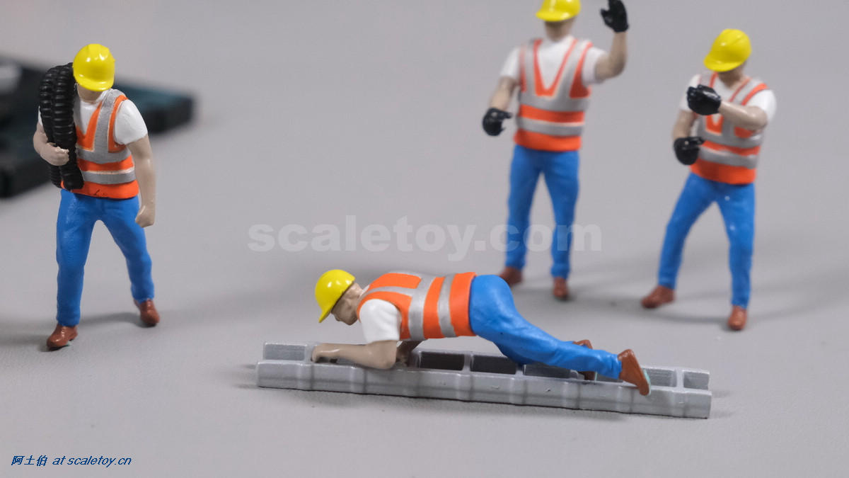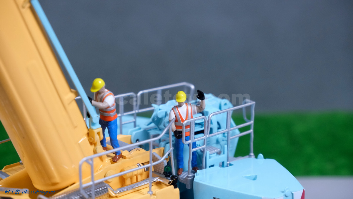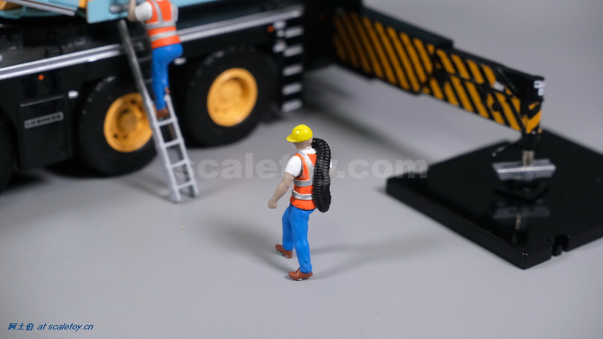 这位是爬梯子的动作,设计的很不错。梯子略厚了一点;像很多起重机上面那种可以翻下来的梯子好像薄一点
