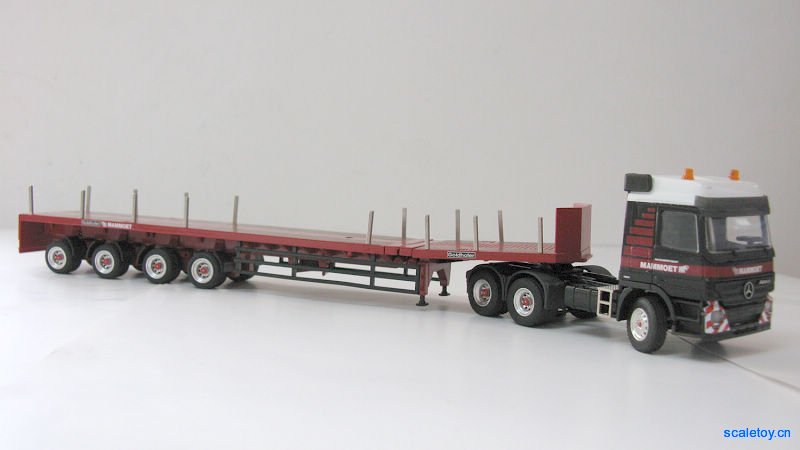 在前面笔者和版主关于mammoet的5款拖车的测评中,只有两款拖板可以延伸,且长度极为有限。前文说过,这款conrad出品的4轴拖车有个最大的特点,那就是拖板可以超长延伸,见下图。