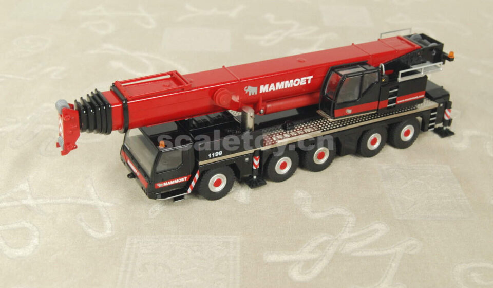 工作车队,更多的延长臂,以及配重,吊钩,都由一台MAMMOET的[WSI] 1/50 MAN TGX 三轴 /NOOTEBOOM 六轴平板 运输。