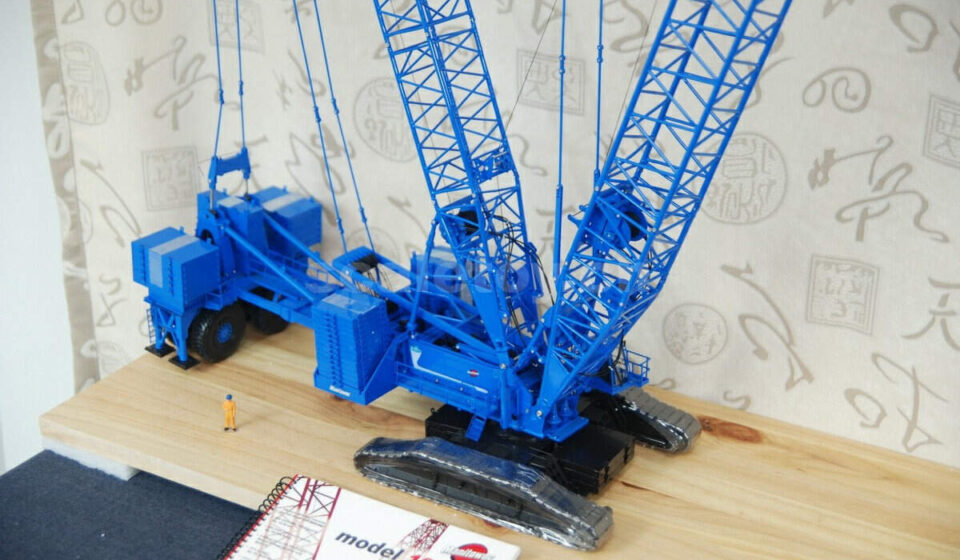 MANITOWOC 18000最早出现在2005年ConExpo展会上,也是TWH的第一个桁架臂履带式起重机模型。模型几乎有6英尺高(约1.83米),如果加上选配的延伸臂,则能达到11英尺(约3.35米)高。桁架由单独焊接的黄铜棒构成,并模仿了真机上的技术。底部细节一样的出众。虽然当时的目的是带来50个订单;实际上展会的那个星期即获得了250台的订单量。