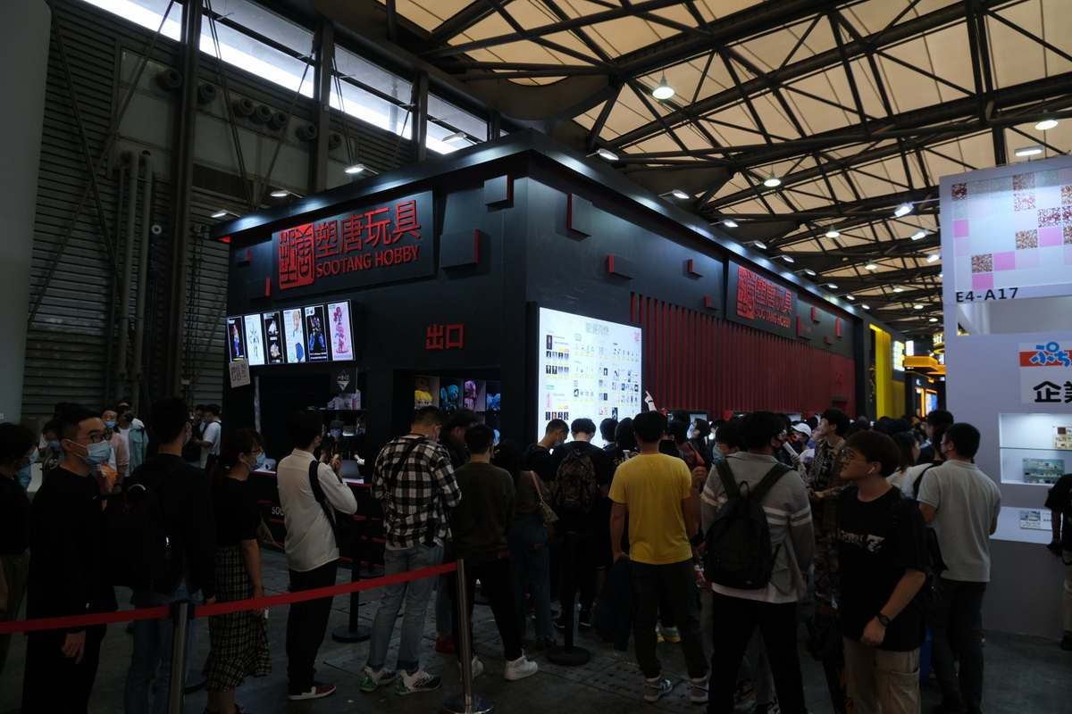 接下来是塑唐的一个大区域了,包括一些子展位。塑唐售卖区生意非常火爆,要排很长队伍,没有时间