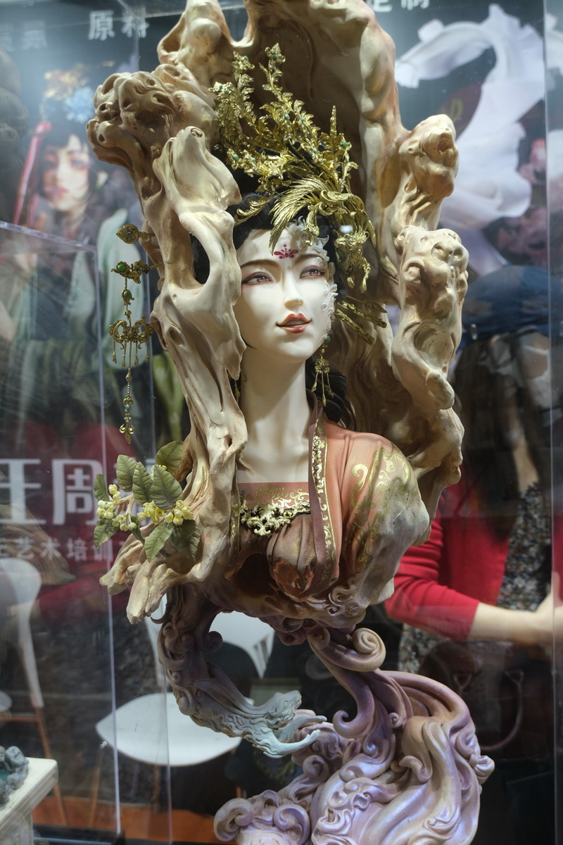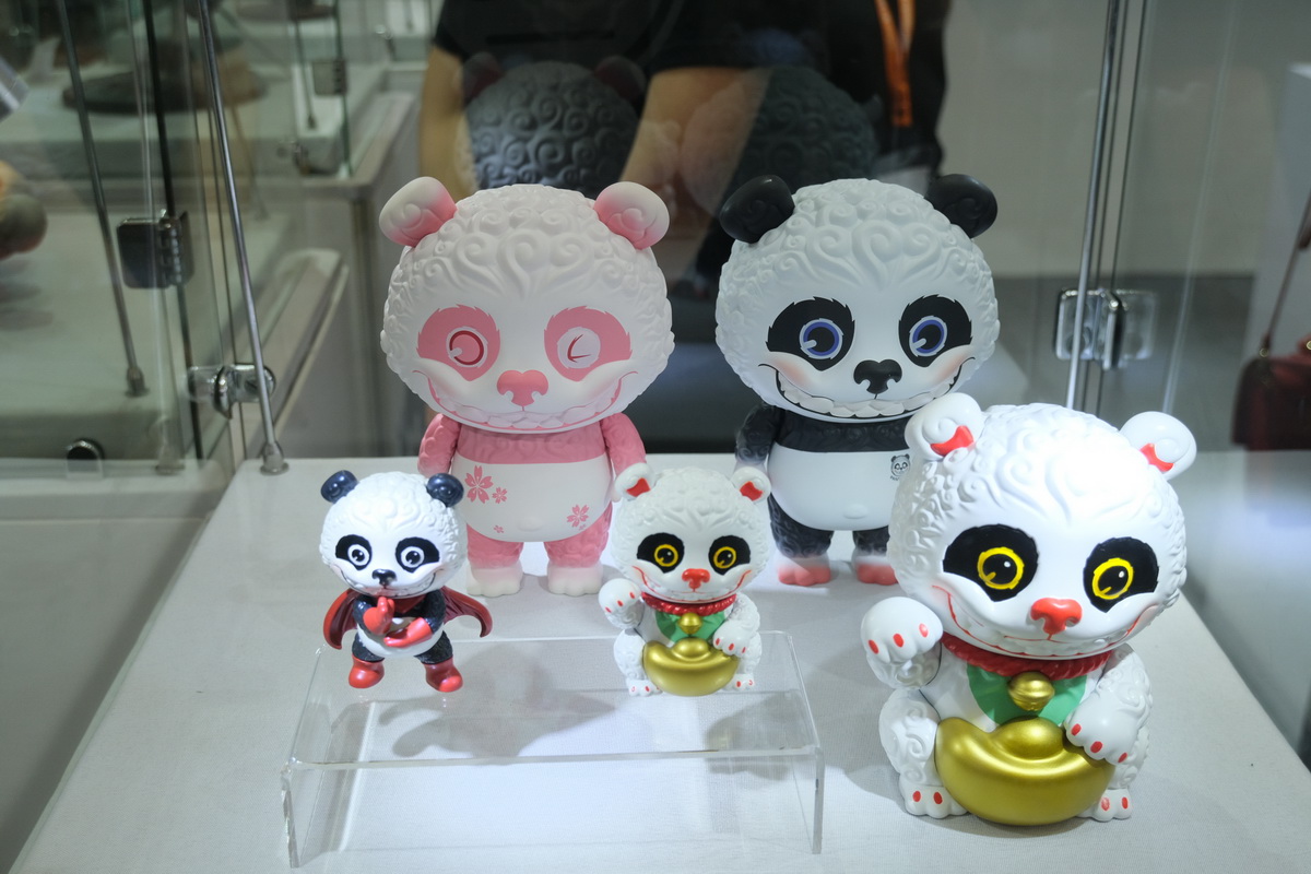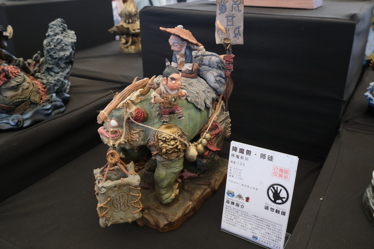 仙豆工作室,许多传统形象,把玩偶和巨大的设计官图背景放在一起,很有特色